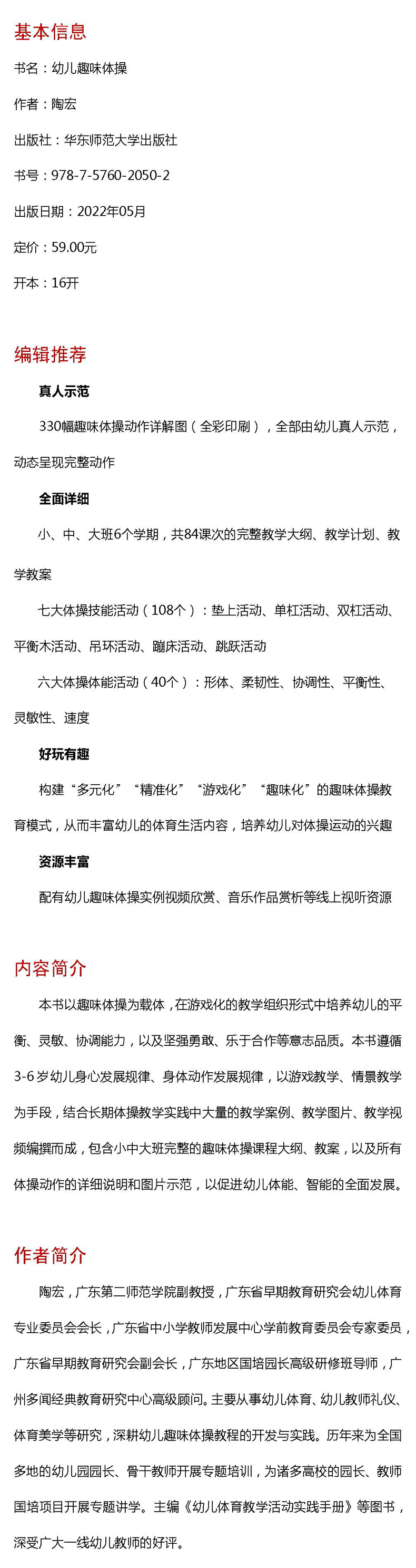 幼儿趣味体操 幼师培训系列 陶宏 季艾俐 大中小班 300余副幼儿动作真人示范彩图