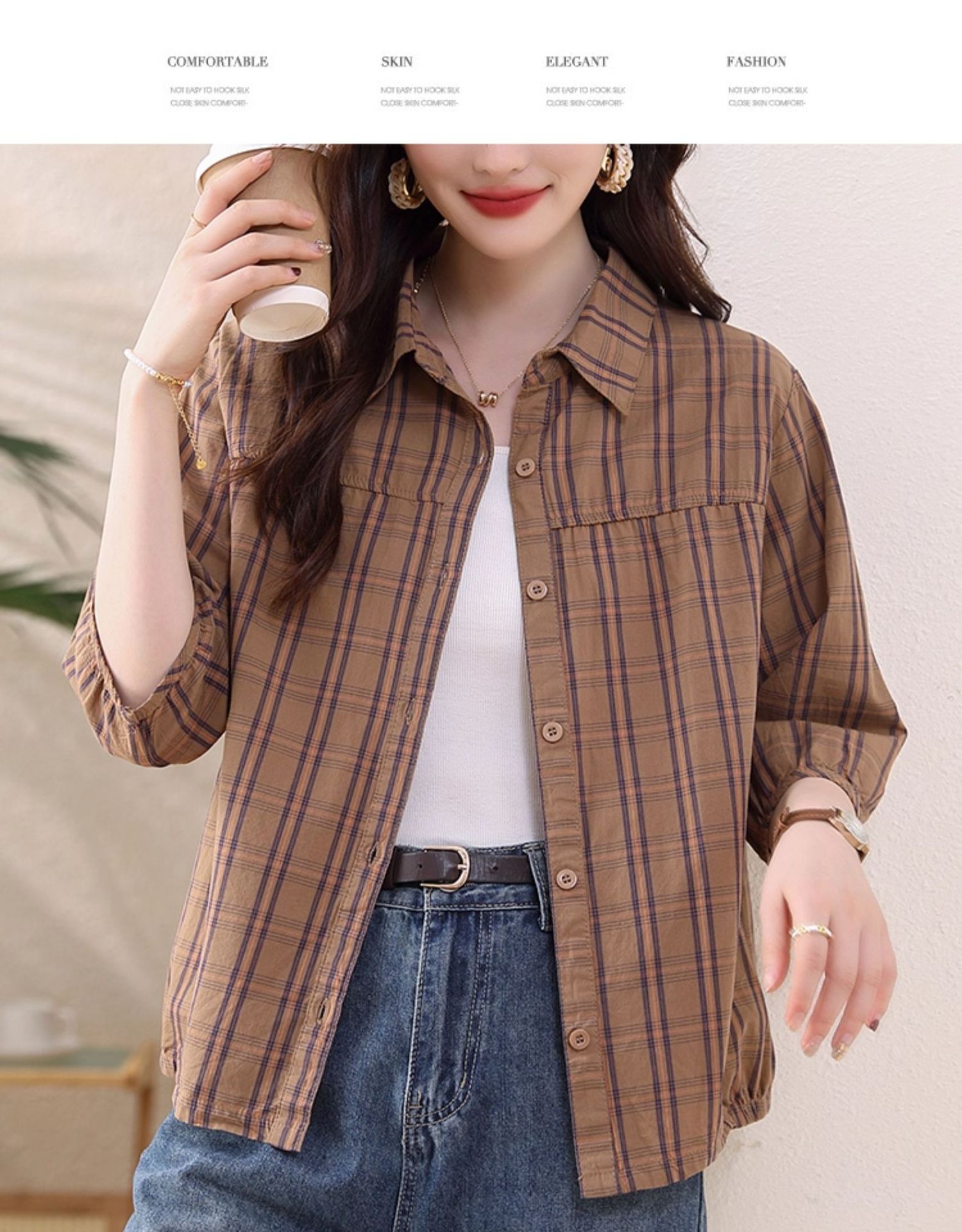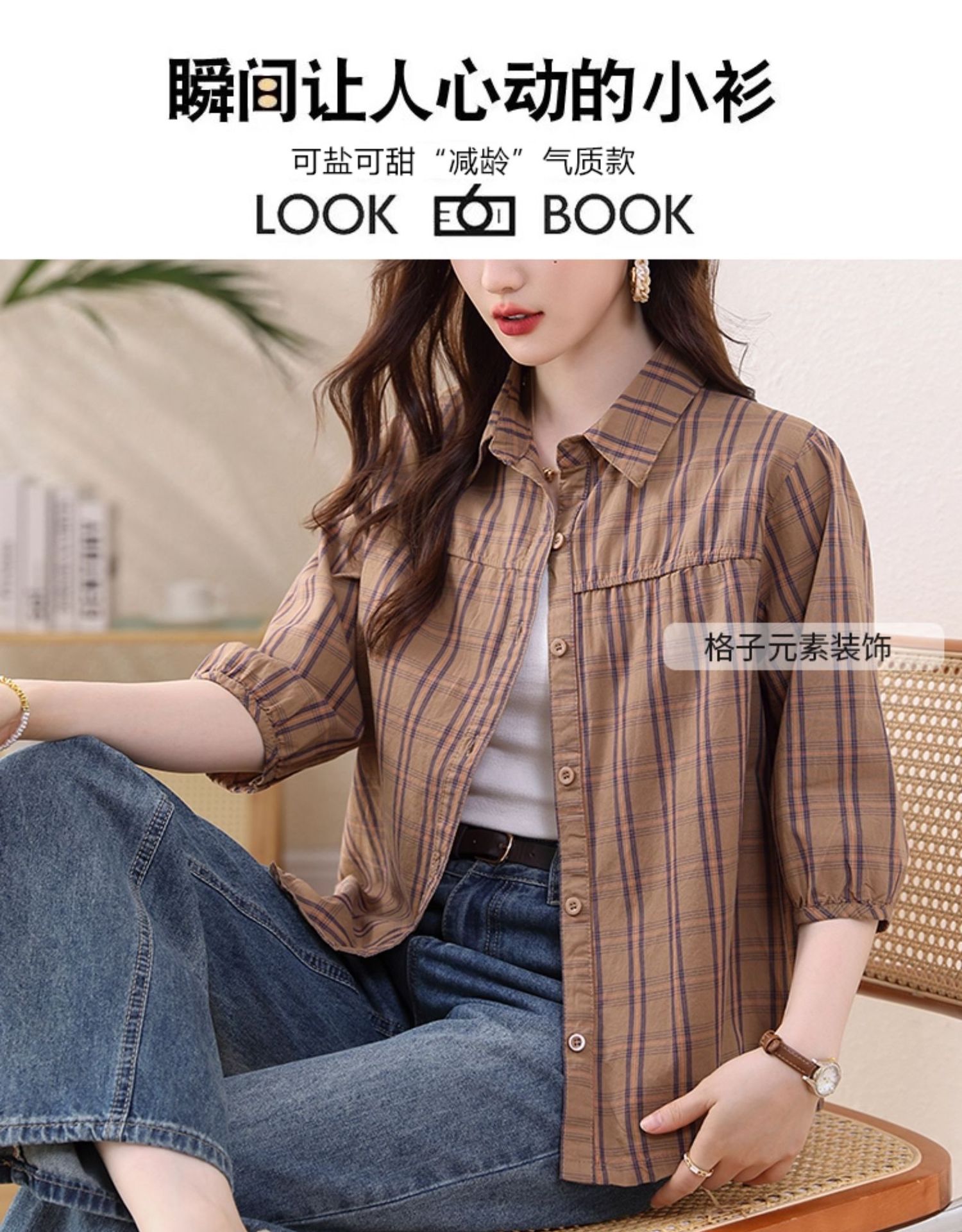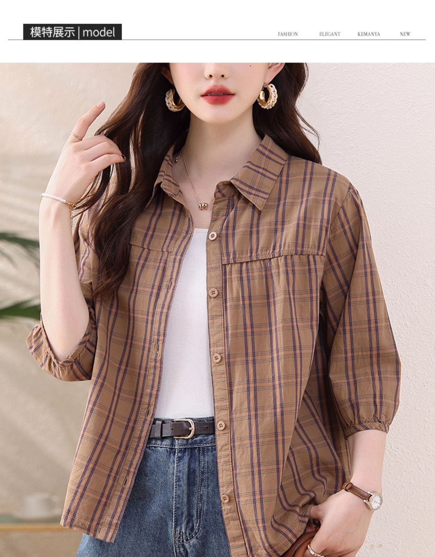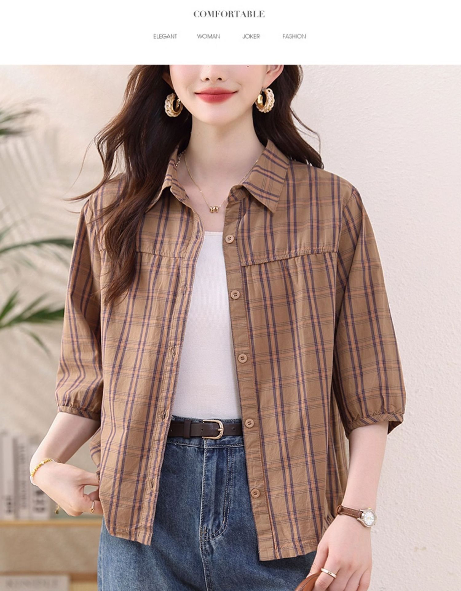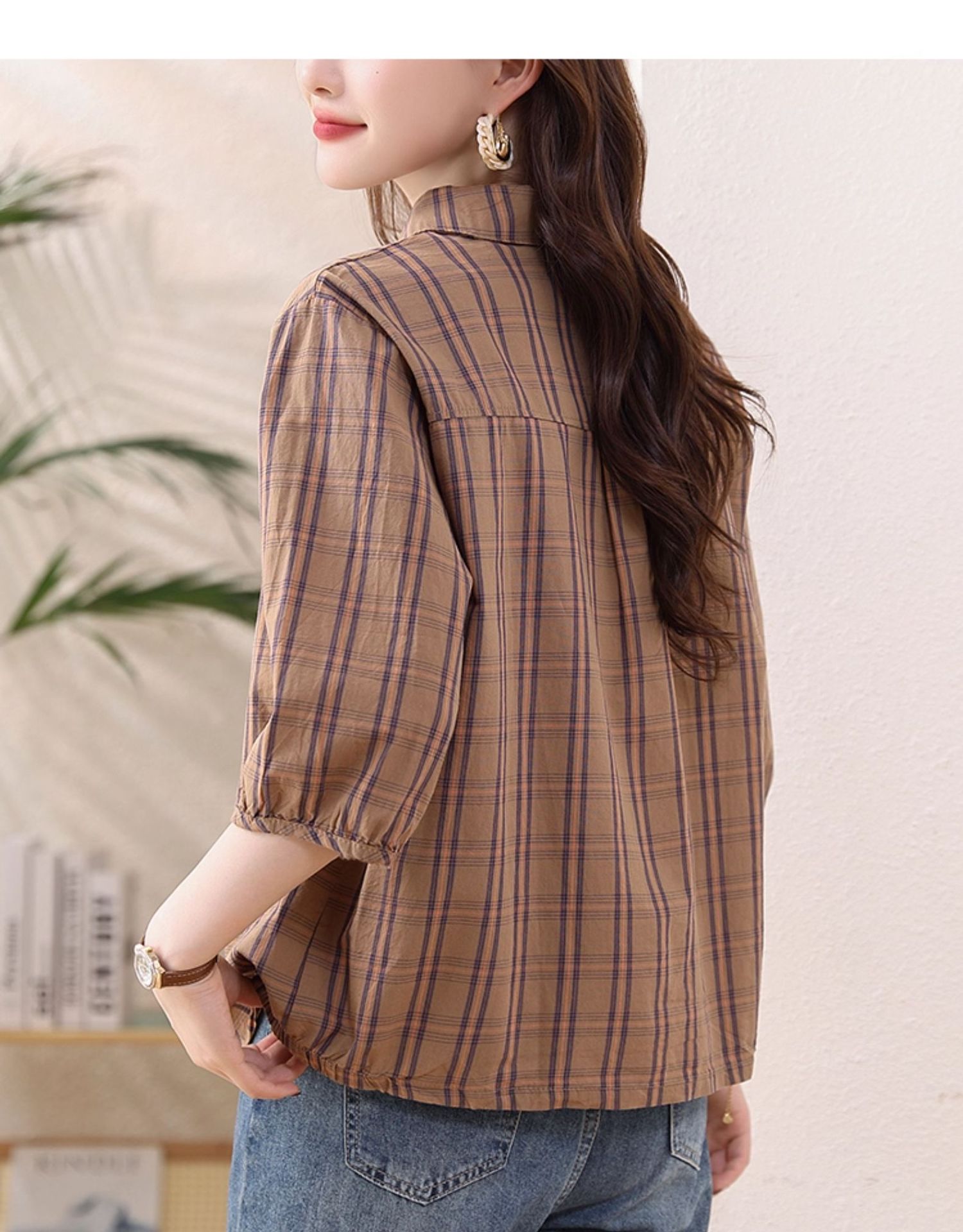 夏装新款女士时尚衬衫中袖上衣女秋夏妈妈装宽松遮肚显瘦棉衬衣潮