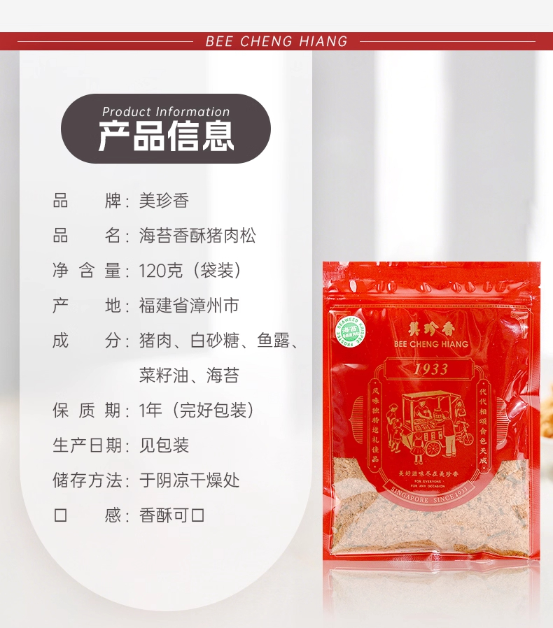 美珍香海苔香酥猪肉松120g袋装寿司面包肉松小贝烘培早餐营养美味零食
