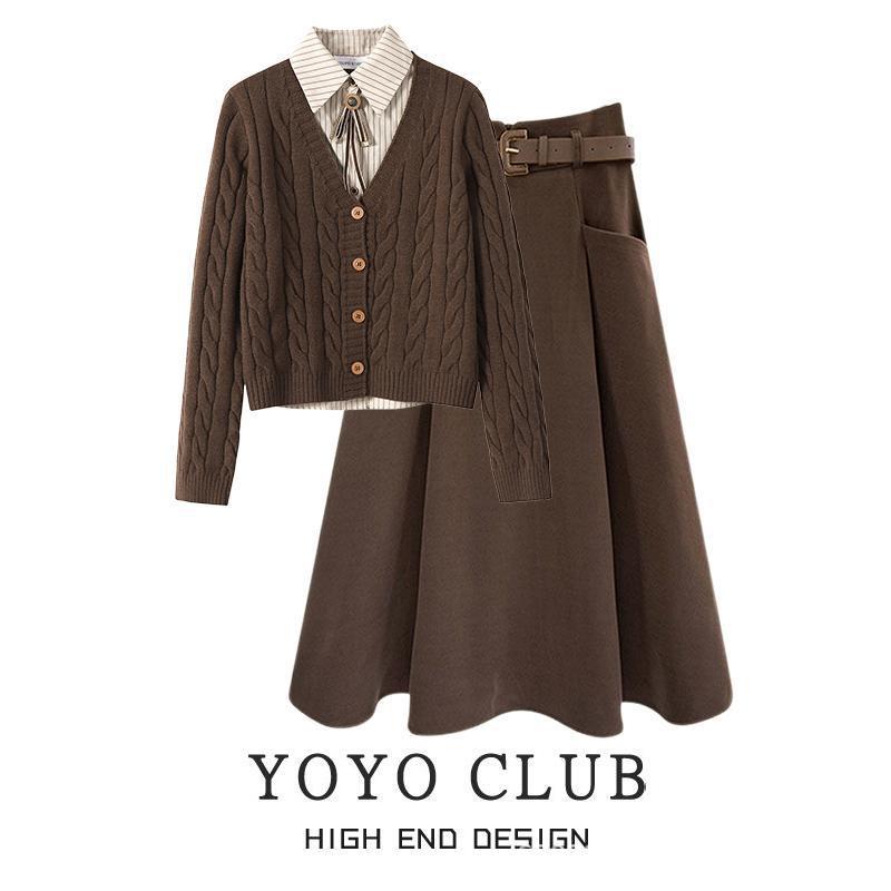 【高级温柔色系❗️浓郁的秋冬氛围】美拉德穿搭一整套装2025新款假两件麻花针织毛衣搭配半身裙两件套。jc