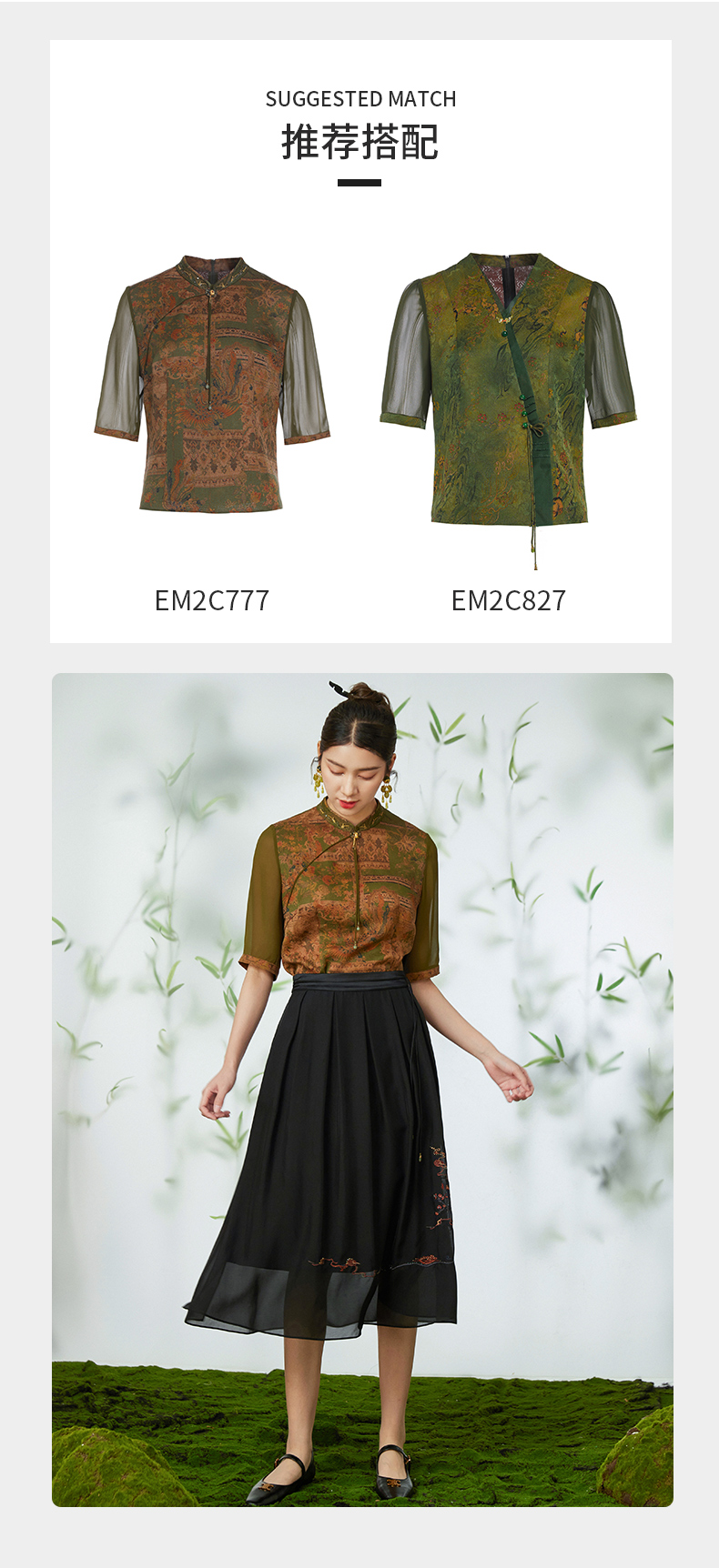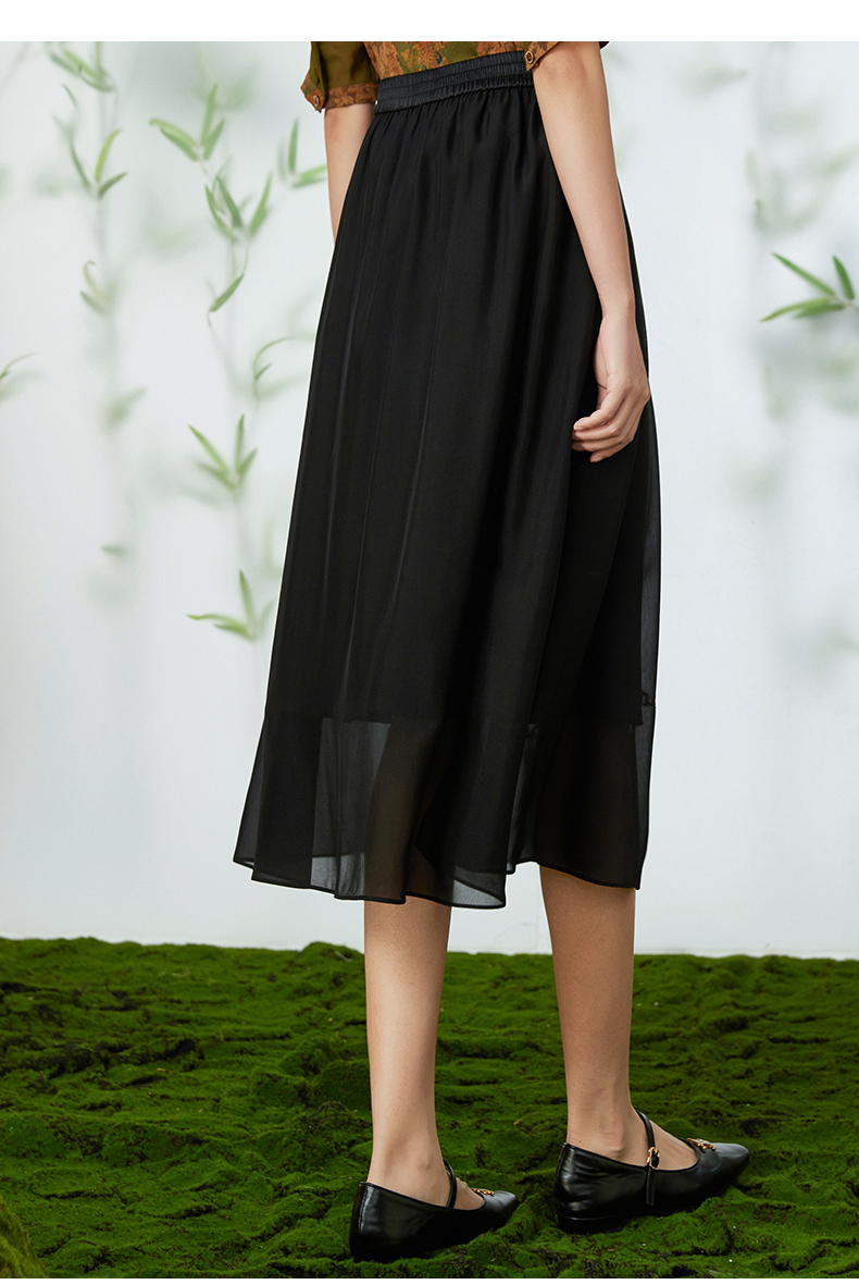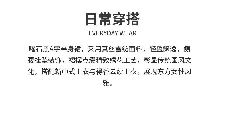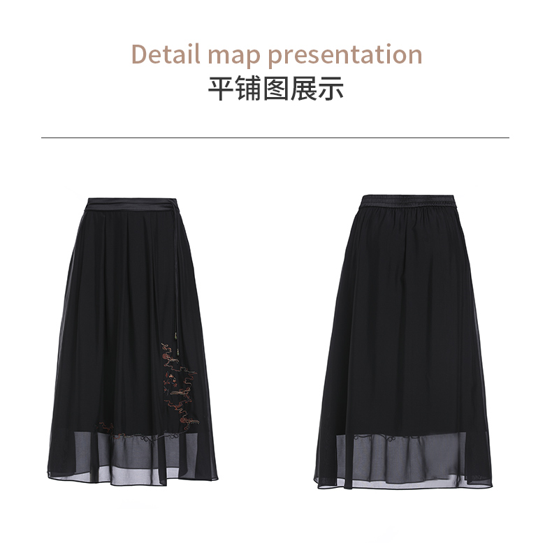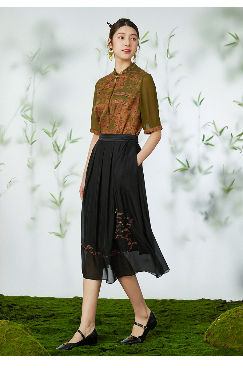 乔万尼100%桑蚕丝半身裙国风刺绣设计真丝半裙EM2D812
