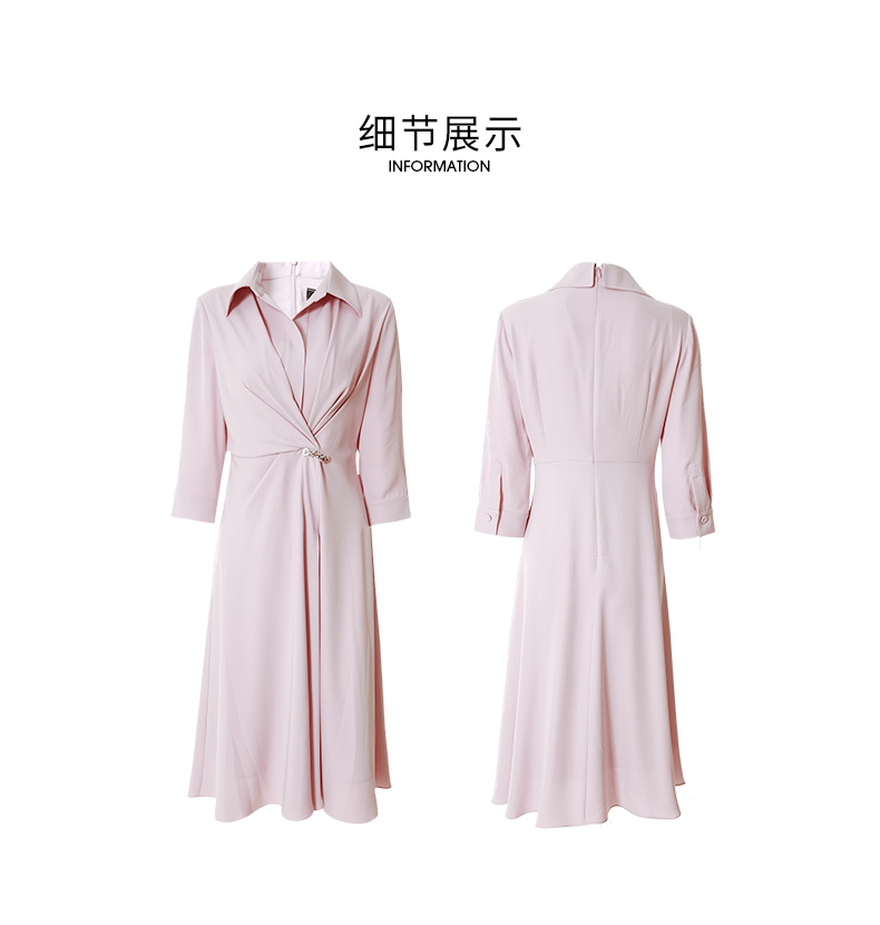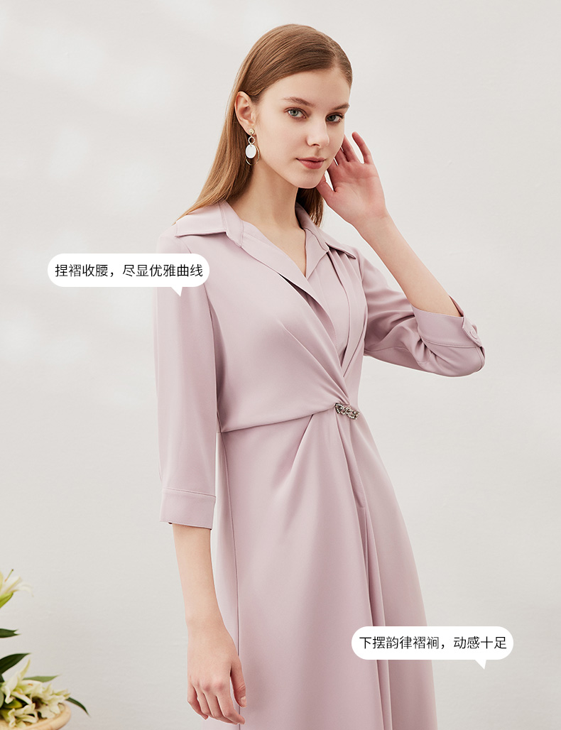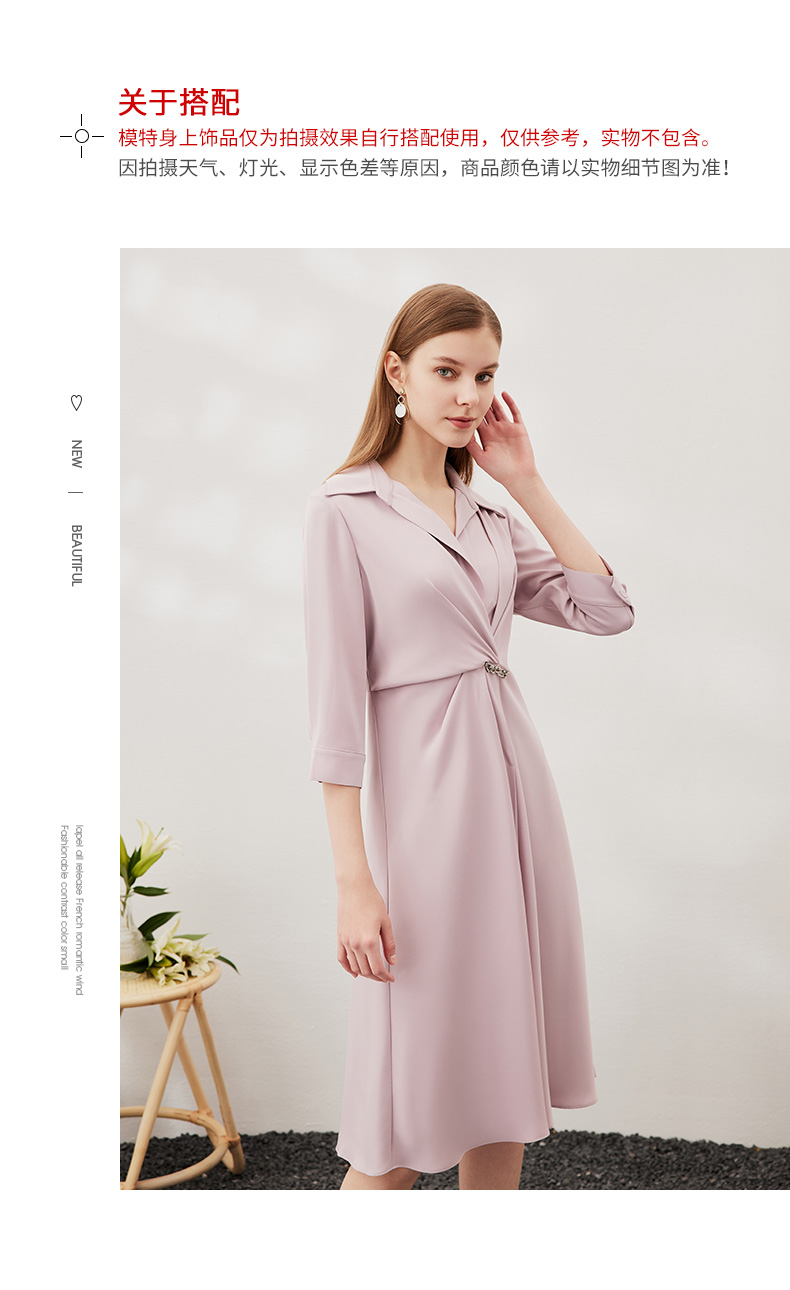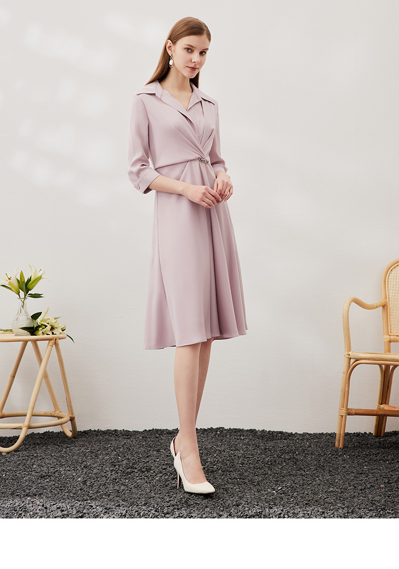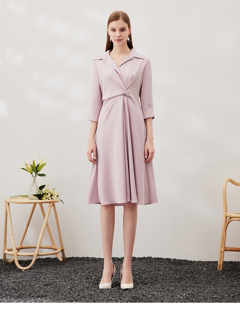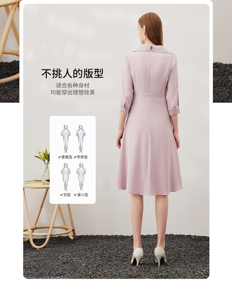 EITIE爱特爱春季新款优雅五分袖V领显瘦收腰过膝连衣裙6907628