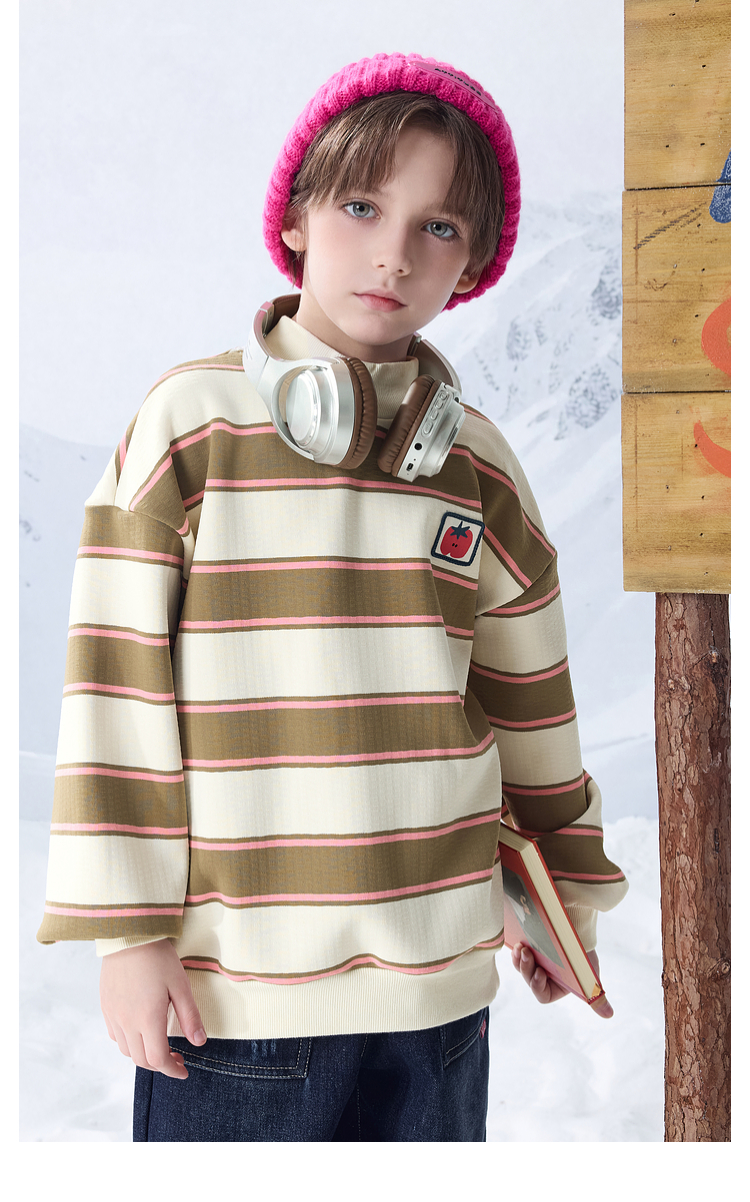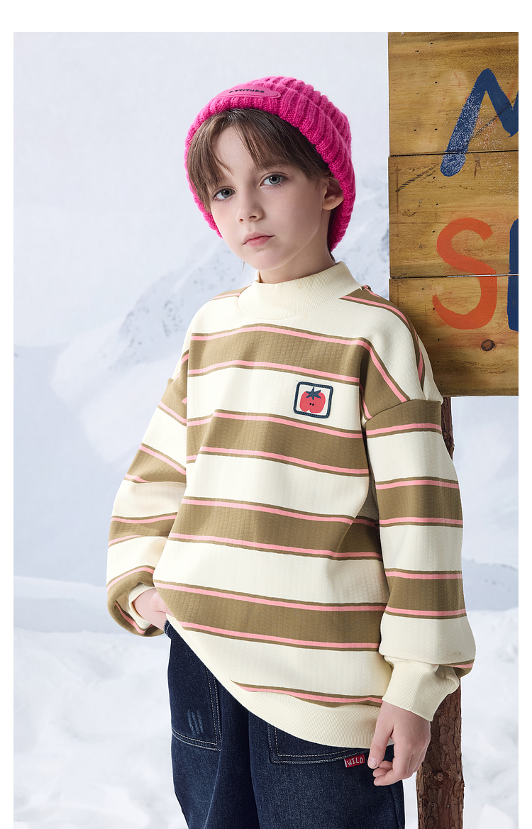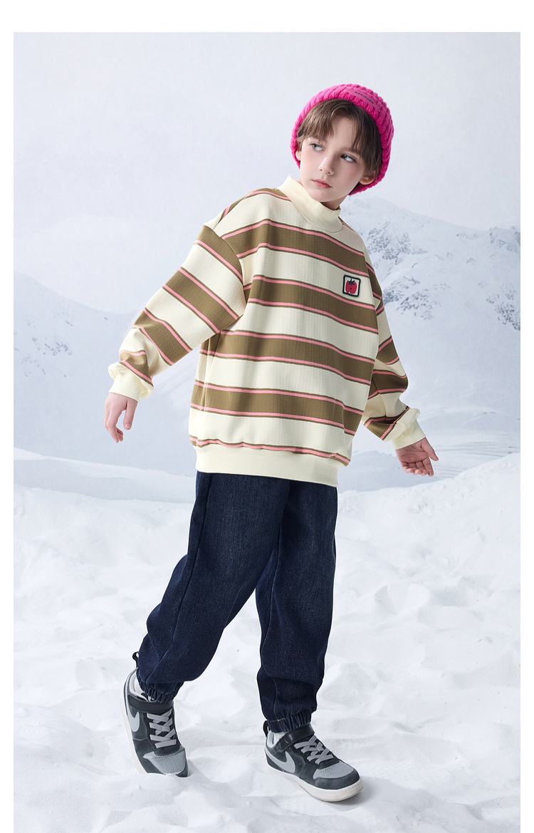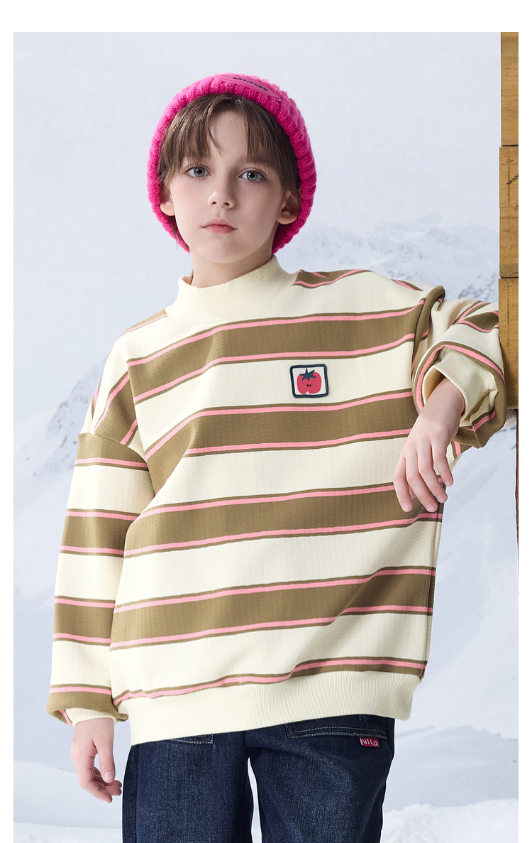 【MQD】童装男童半高领加绒条纹卫衣秋冬新款儿童内搭男大童打