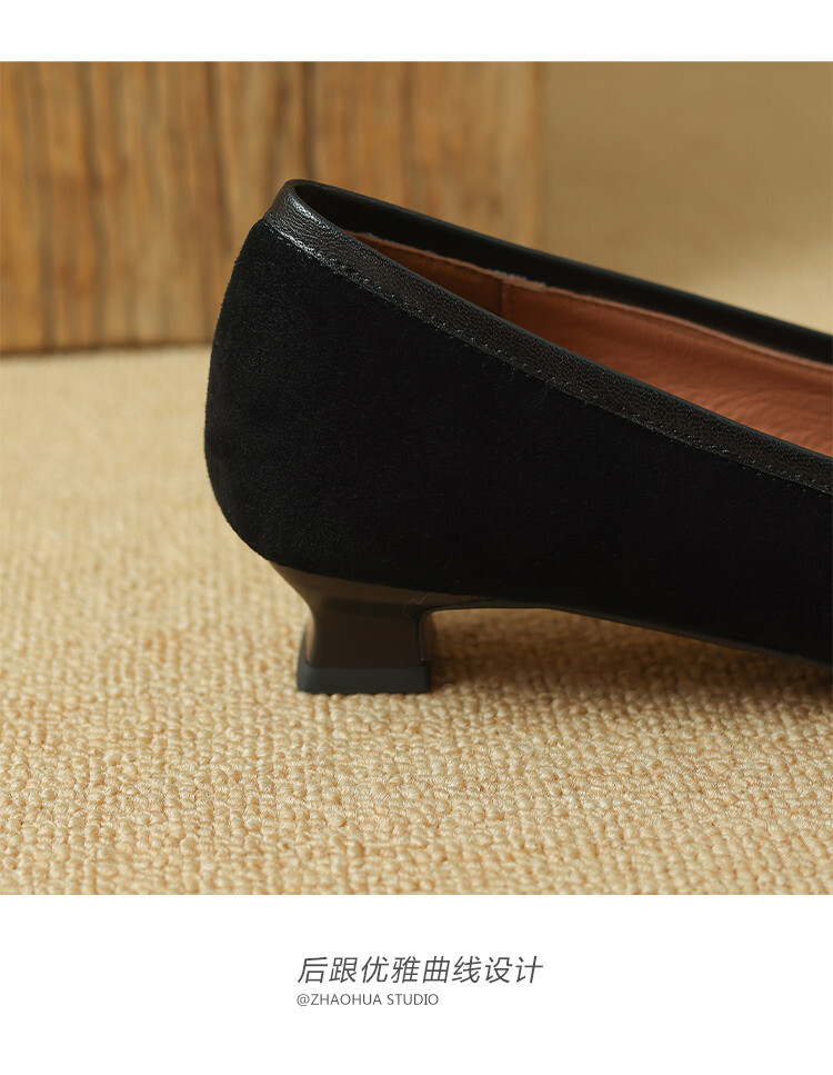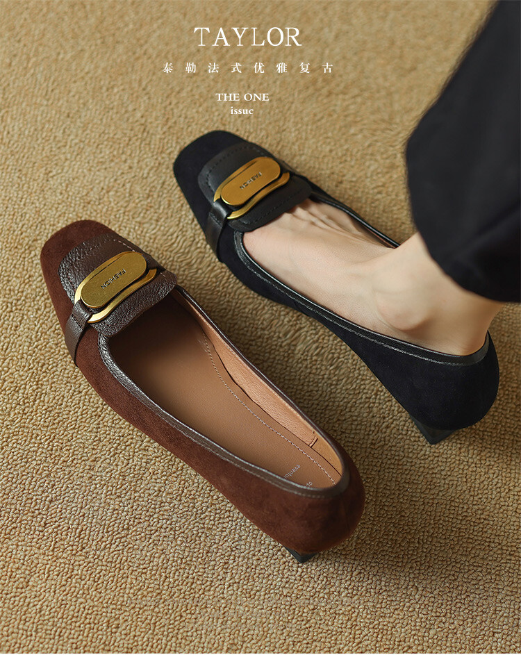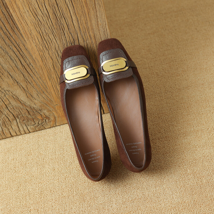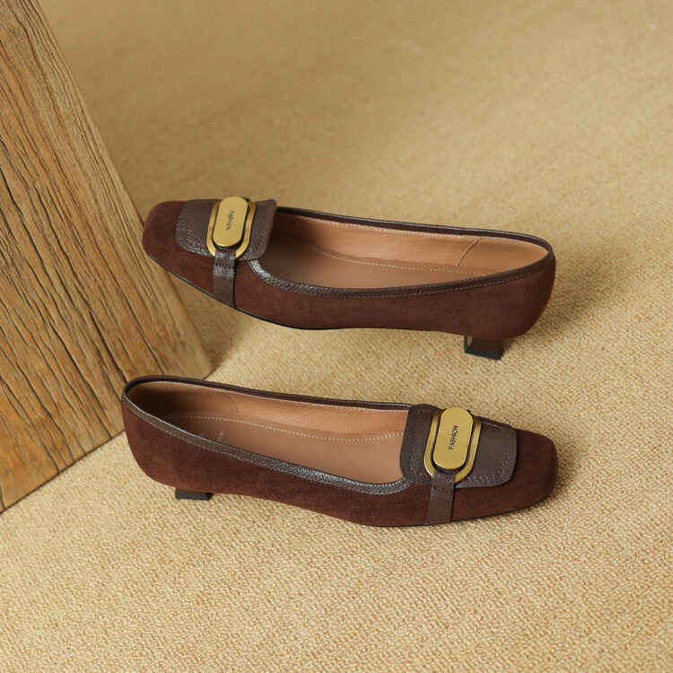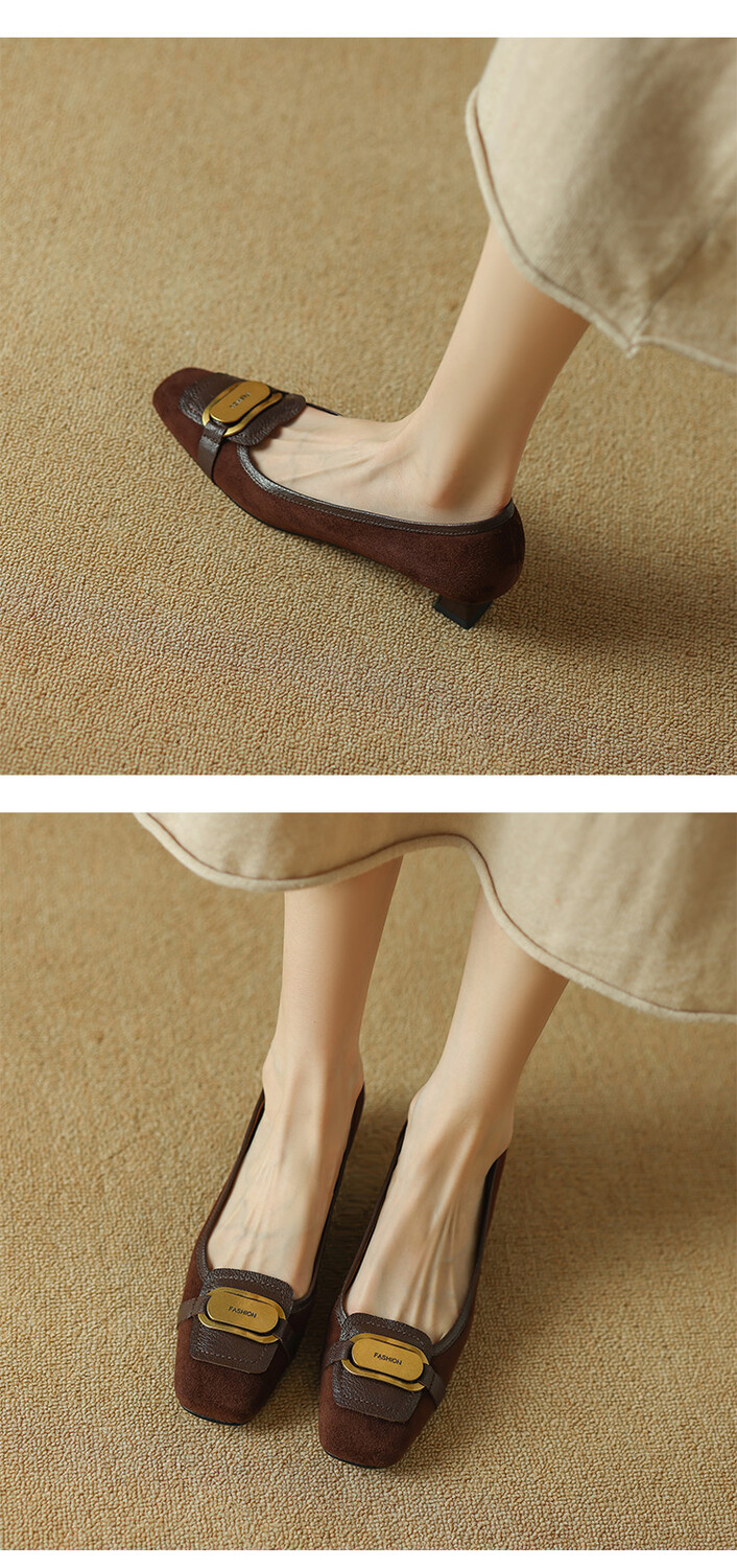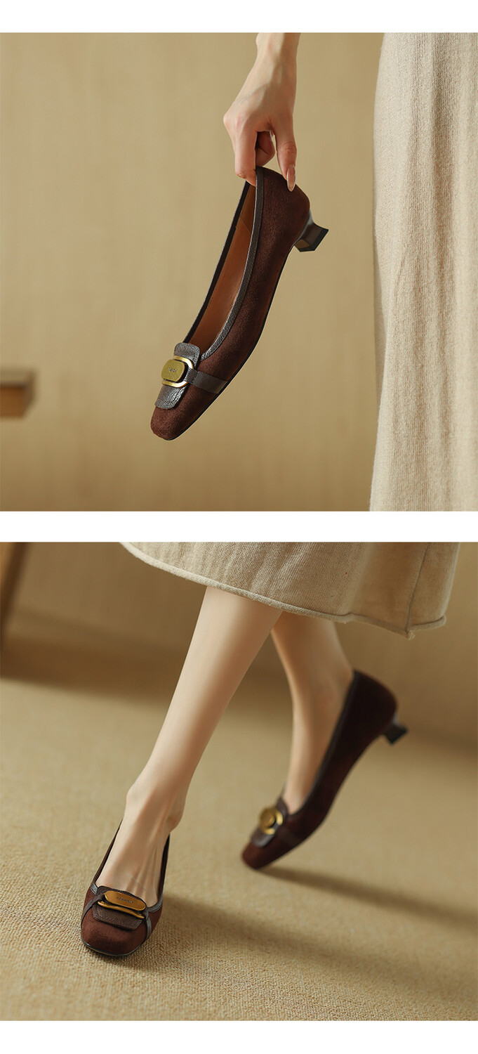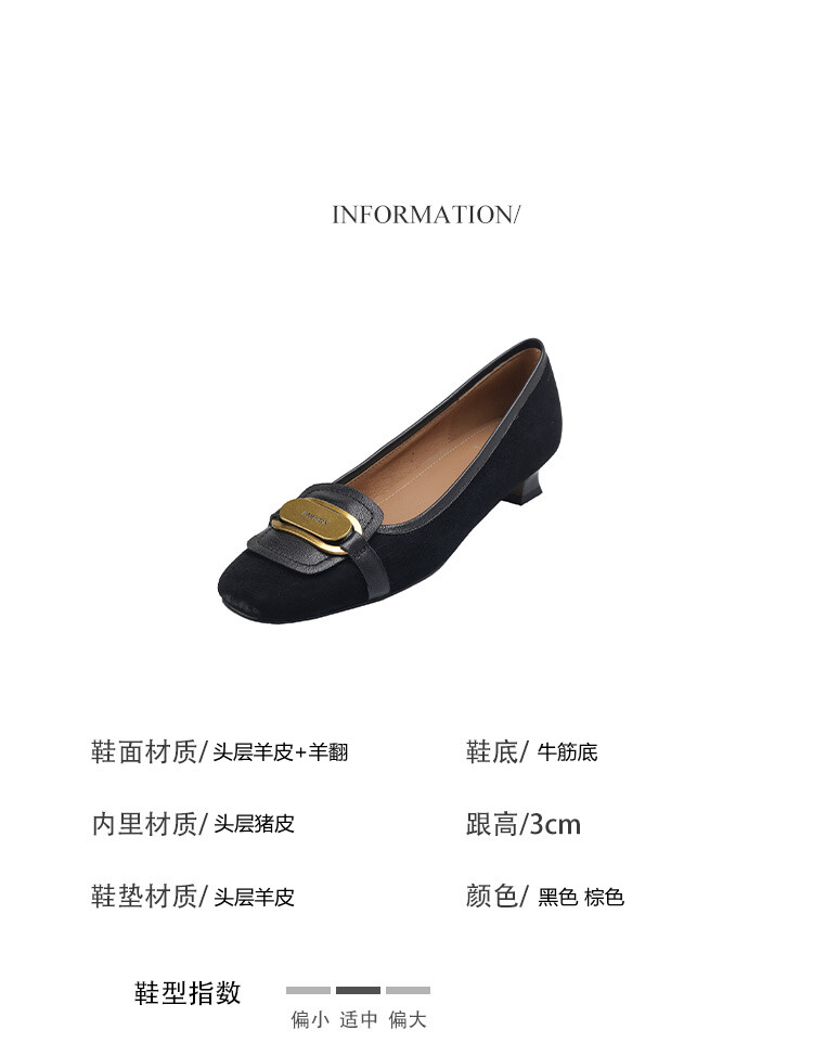 【预售5天】里外全皮!法式复古方头单鞋女粗跟秋季新品棕色通勤羊皮女鞋QQJFG&JZ-1369F