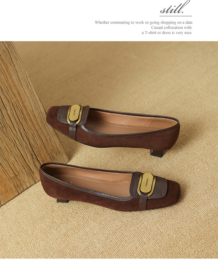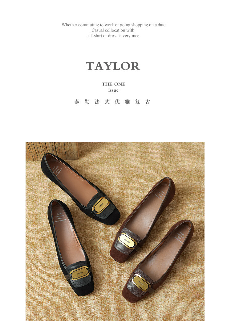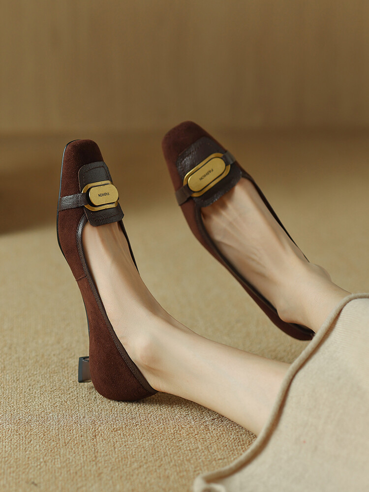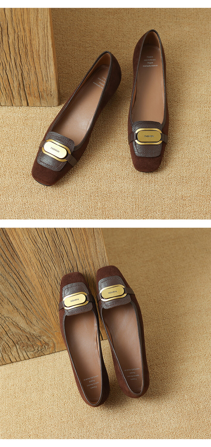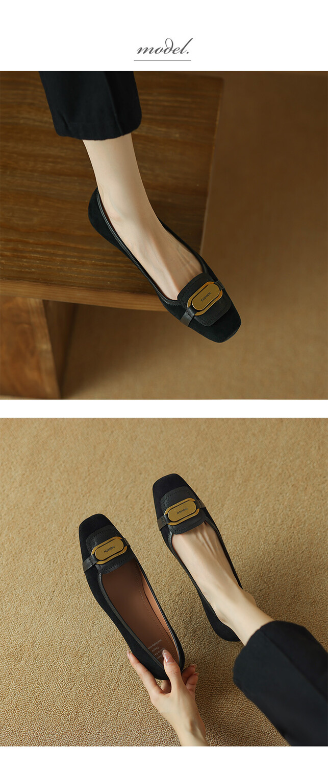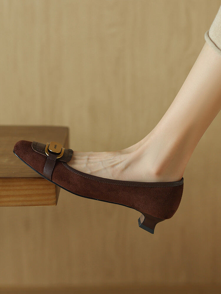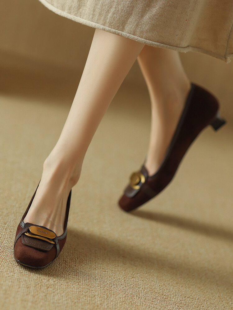 【预售5天】里外全皮!法式复古方头单鞋女粗跟秋季新品棕色通勤羊皮女鞋QQJFG&JZ-1369F