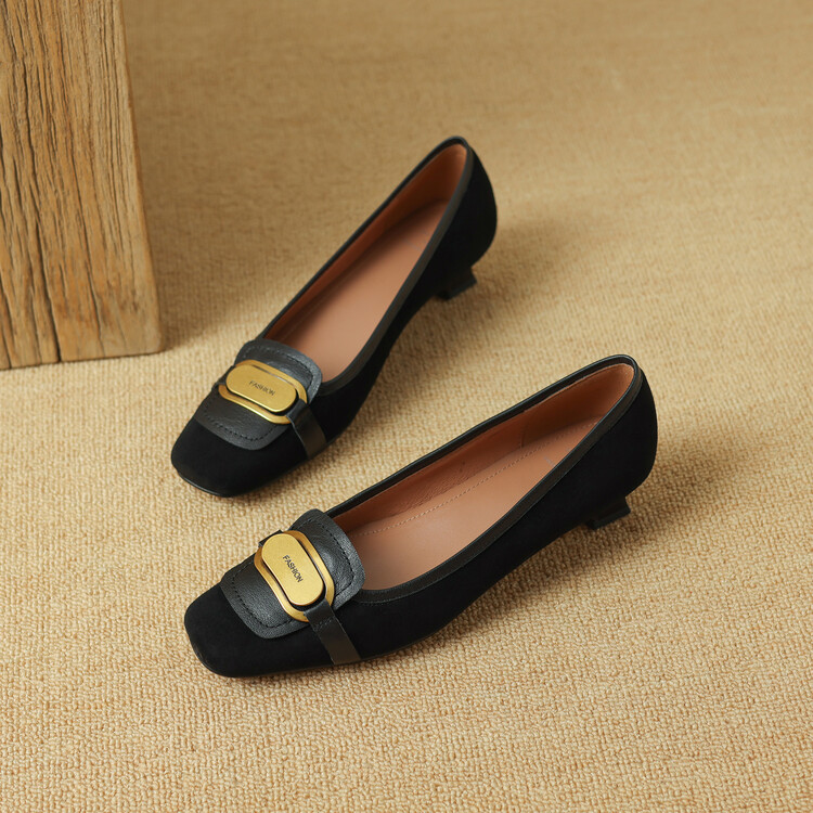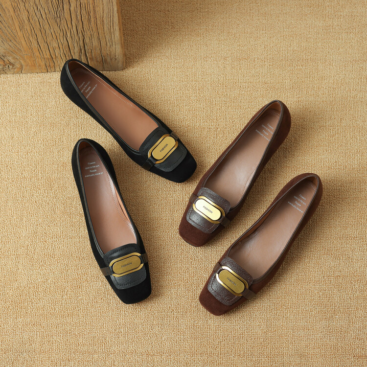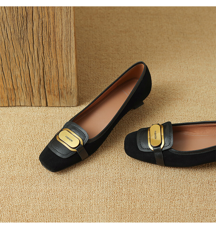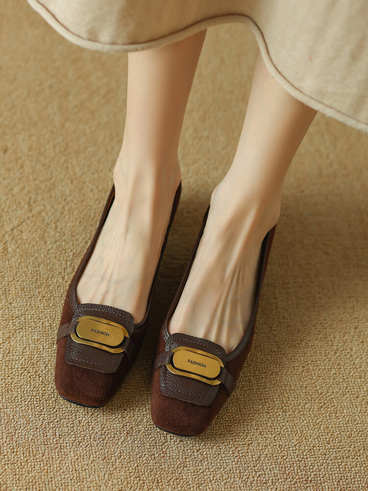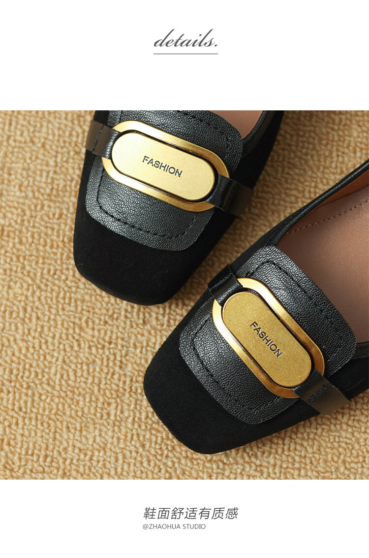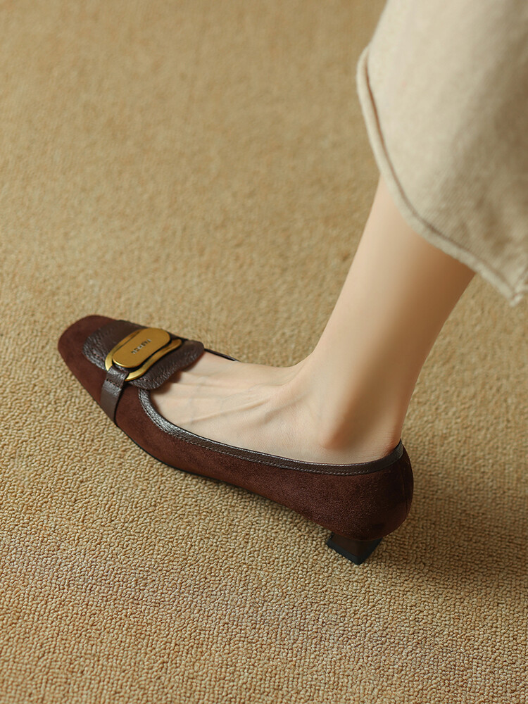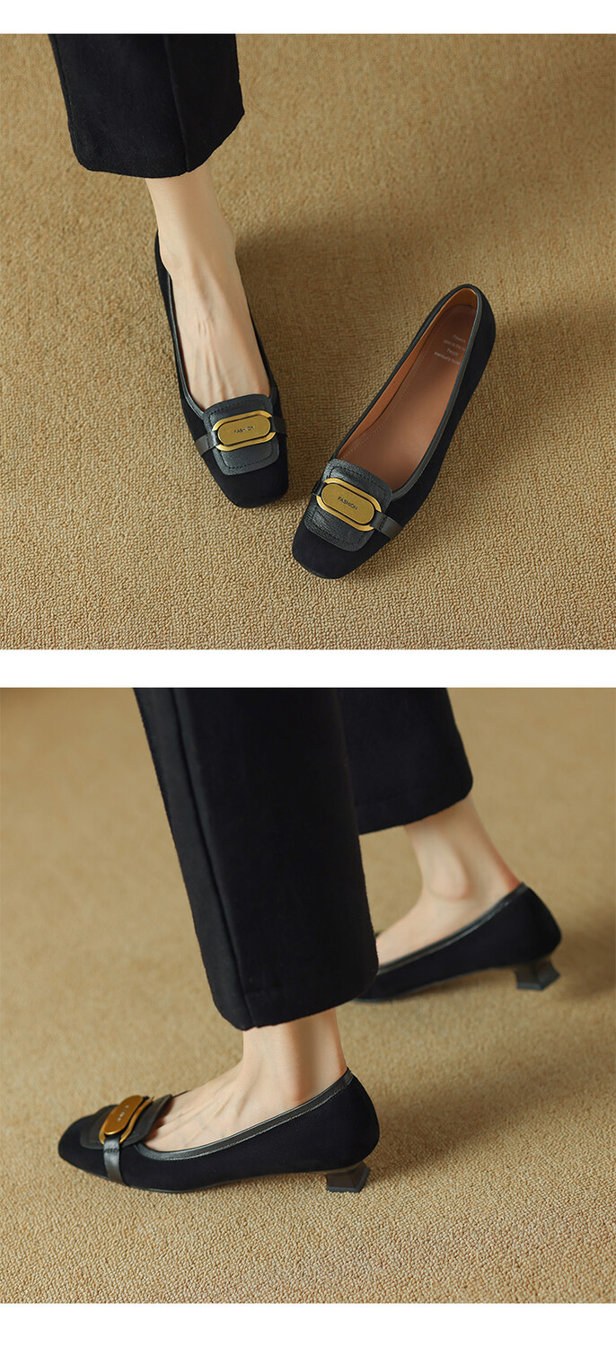 【预售5天】里外全皮!法式复古方头单鞋女粗跟秋季新品棕色通勤羊皮女鞋QQJFG&JZ-1369F