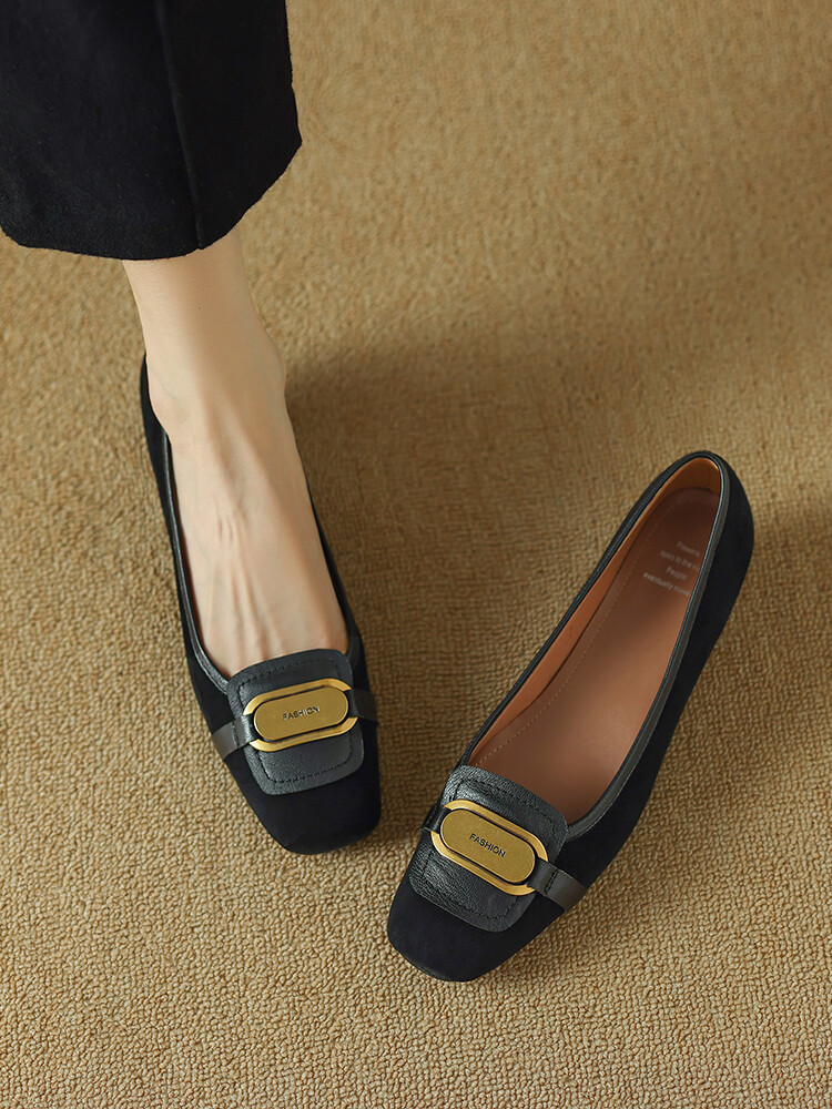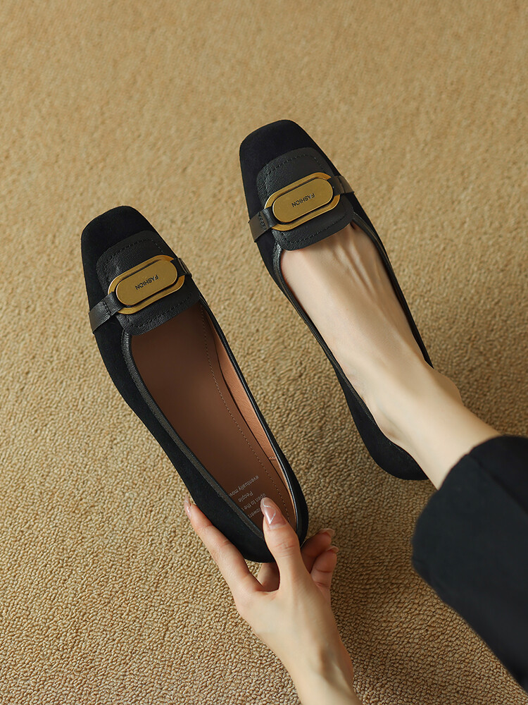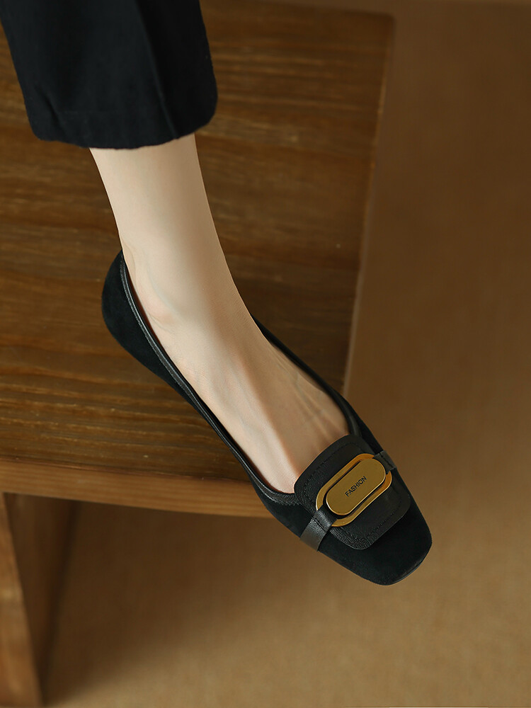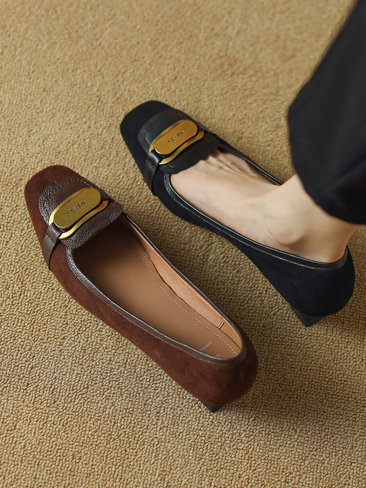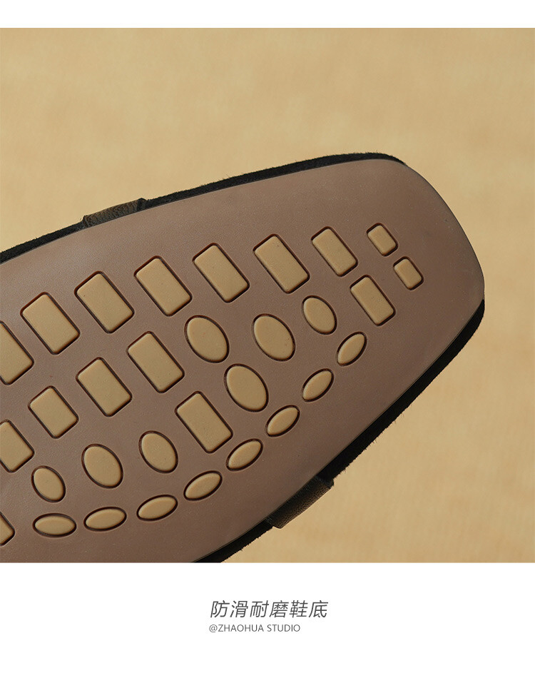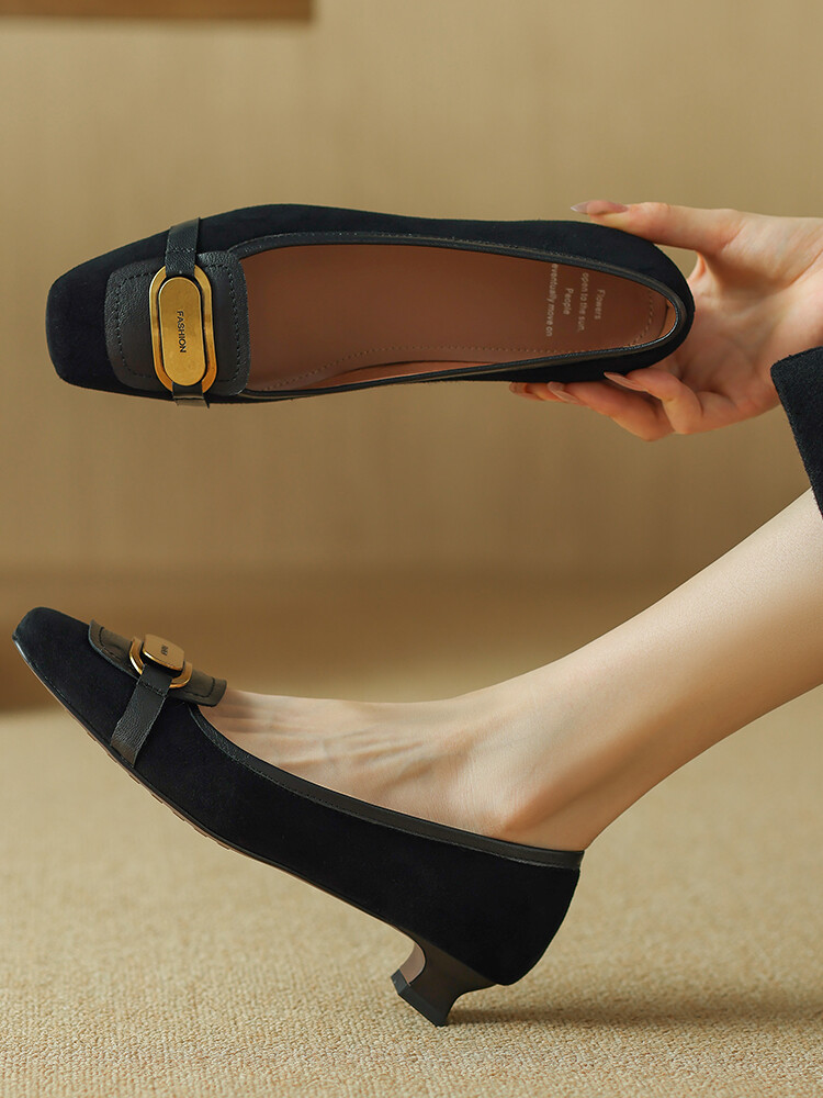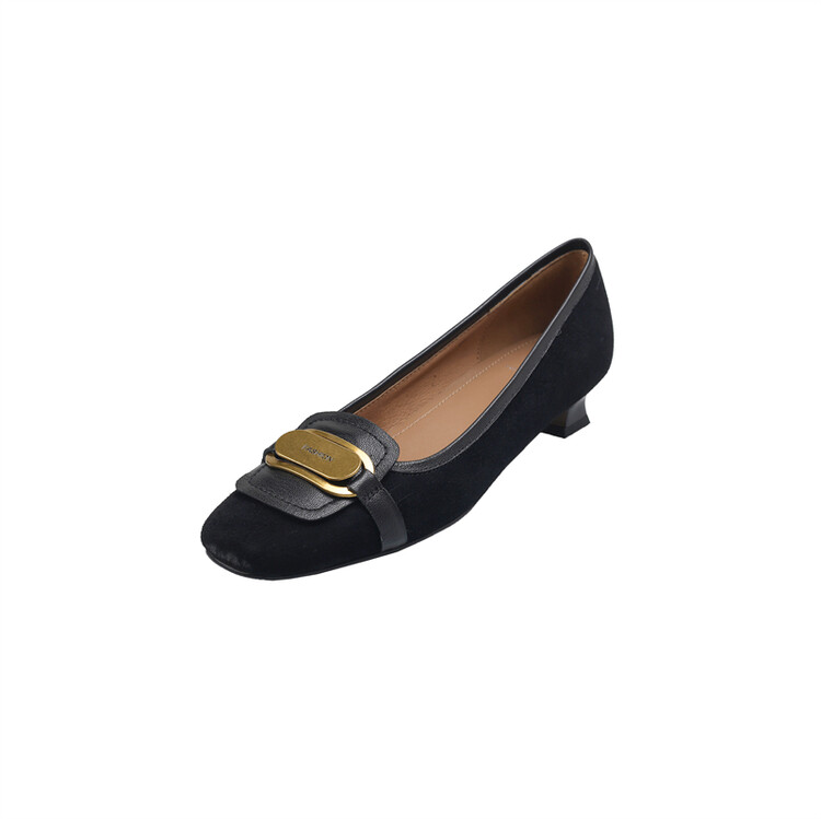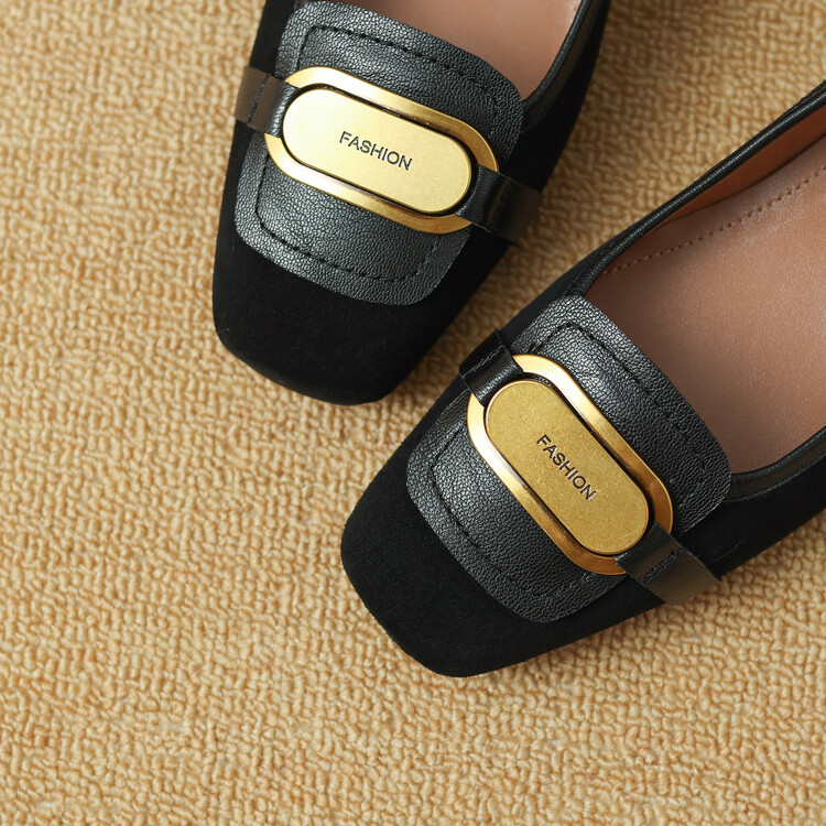 【预售5天】里外全皮!法式复古方头单鞋女粗跟秋季新品棕色通勤羊皮女鞋QQJFG&JZ-1369F