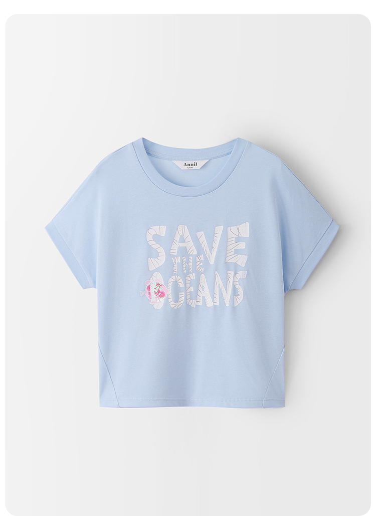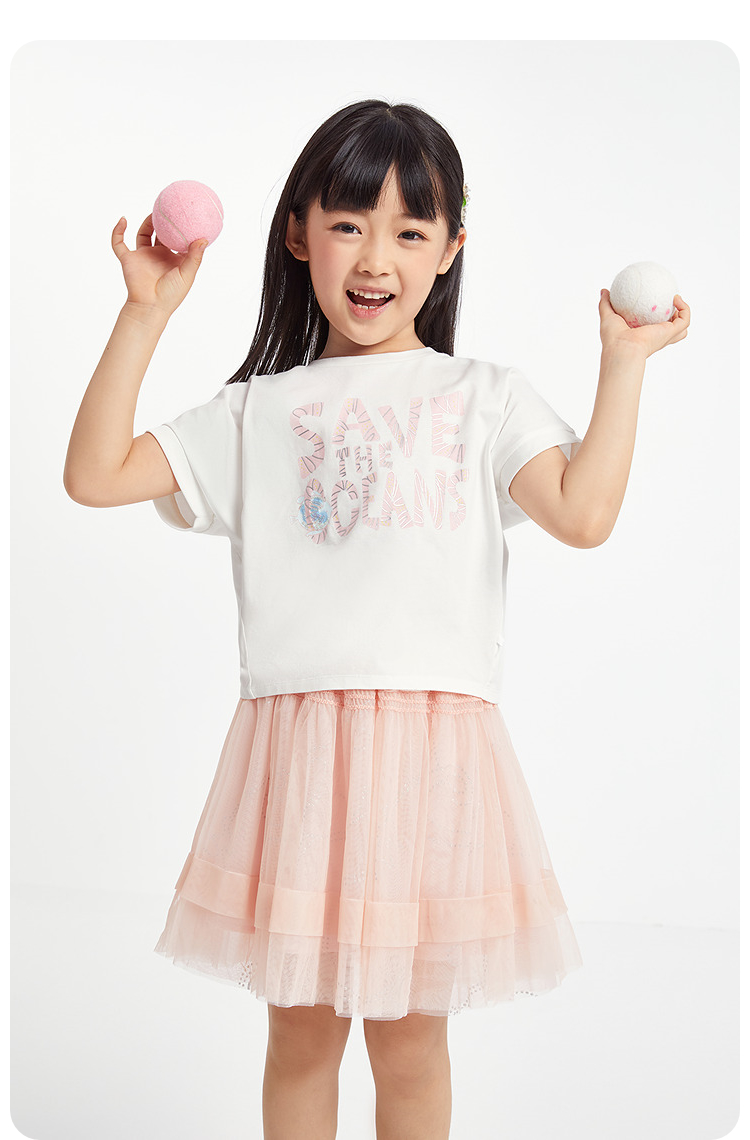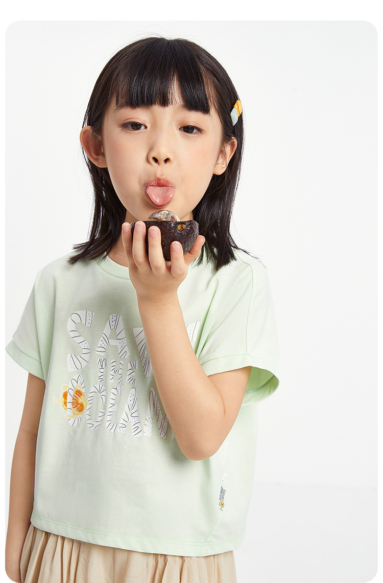 女童圆领SORONA短袖针织衫夏季新款安奈儿童装EG621703