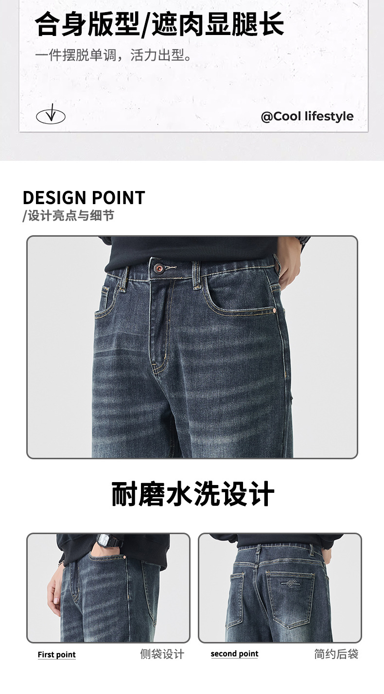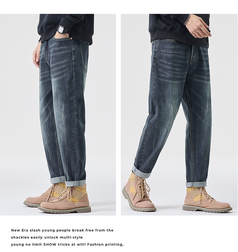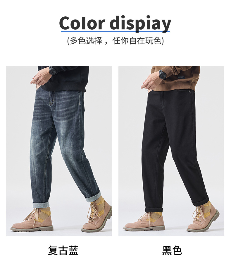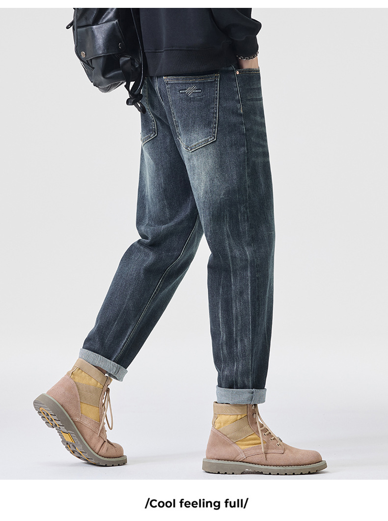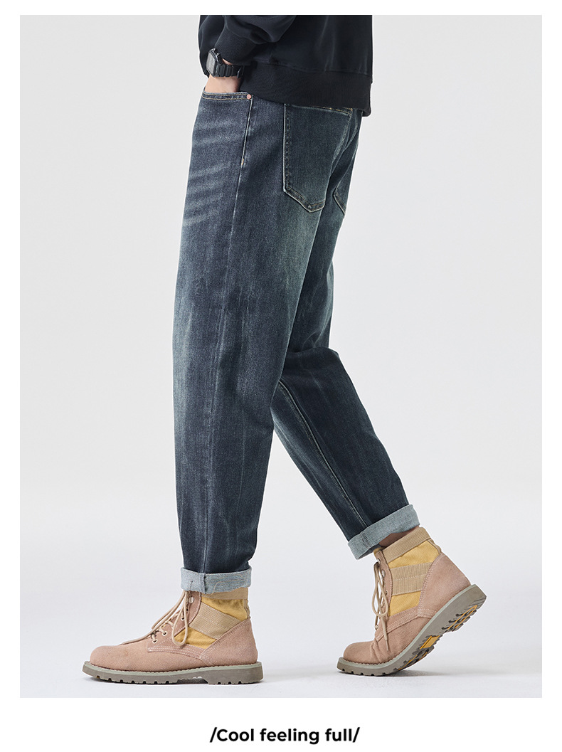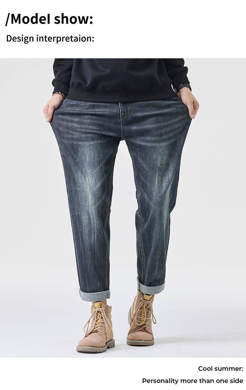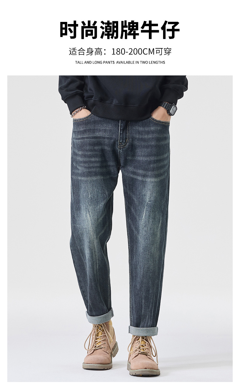 【DQ】大依优型大码男装棉感牛仔裤300斤小脚裤秋冬新款锥形牛仔裤男宽松复古弹力小脚长裤时尚潮流耐磨水洗