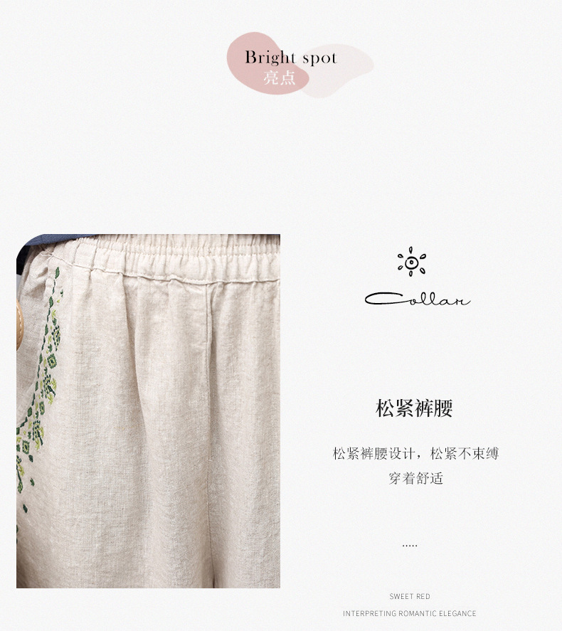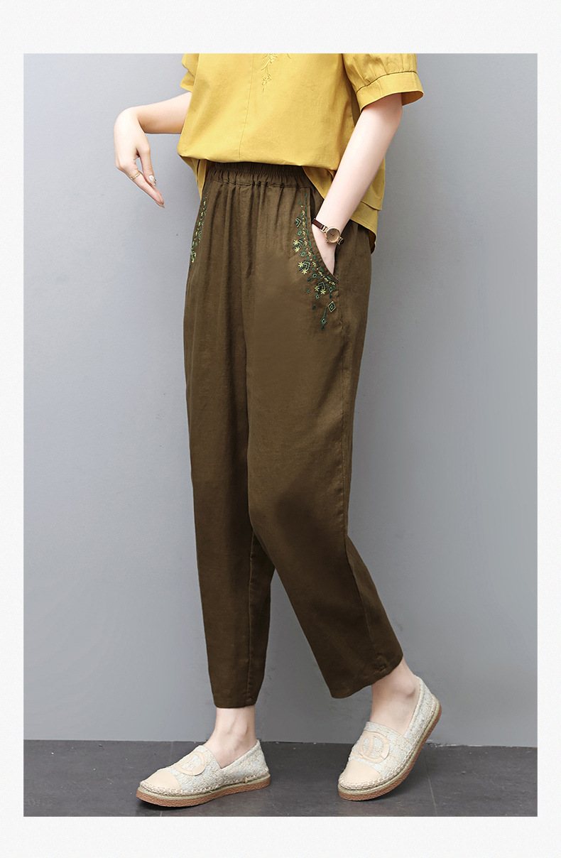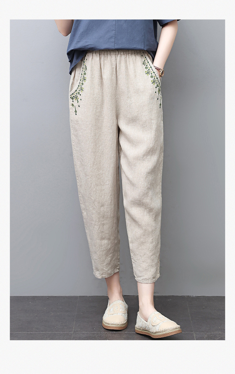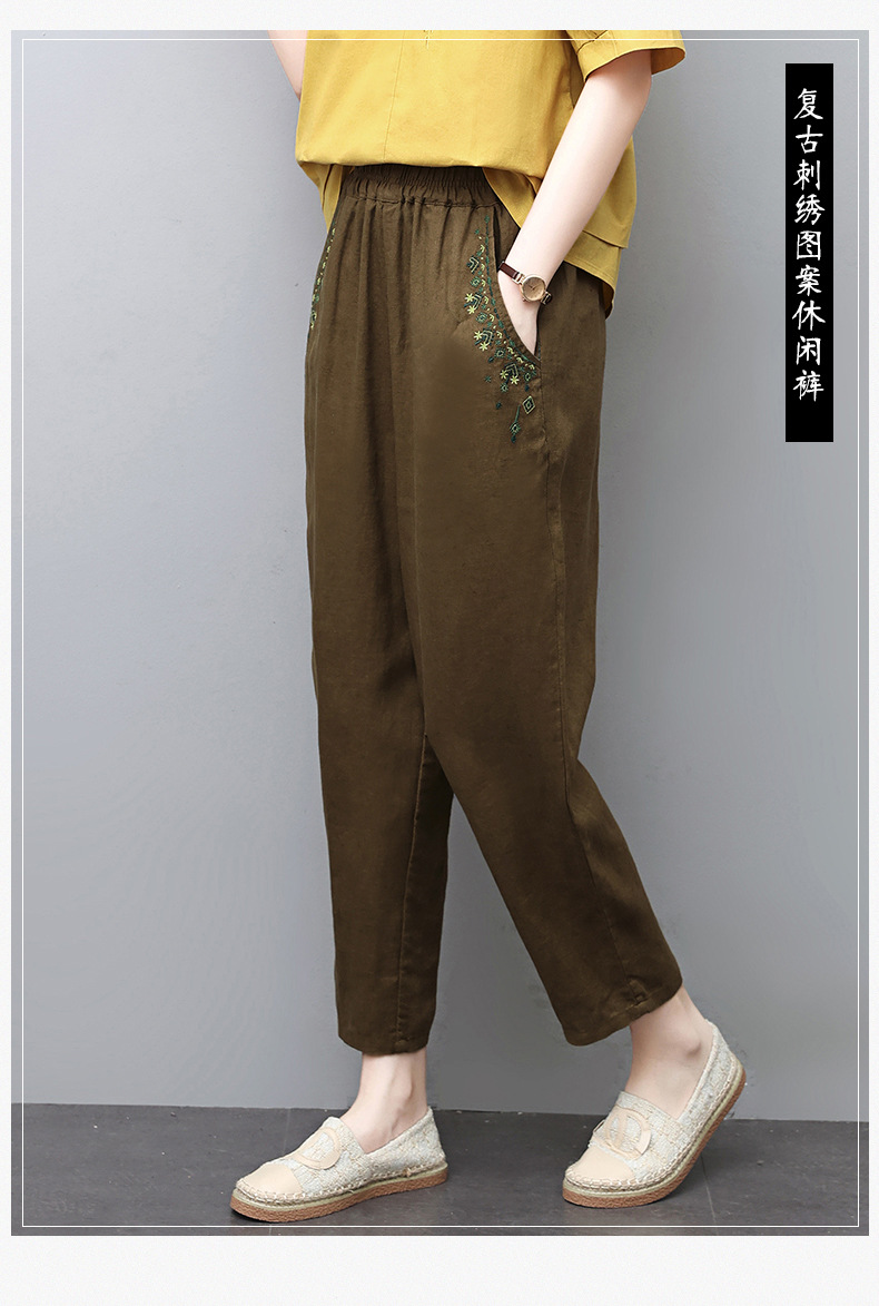 丁摩 女裤夏季薄款九分裤棉麻裤宽松直筒哈伦裤休闲亚麻裤3353