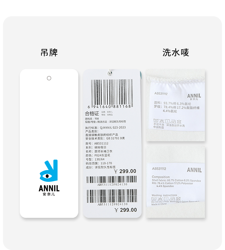 【实体店同款】男童圆领长袖卫衣秋季新款安奈儿童装AB531112