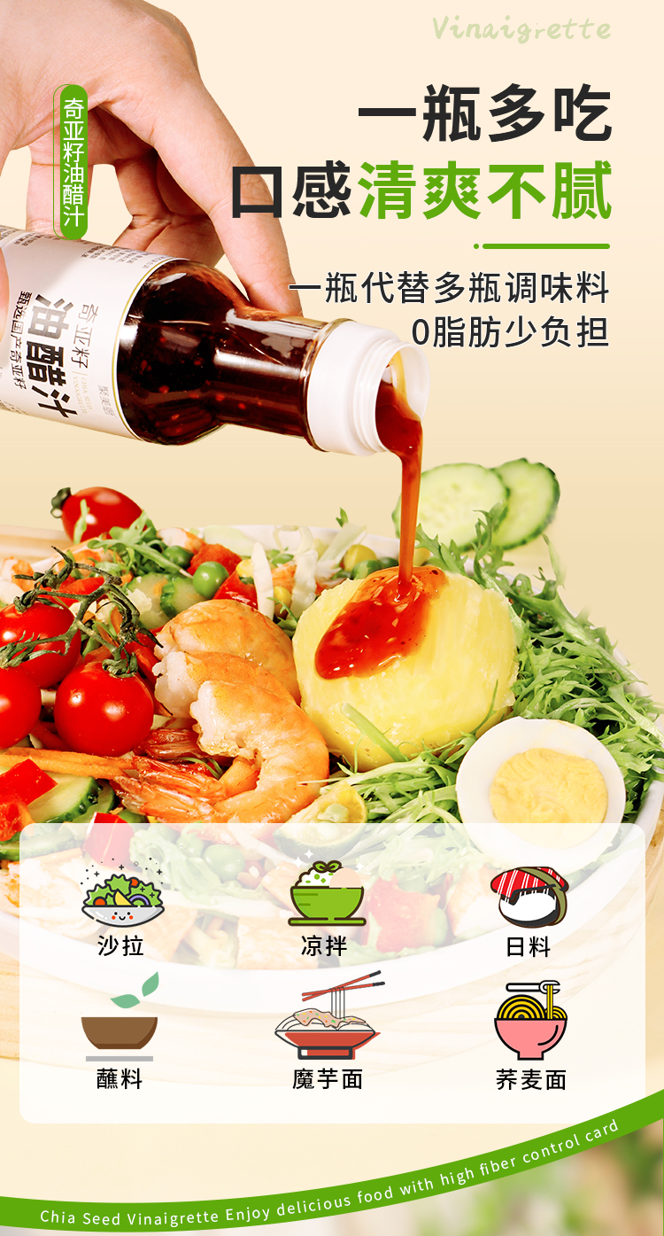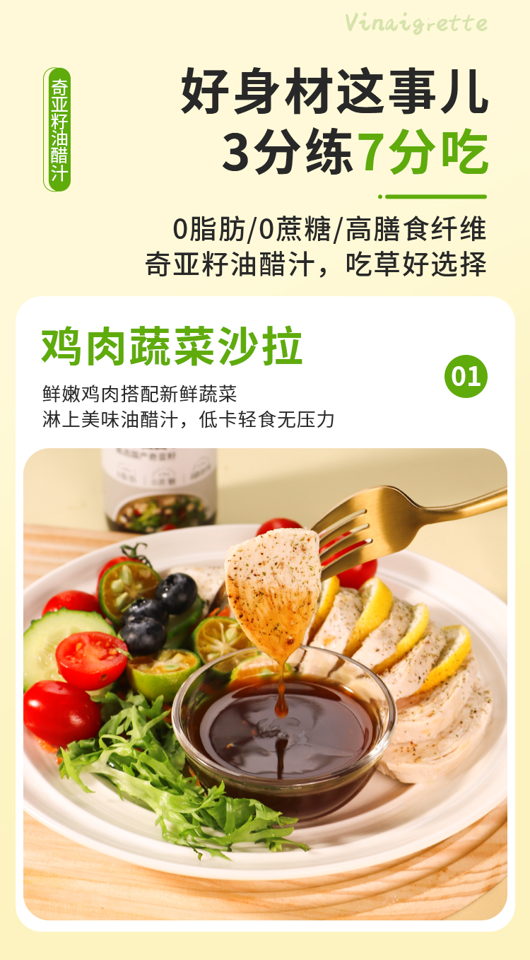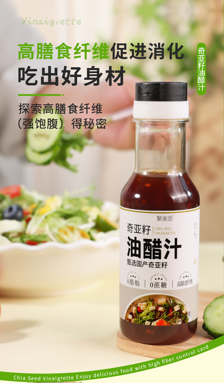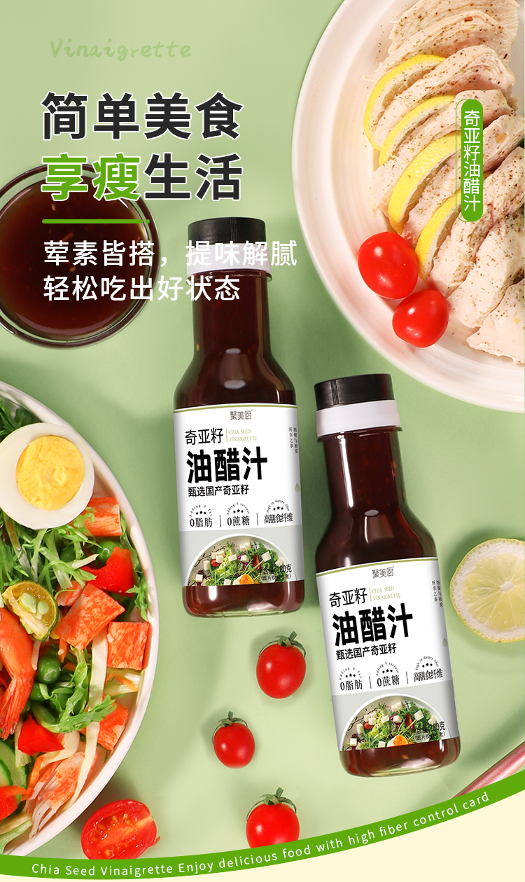 0蔗糖奇亚籽油醋汁蔬菜沙拉轻食专用酱 凉拌菜荞麦面沙拉汁零脂肪