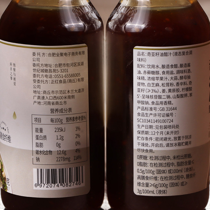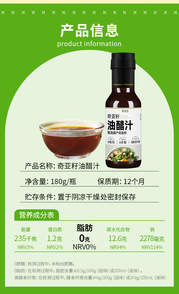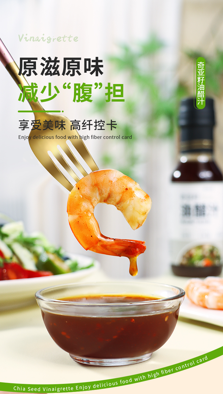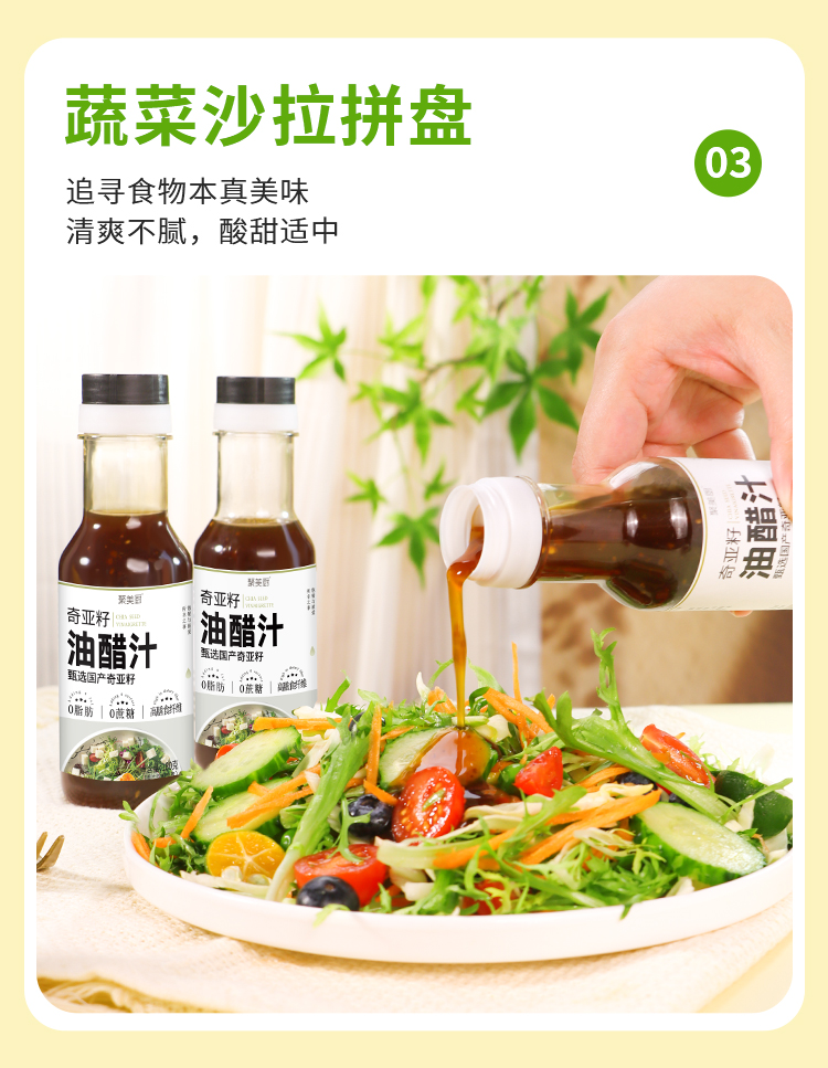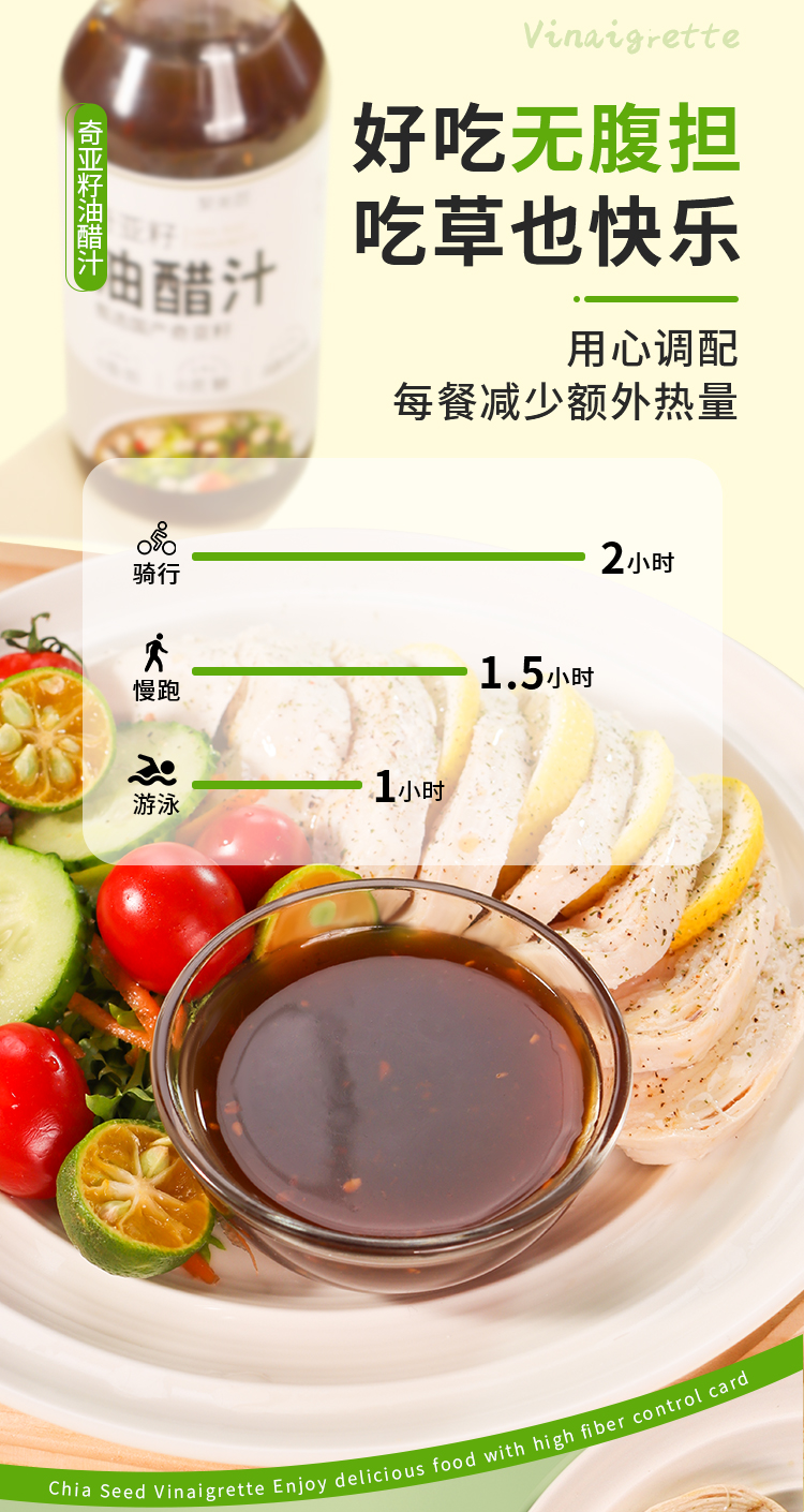 0蔗糖奇亚籽油醋汁蔬菜沙拉轻食专用酱 凉拌菜荞麦面沙拉汁零脂肪