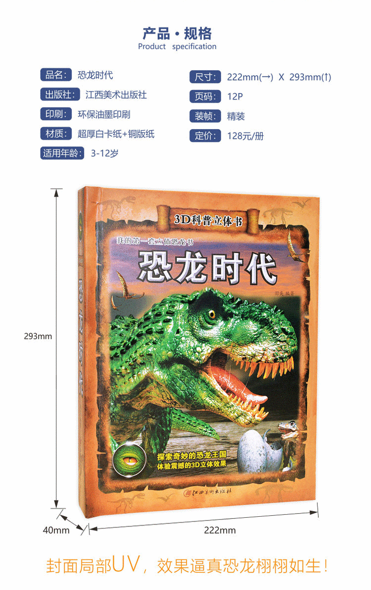 3D科普立体书《恐龙时代》 | 儿童3D立体书,探索奇妙的恐龙王国,体验震撼的3D立体效果。