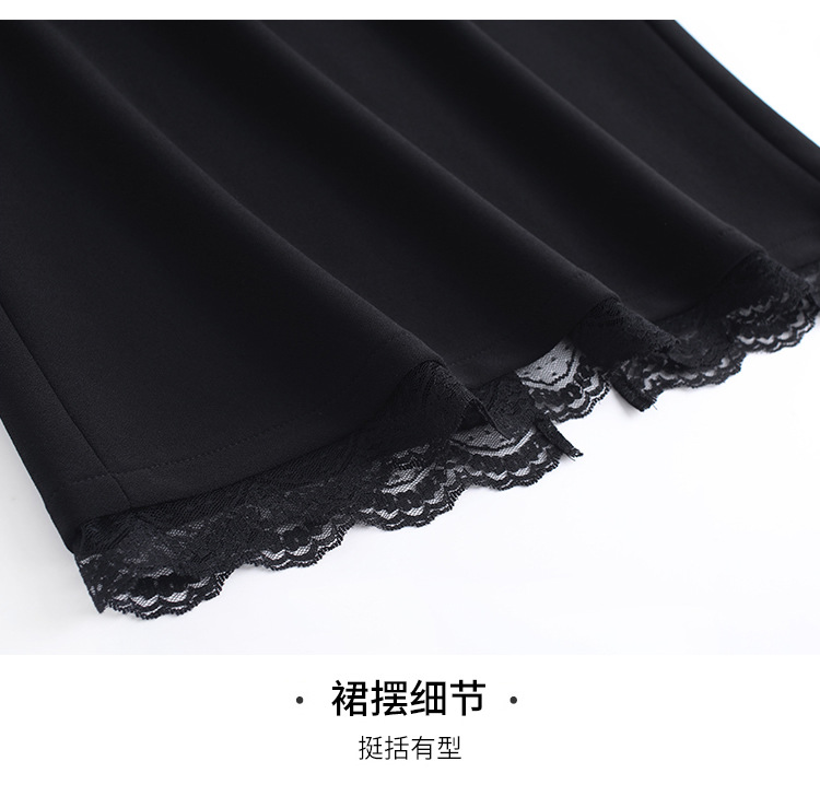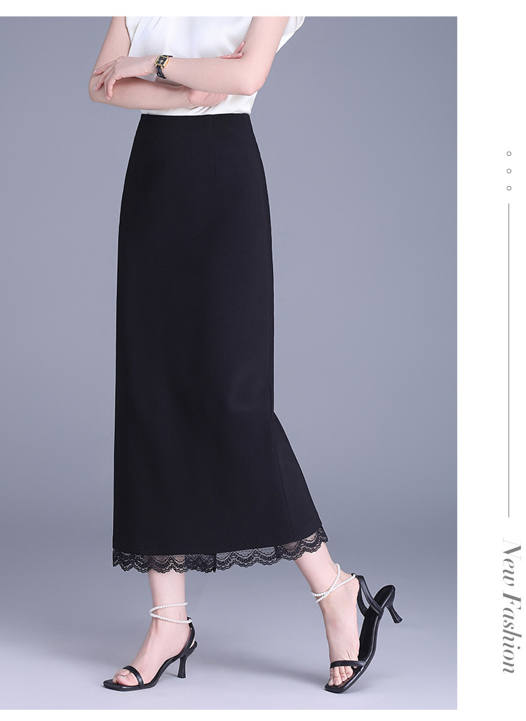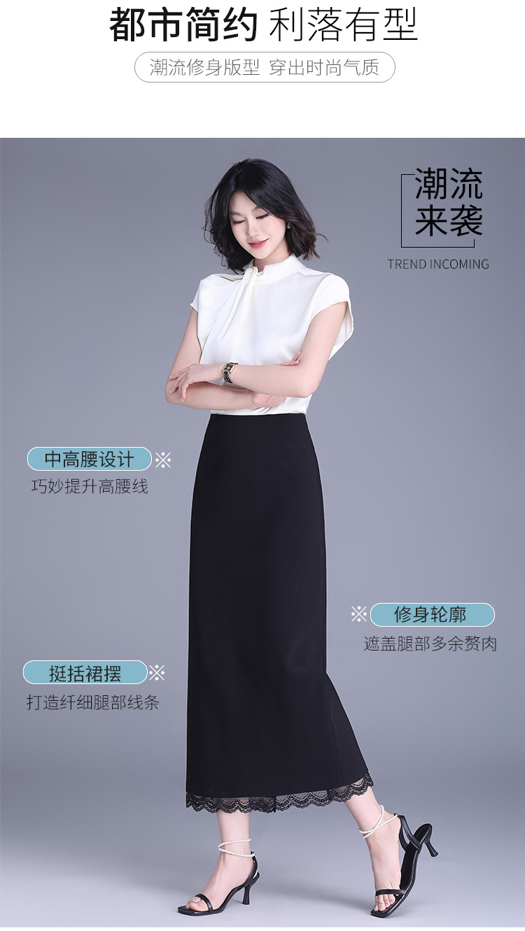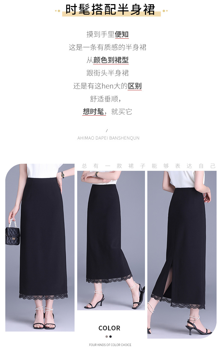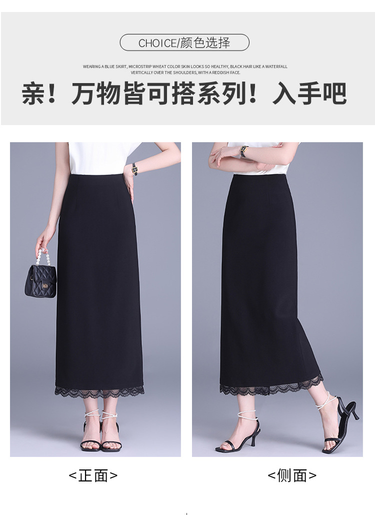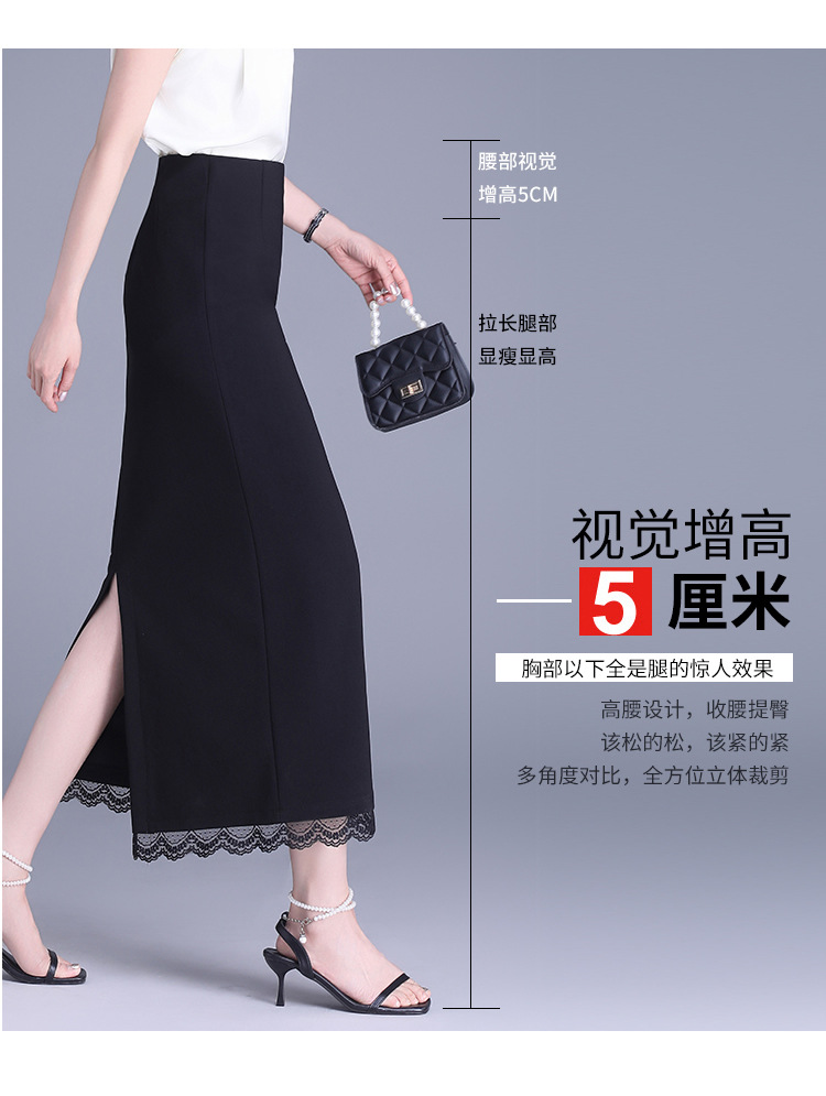 MYX-QM-8590-L蕾丝边拼接显瘦黑色直筒裙长款修身开叉包臀裙春夏新款高腰半身裙