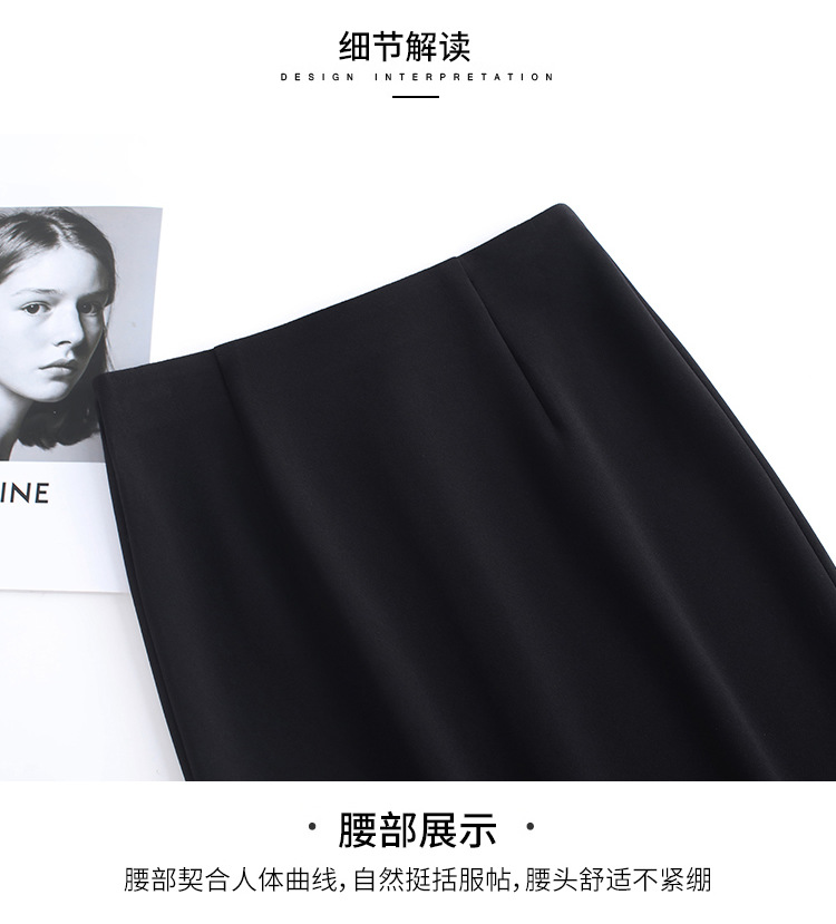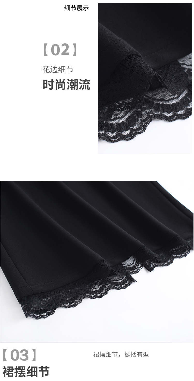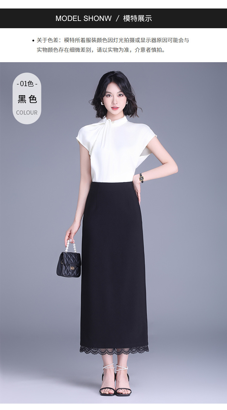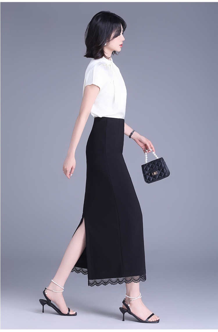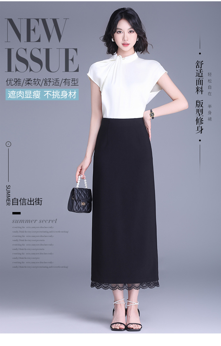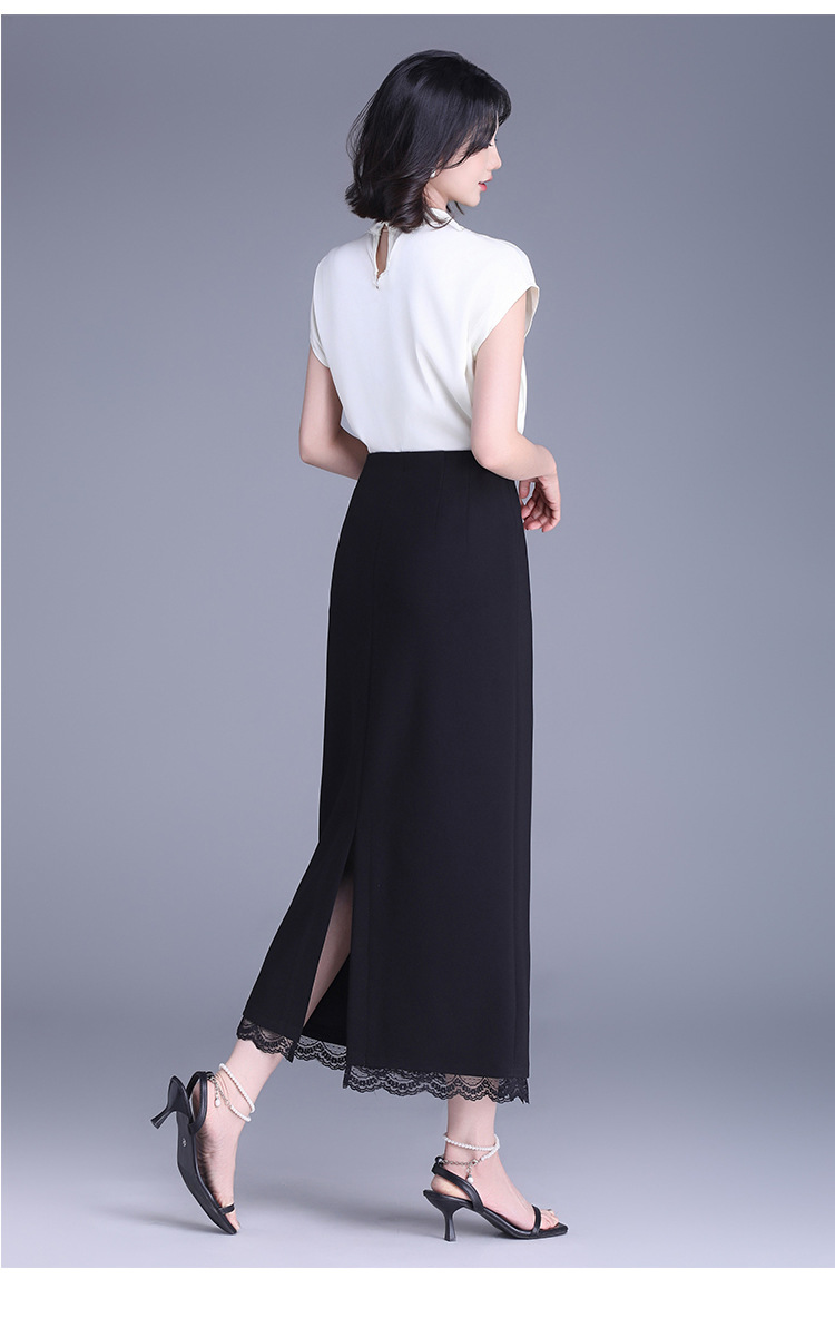 MYX-QM-8590-L蕾丝边拼接显瘦黑色直筒裙长款修身开叉包臀裙春夏新款高腰半身裙