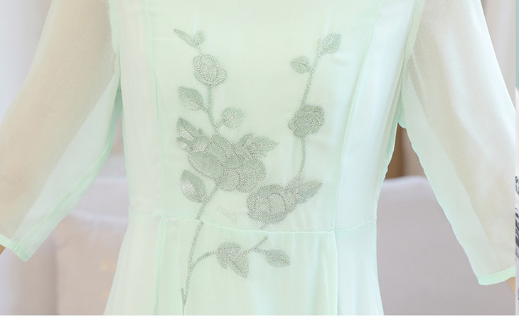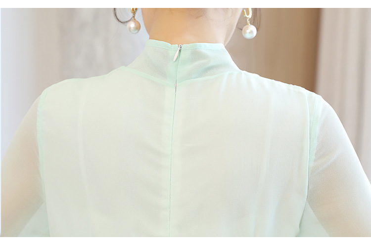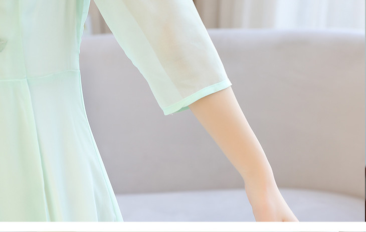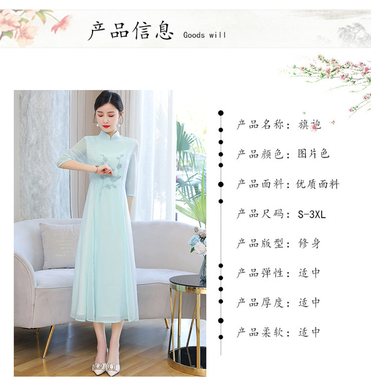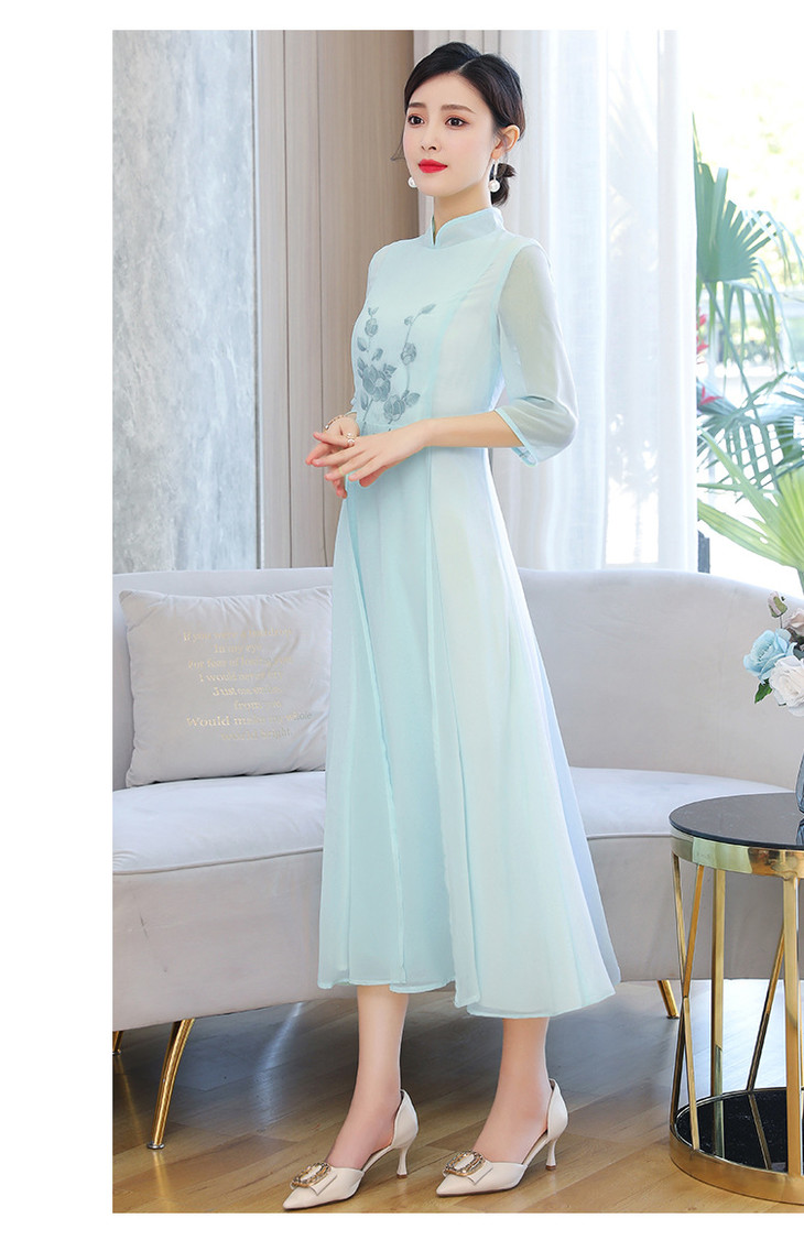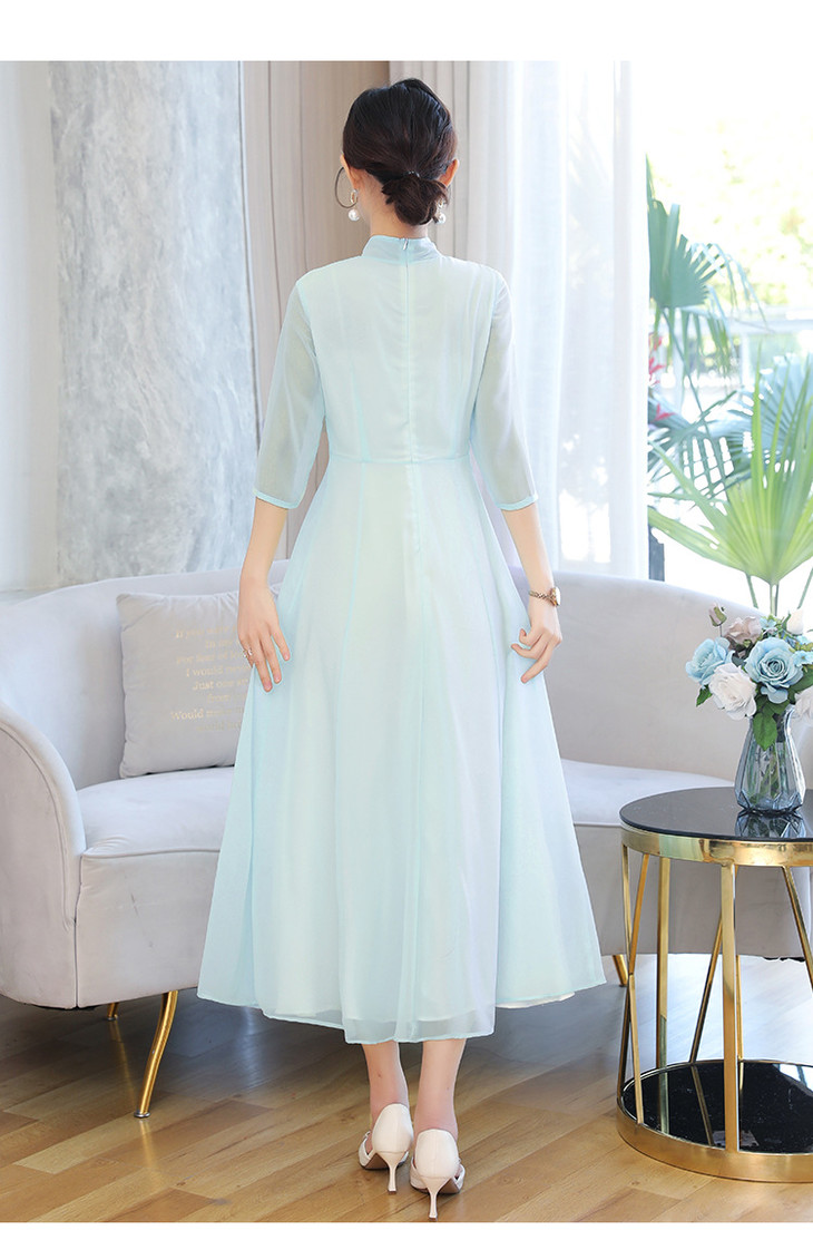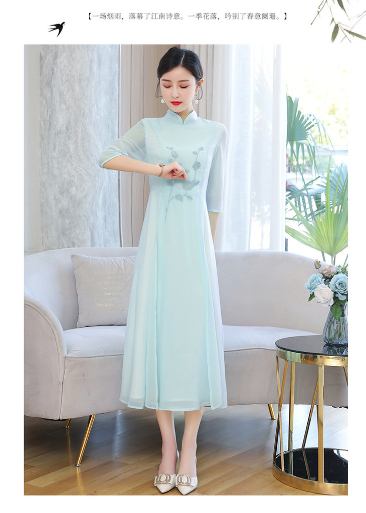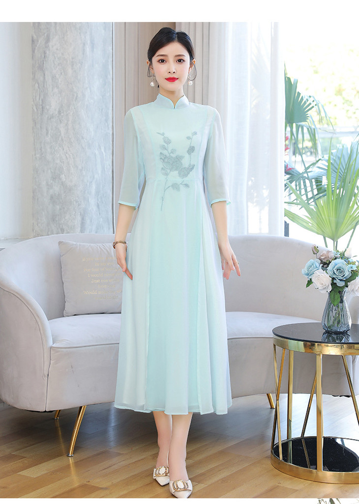 XYA022 新款汉服中国风长裙雪纺绣花改良民国风雪纺连衣裙中式禅茶服