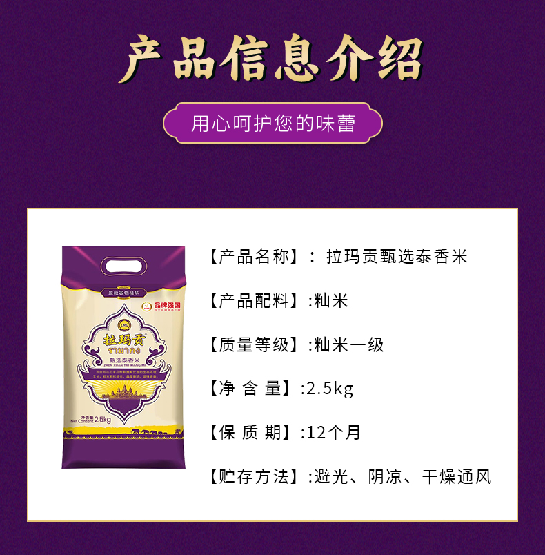 买1送1拉玛贡甄选泰香米/1袋(2.5kg)生产日期:25年10月