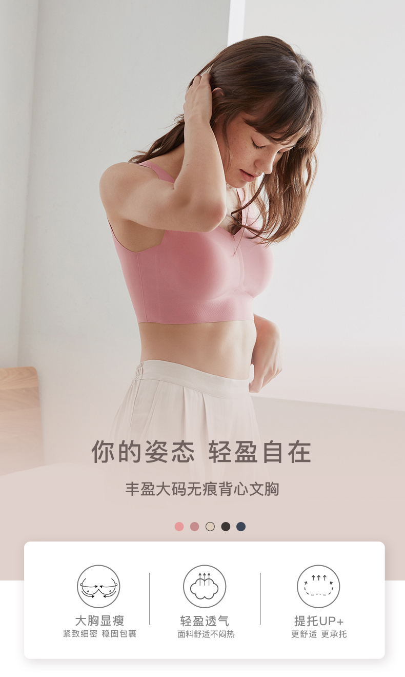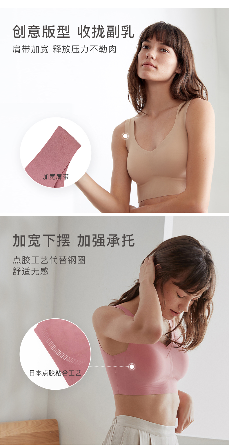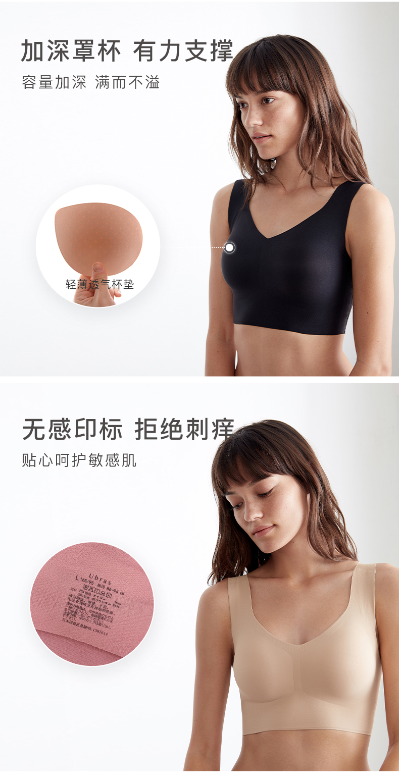 Ubras丰盈大码背心式文胸大胸显小无痕内衣女无钢圈聚拢上托胸罩