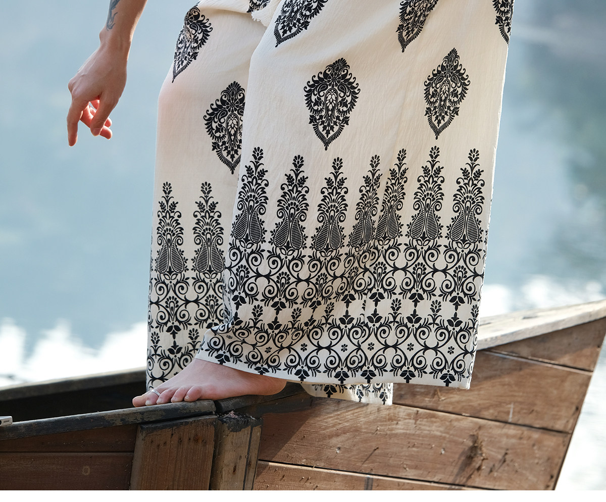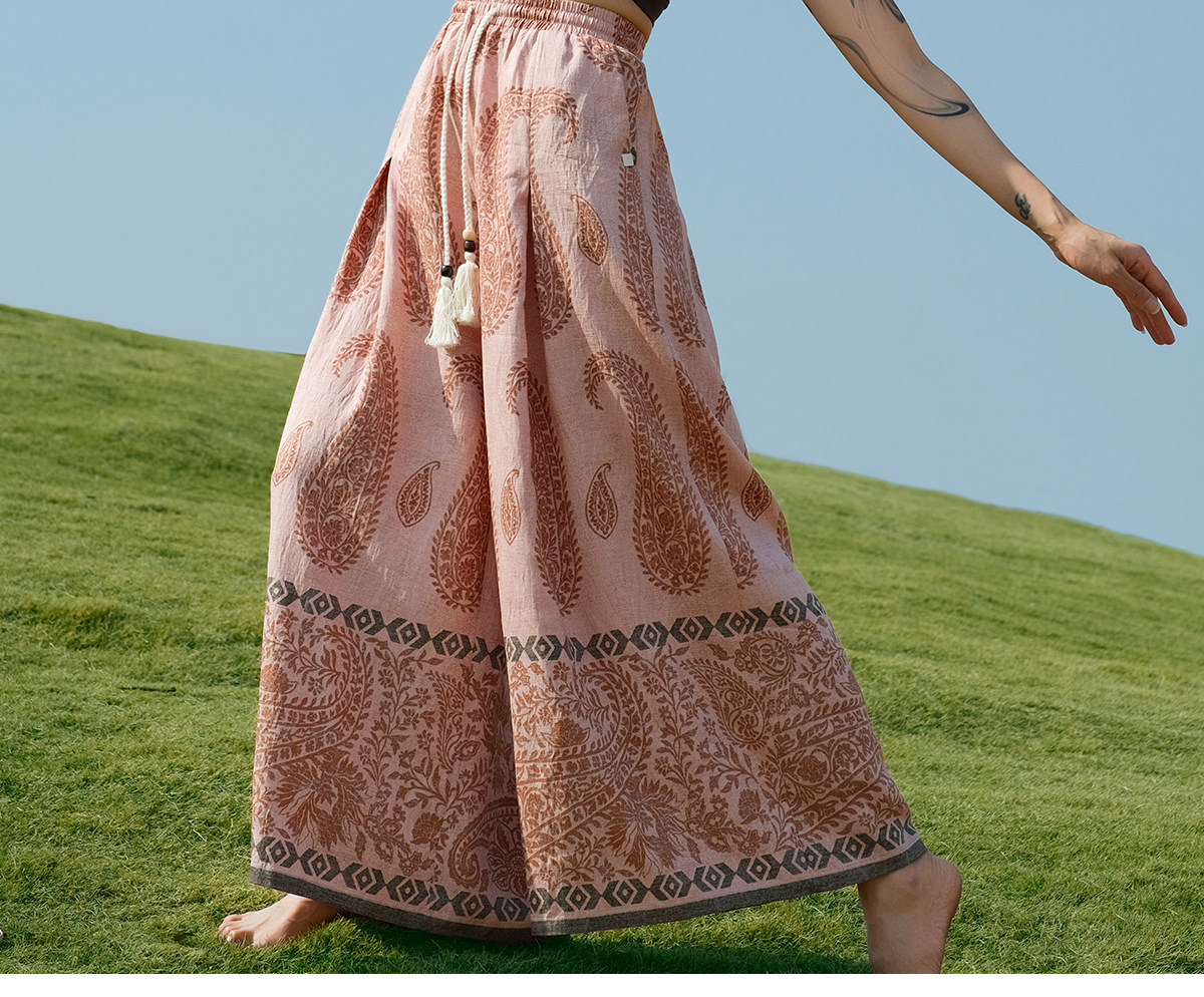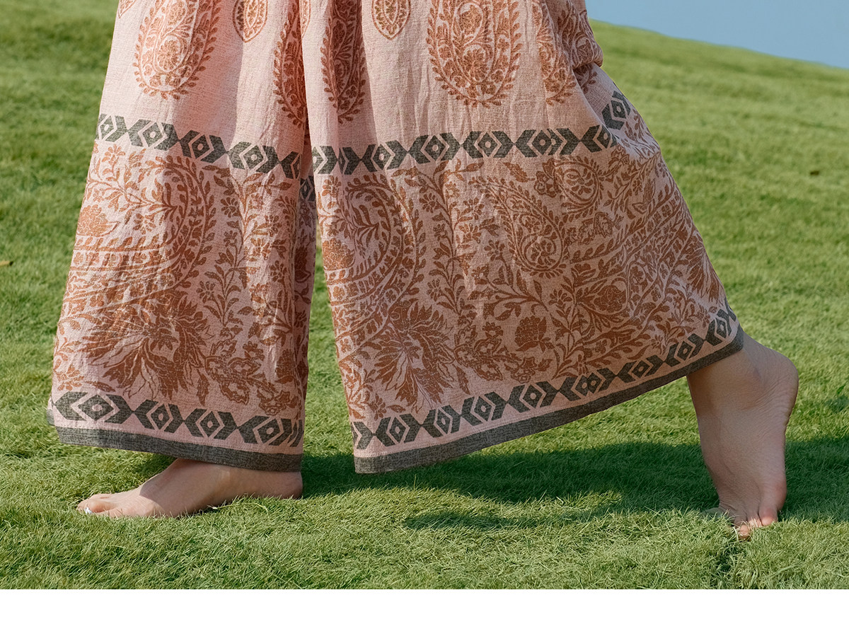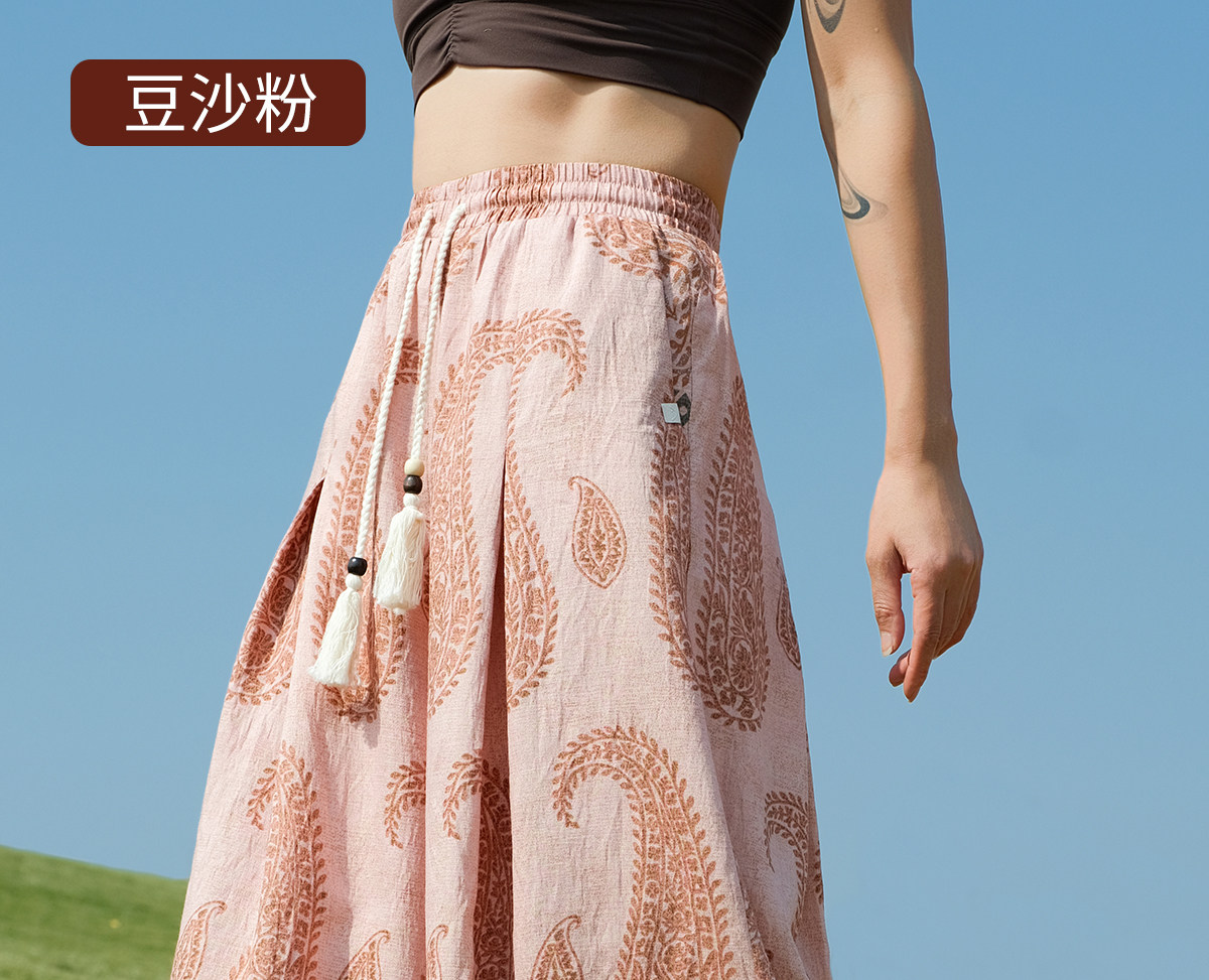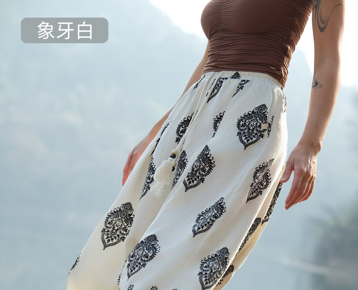爱暇步宽松直筒瑜伽裤女2026春季新款高腰系带休闲度假风印花裤子