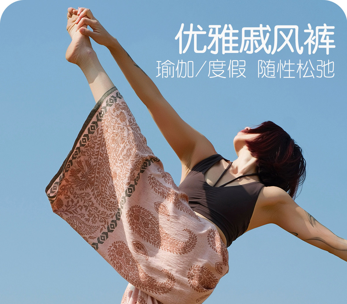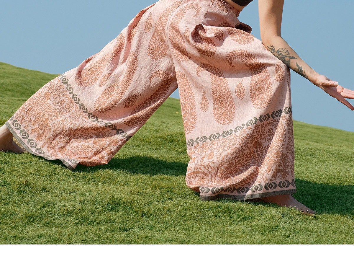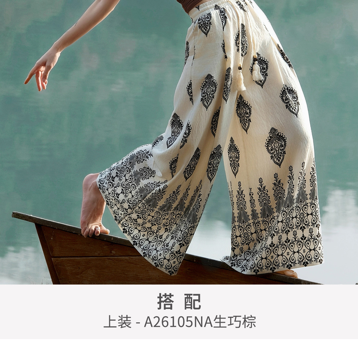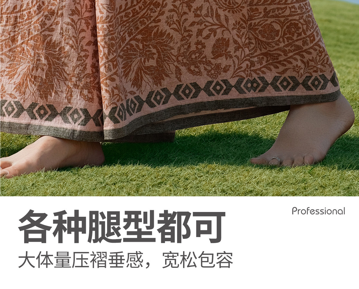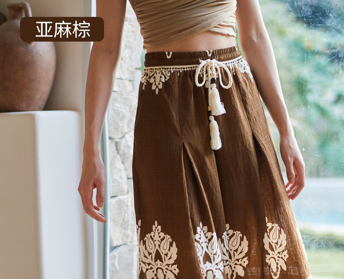 爱暇步宽松直筒瑜伽裤女2026春季新款高腰系带休闲度假风印花裤子