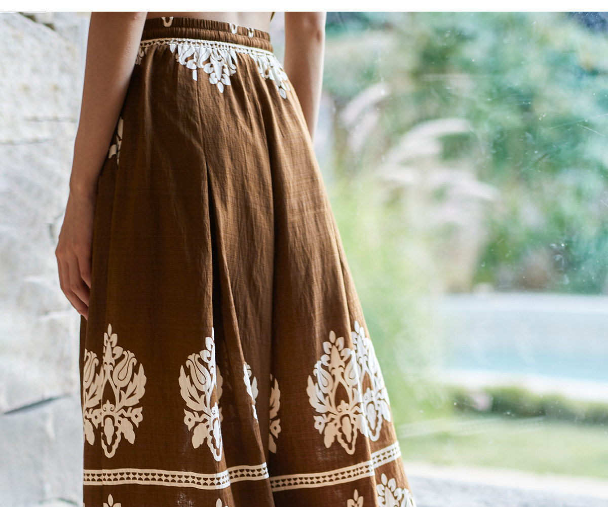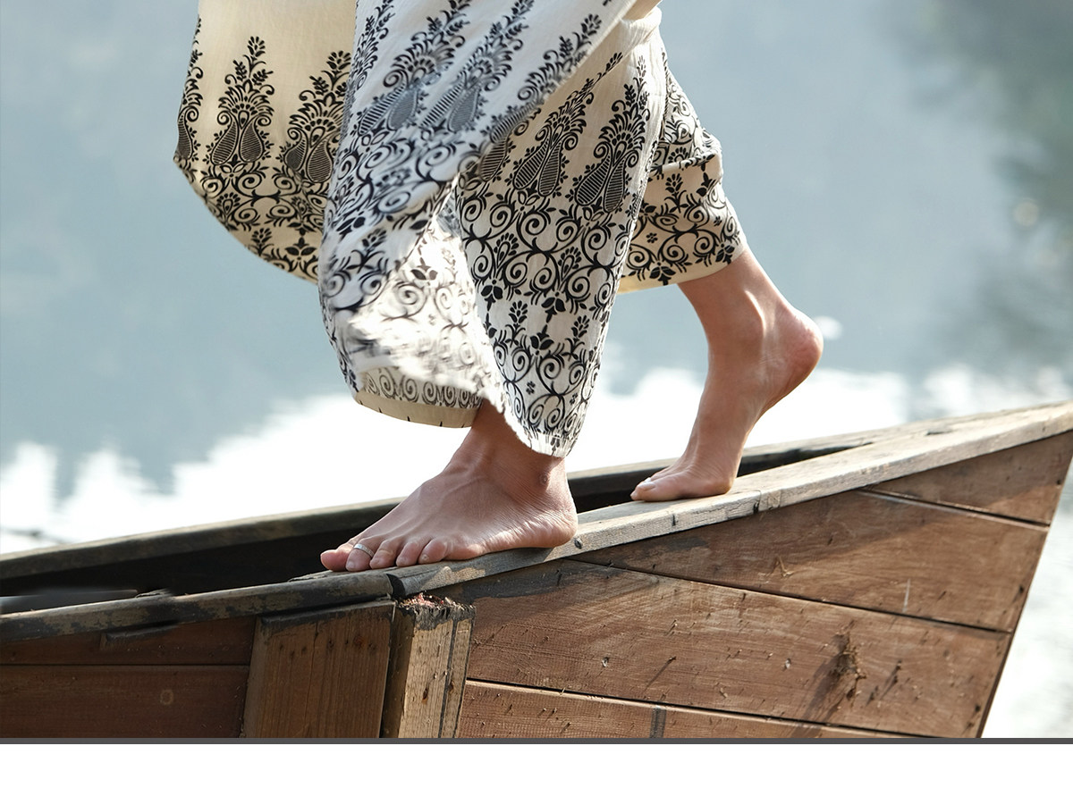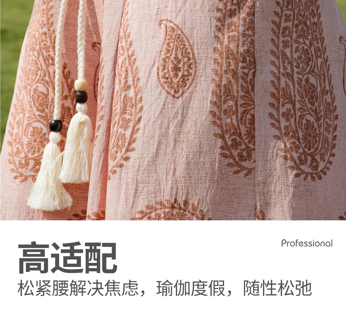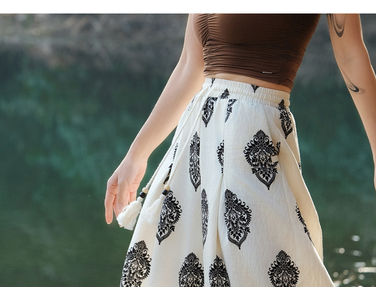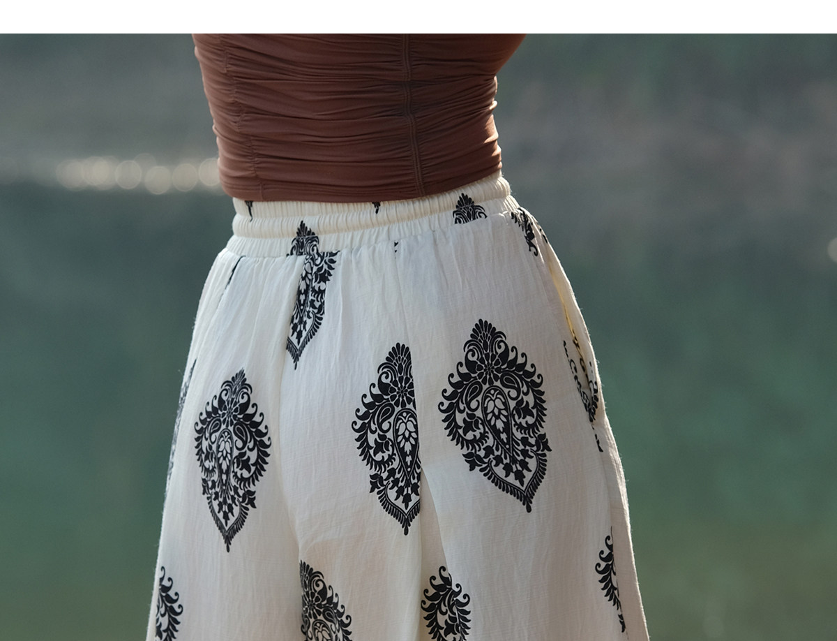 爱暇步宽松直筒瑜伽裤女2026春季新款高腰系带休闲度假风印花裤子