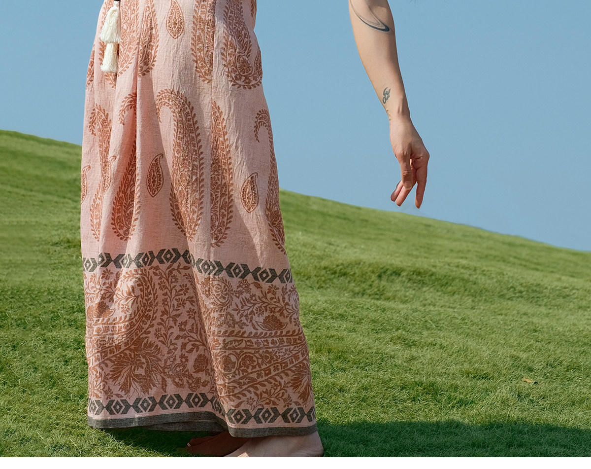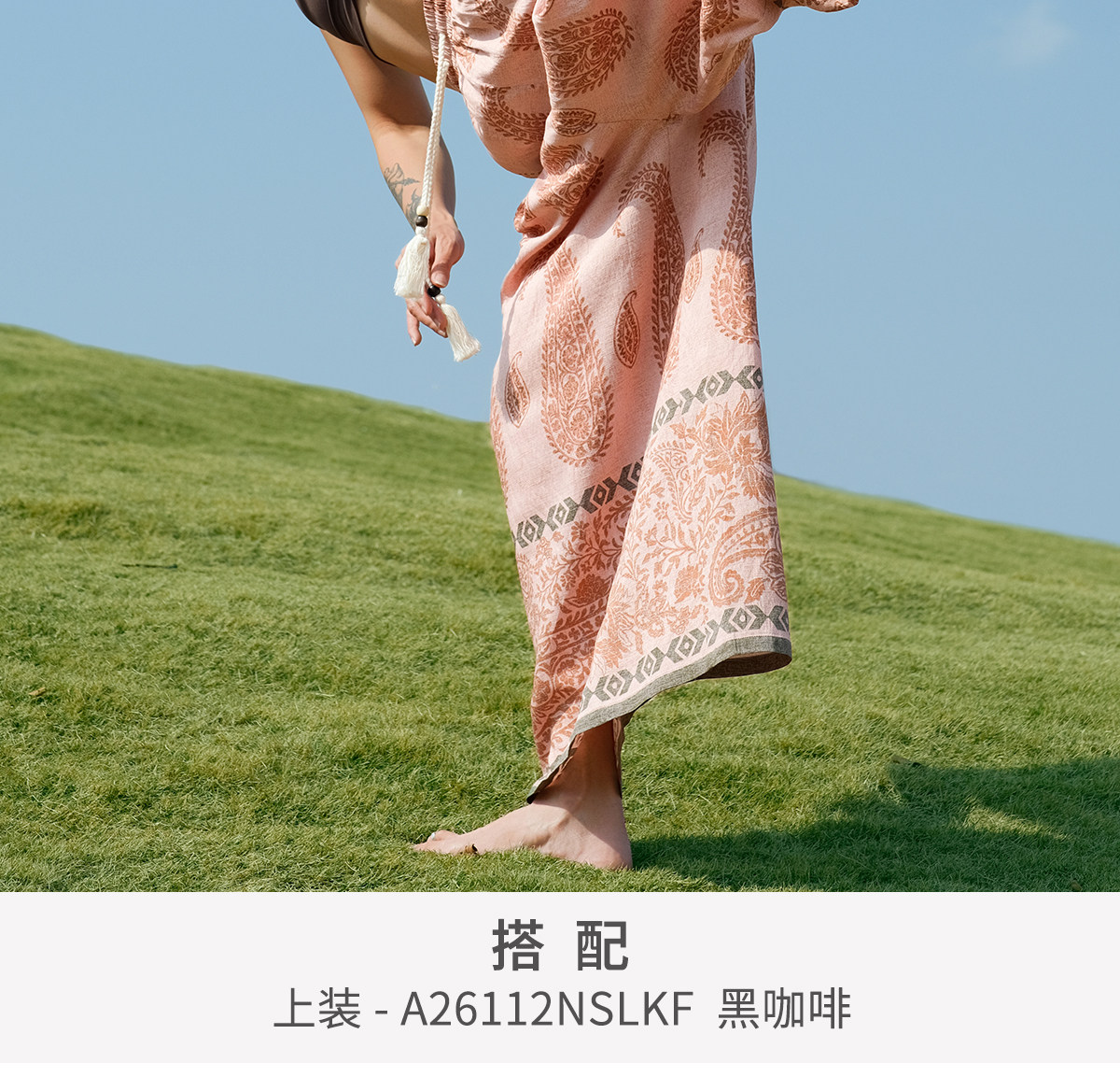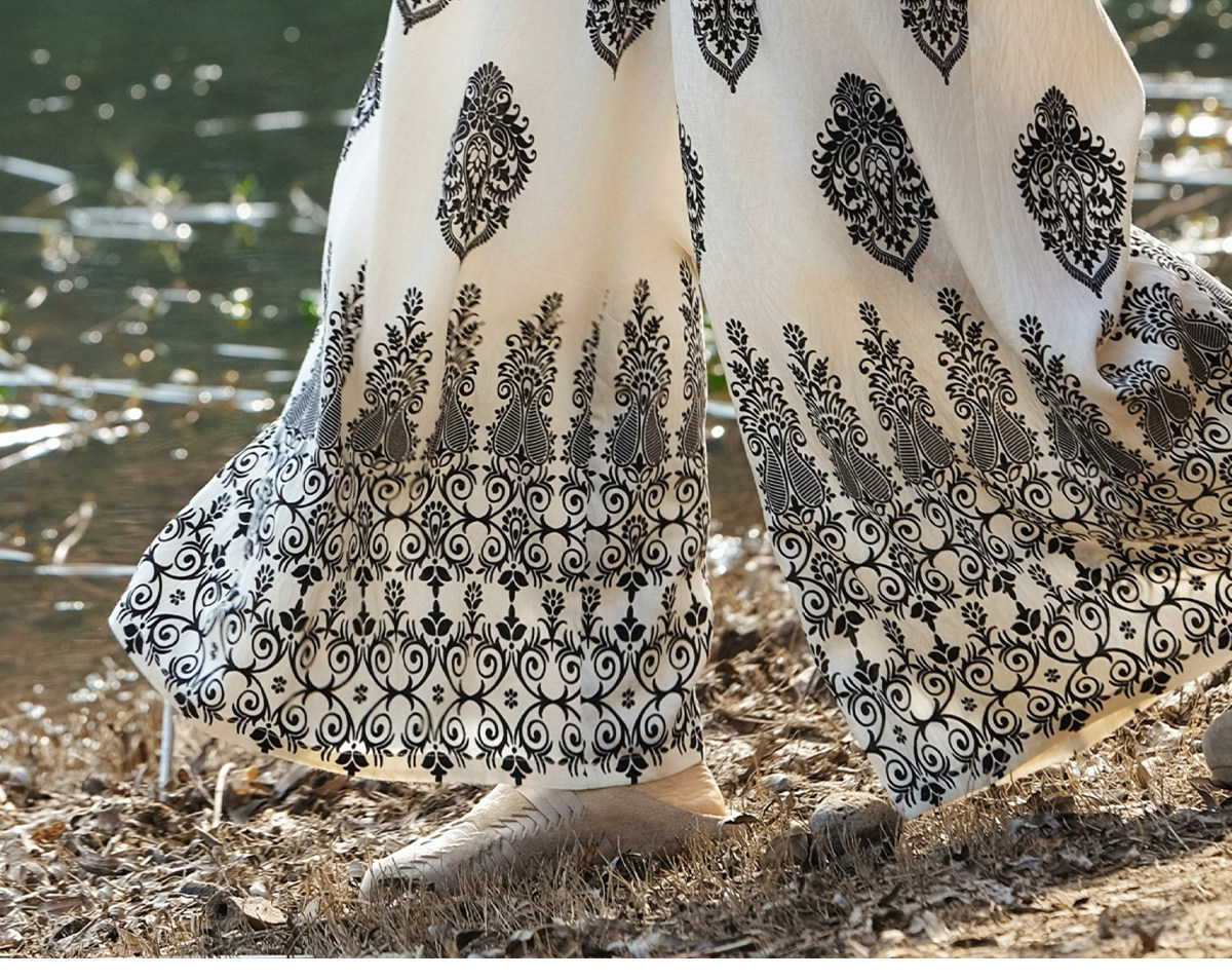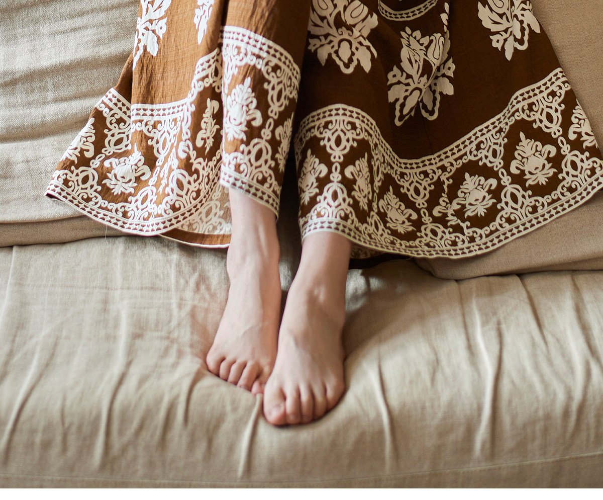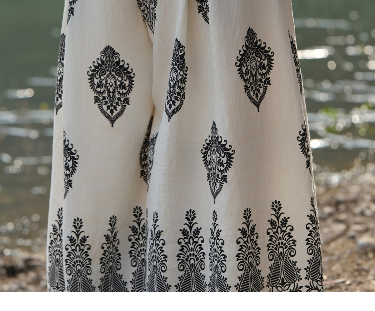爱暇步宽松直筒瑜伽裤女2026春季新款高腰系带休闲度假风印花裤子