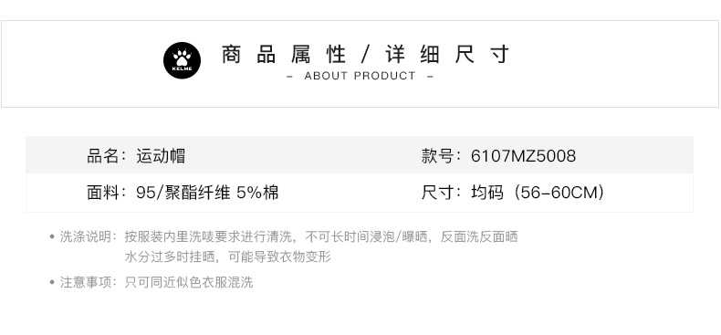 卡尔美休闲棒球帽防晒遮阳帽男女新款运动时尚鸭舌帽