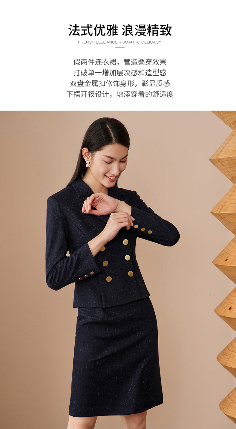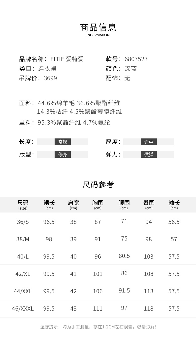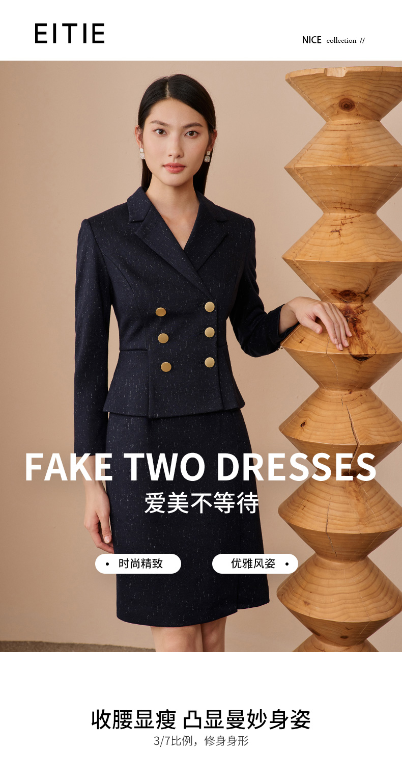 EITIE爱特爱冬季新款显瘦包臀气质干练假两件连衣裙6807523