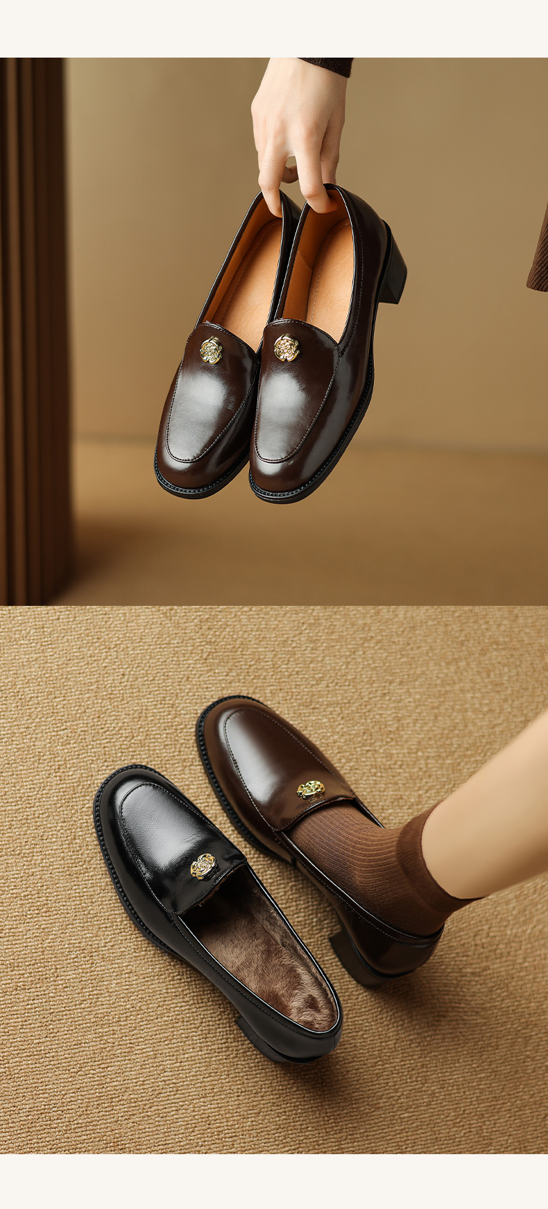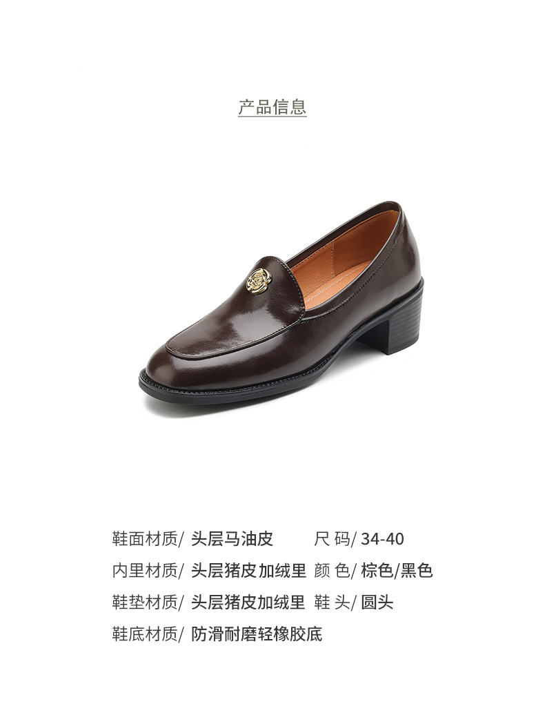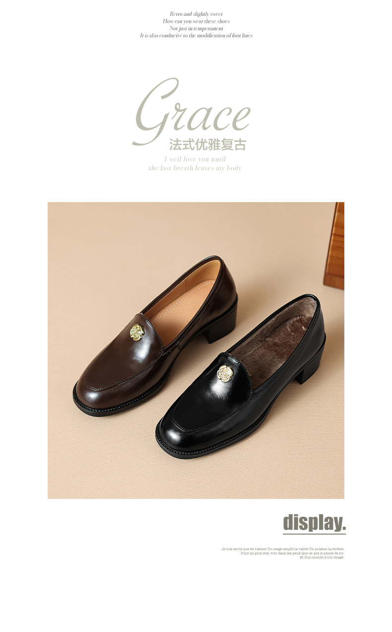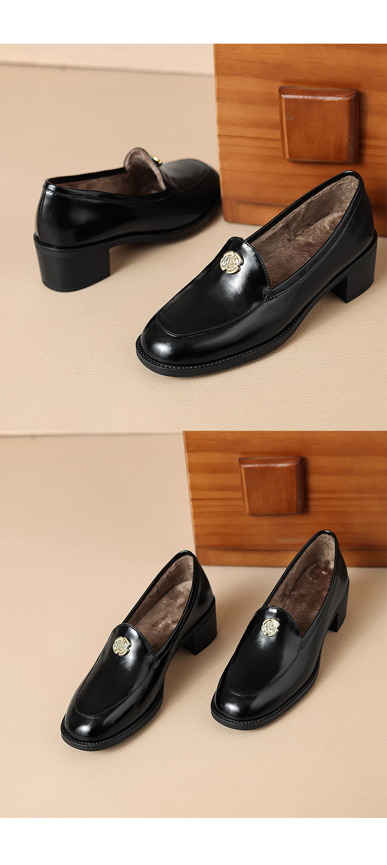 时尚显瘦,绒里保暖粗跟乐福鞋HJ-H329