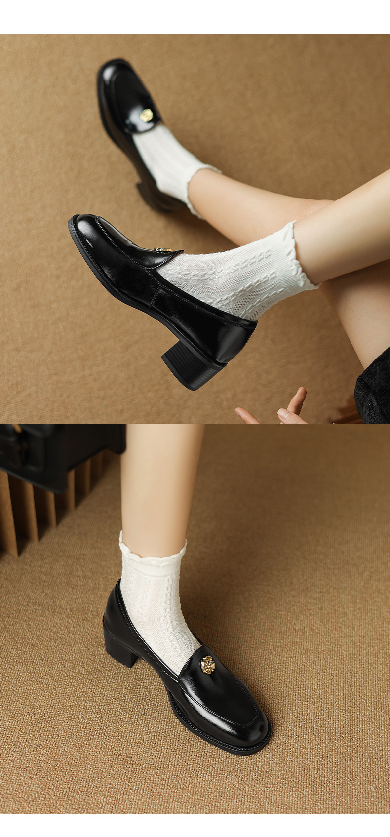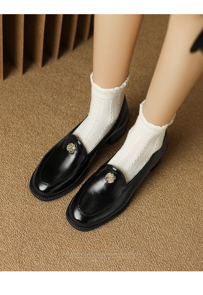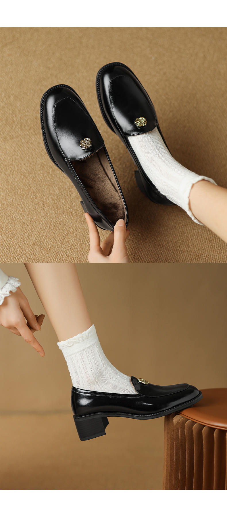 时尚显瘦,绒里保暖粗跟乐福鞋HJ-H329