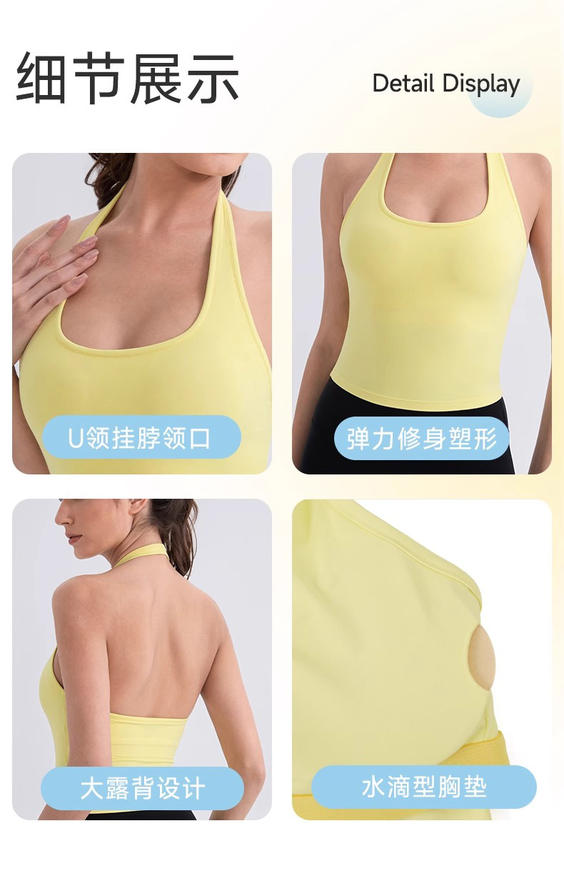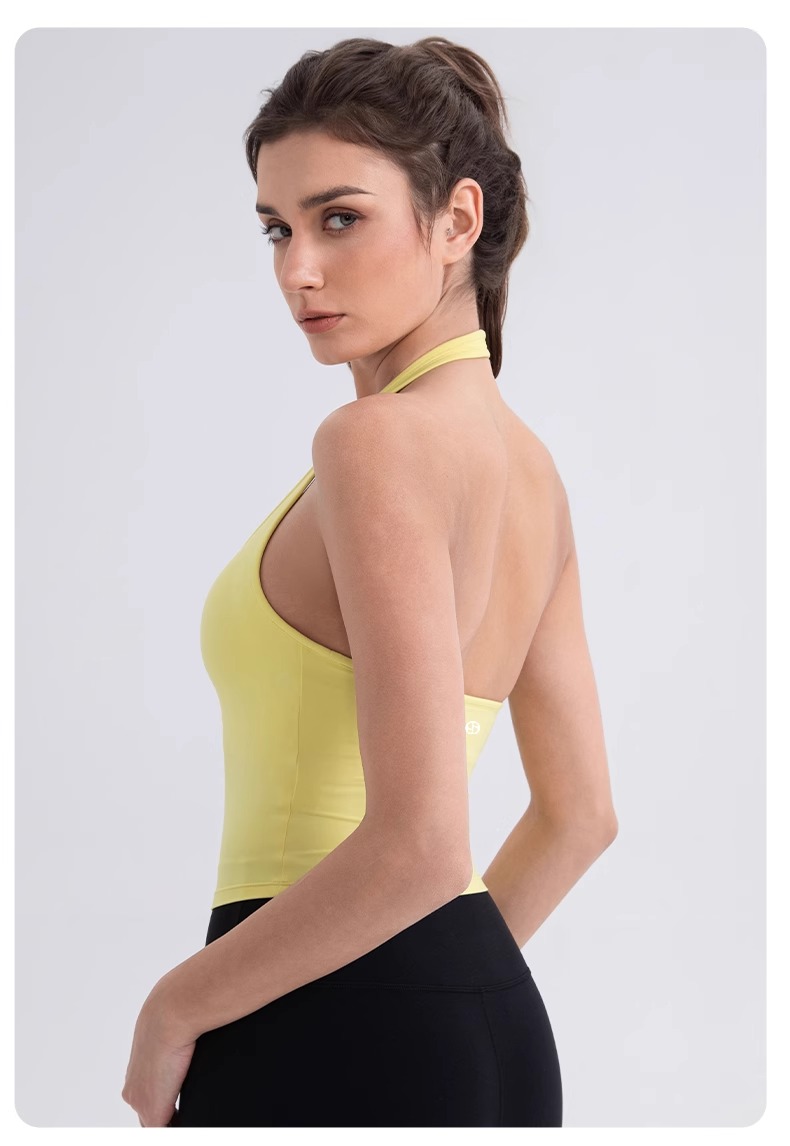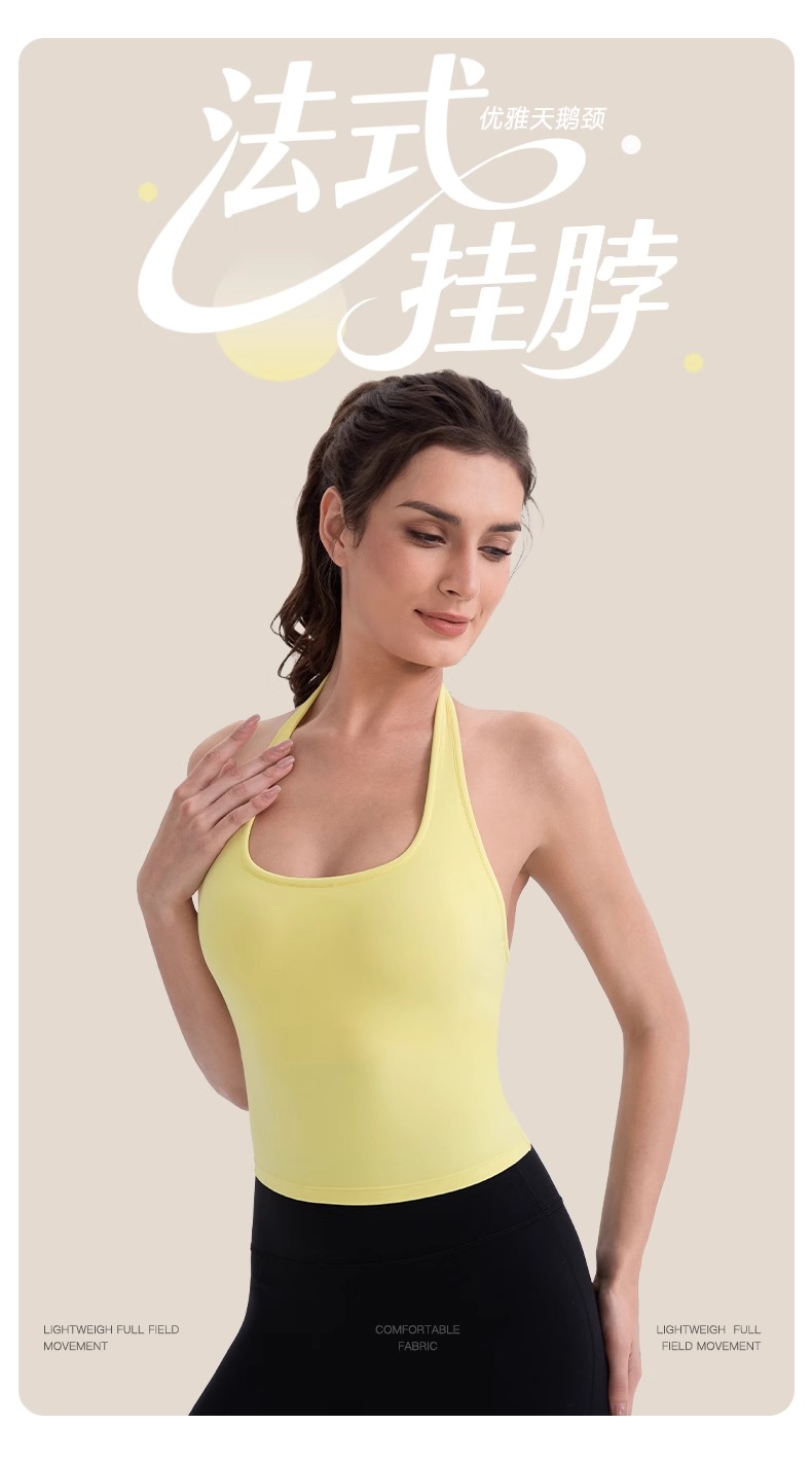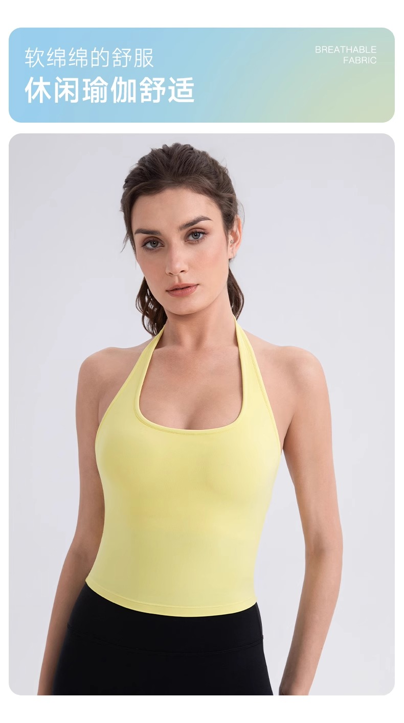 跃牌【欲动春风】系列 挂脖瑜伽背心女裸感运动跑步背心带胸垫美背性感运动上衣52167