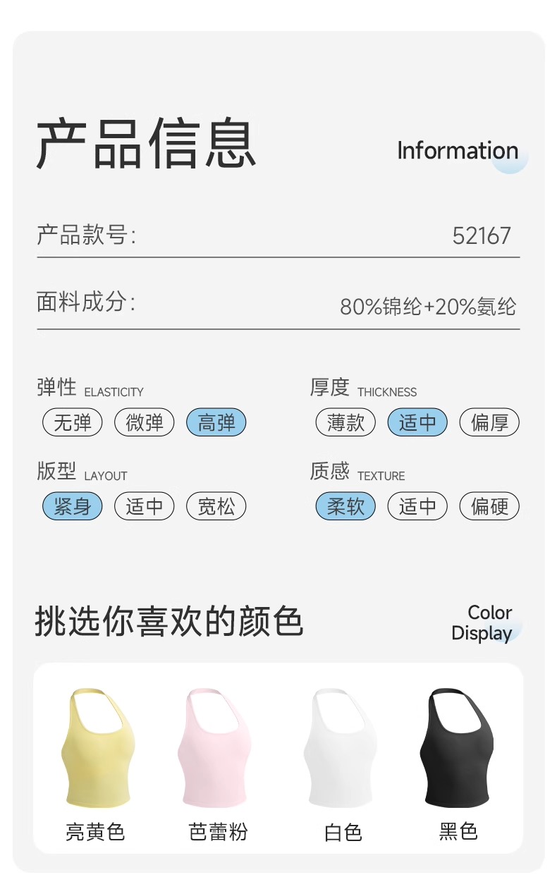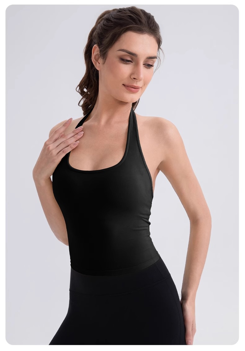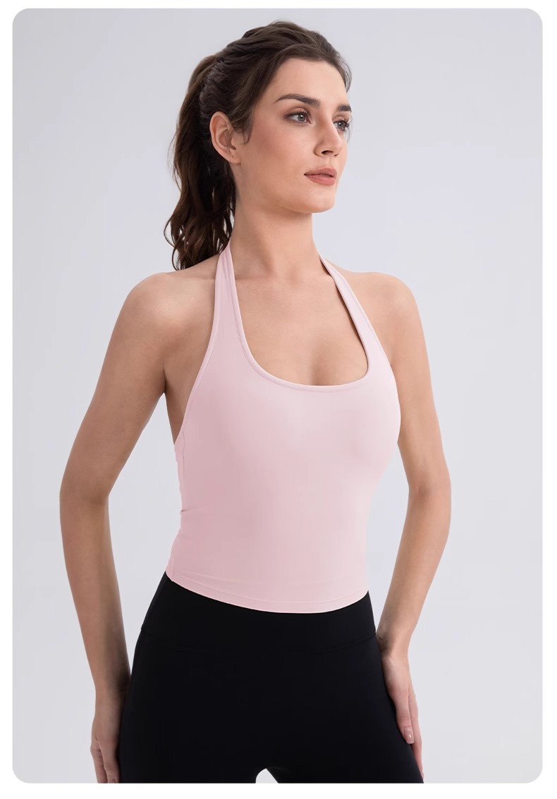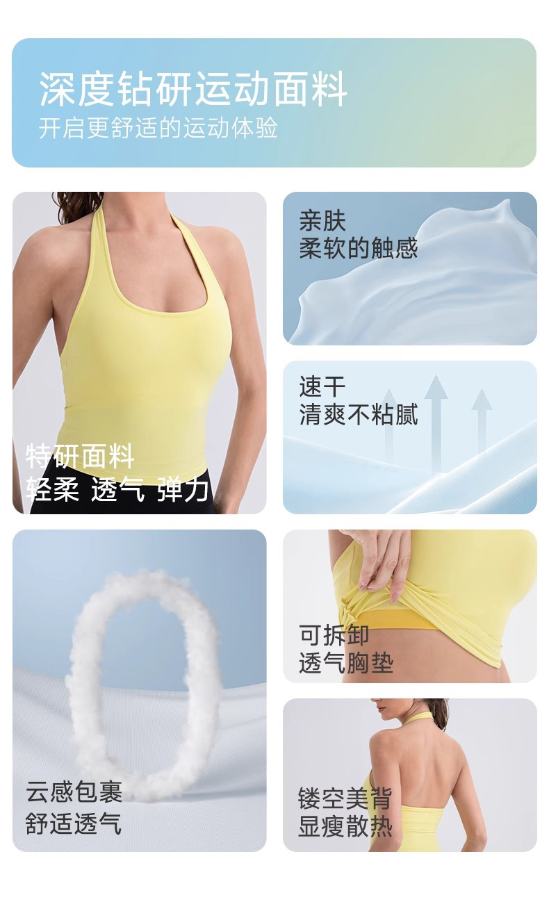 跃牌【欲动春风】系列 挂脖瑜伽背心女裸感运动跑步背心带胸垫美背性感运动上衣52167