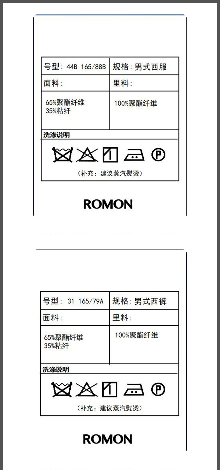 面料:65%聚酯纤维,35%粘纤;里料:100%聚酯纤维