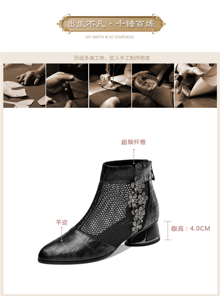 优雅简约,网纱拼接水钻网靴HYT-MS276-7