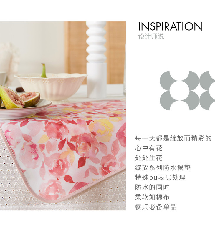 绽放系列防水餐垫棉布PU涂层防水垫
