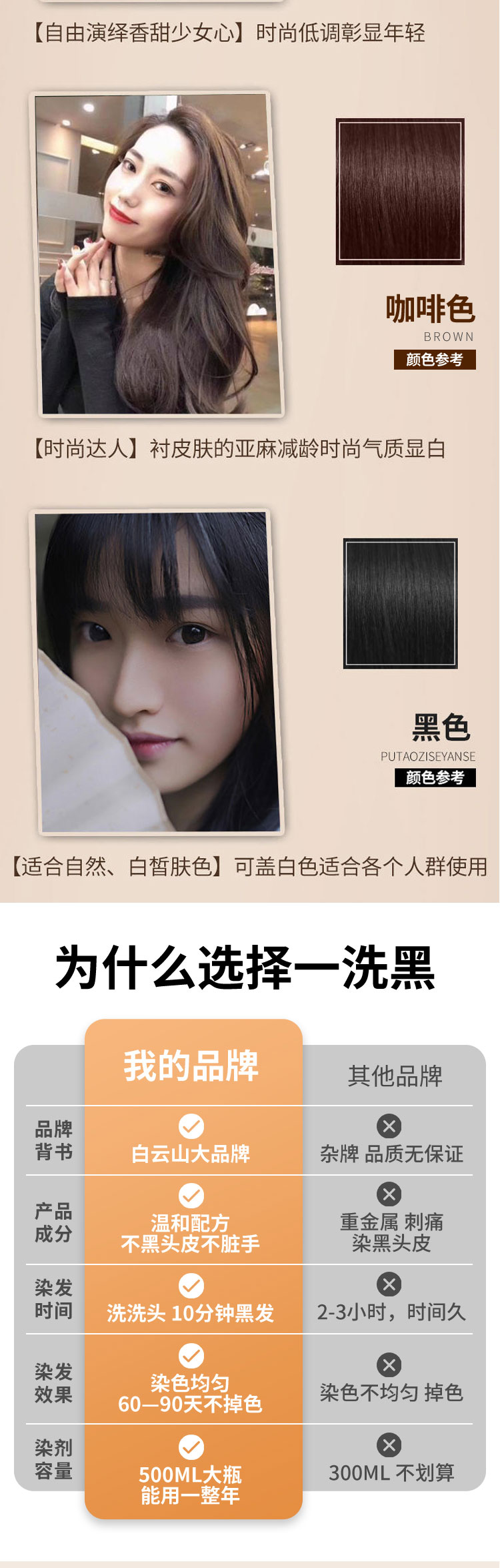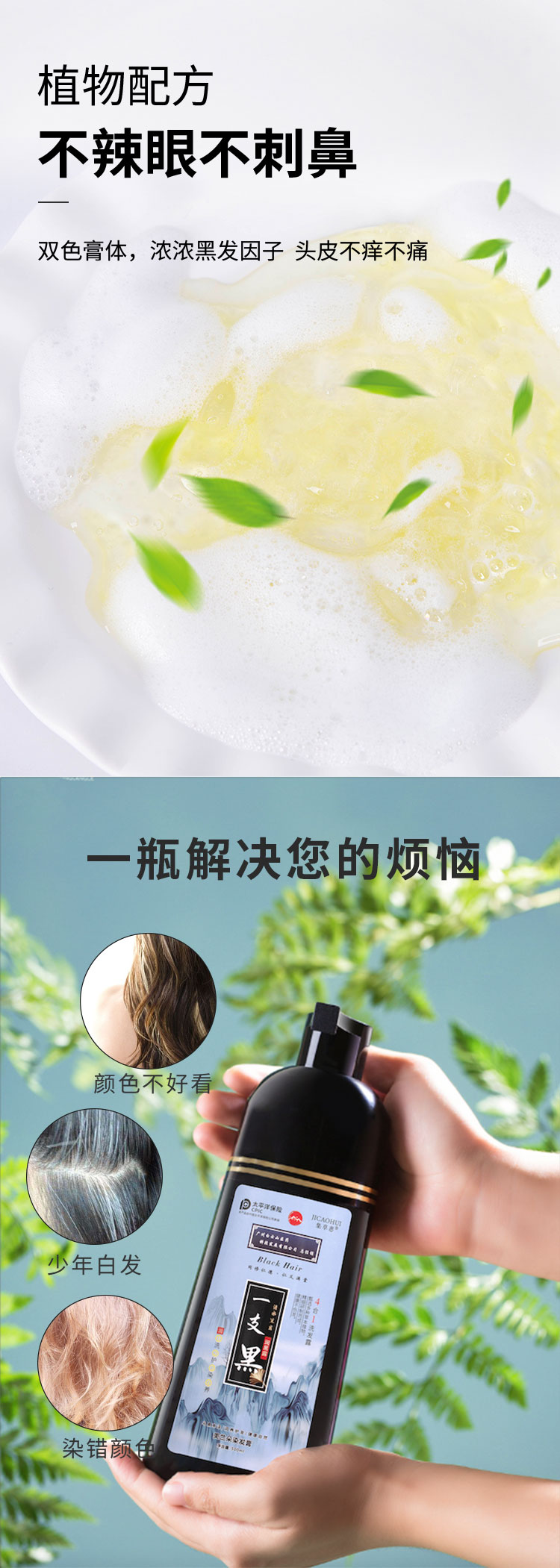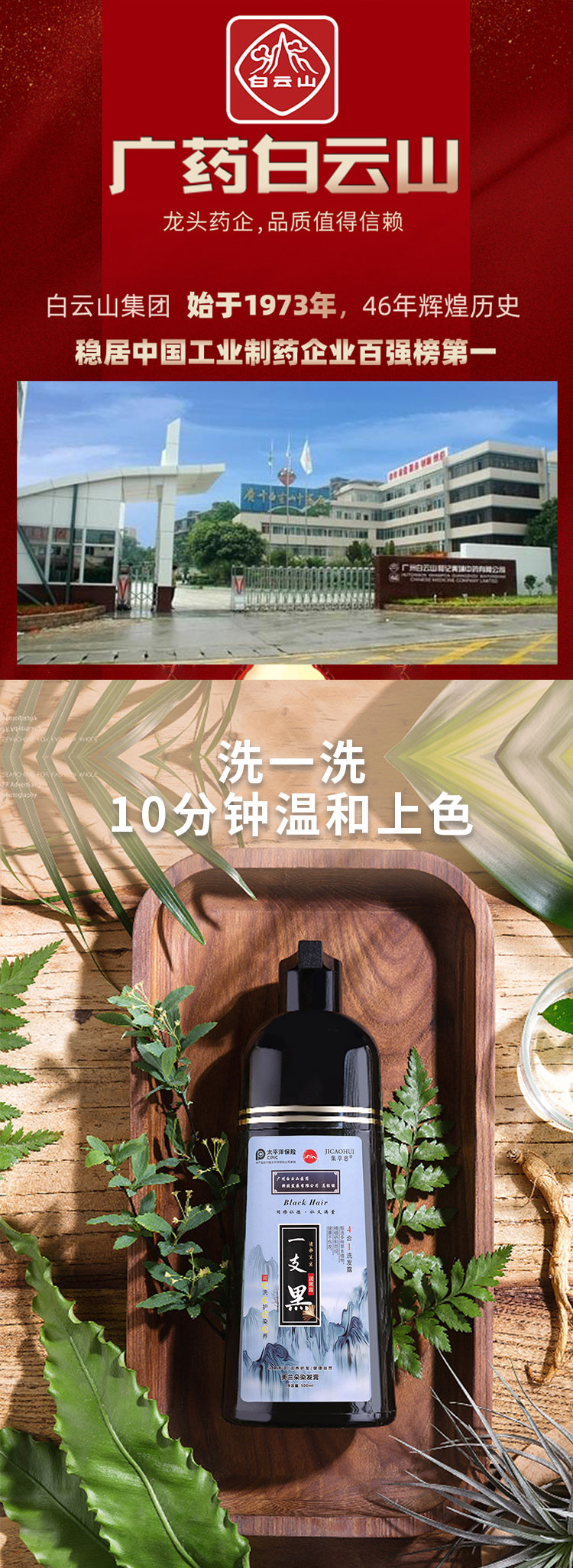 【第3瓶1元】广州白云山一洗黑染发无需调剂一洗即染染发像洗头一样简单萃取植物精华多色可选智能染发