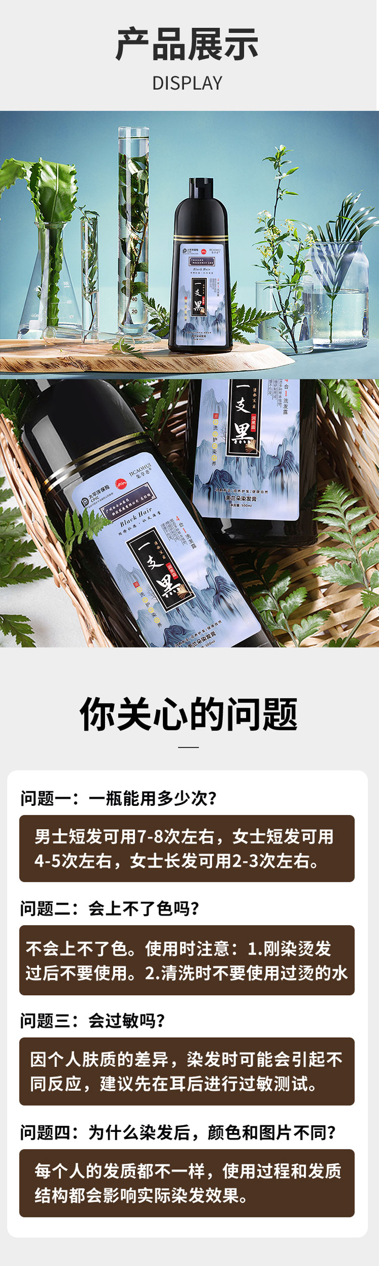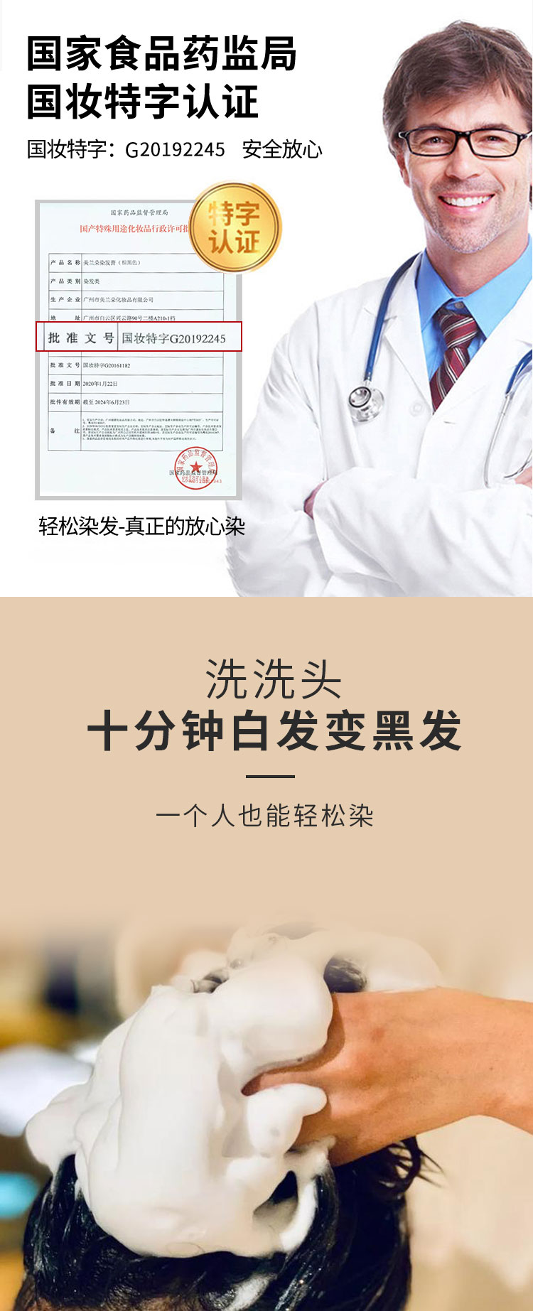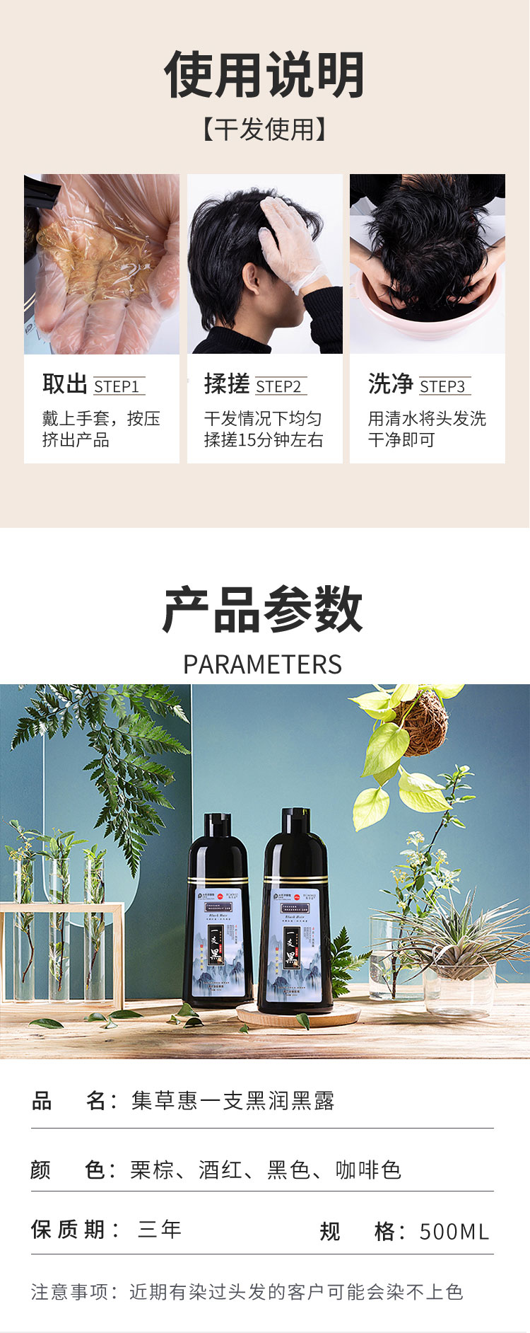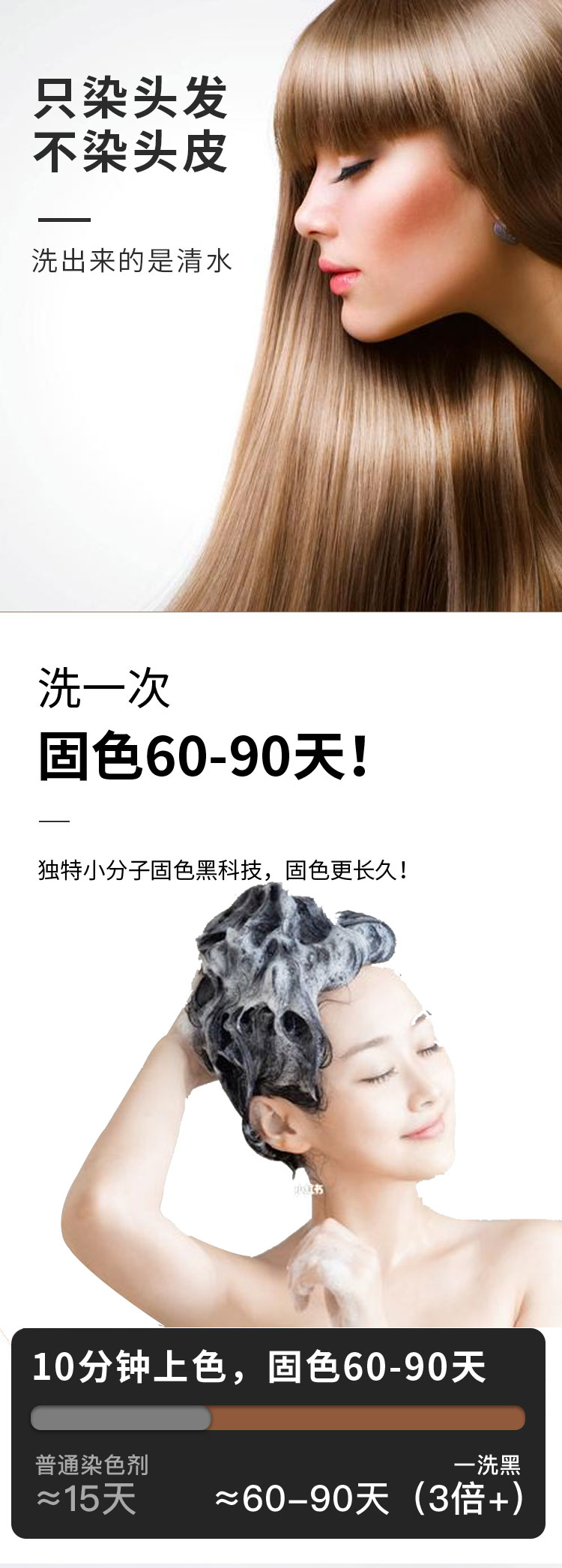 【第3瓶1元】广州白云山一洗黑染发无需调剂一洗即染染发像洗头一样简单萃取植物精华多色可选智能染发