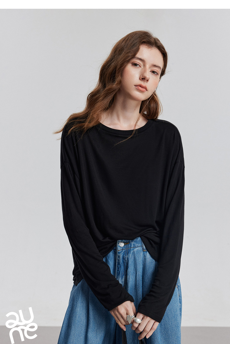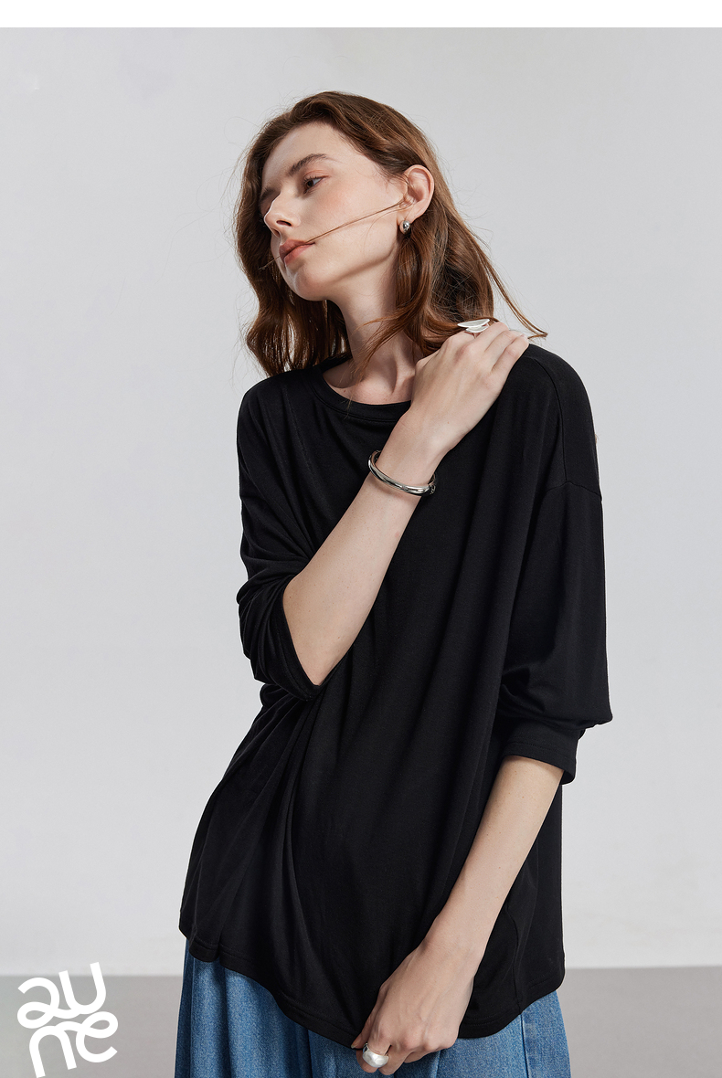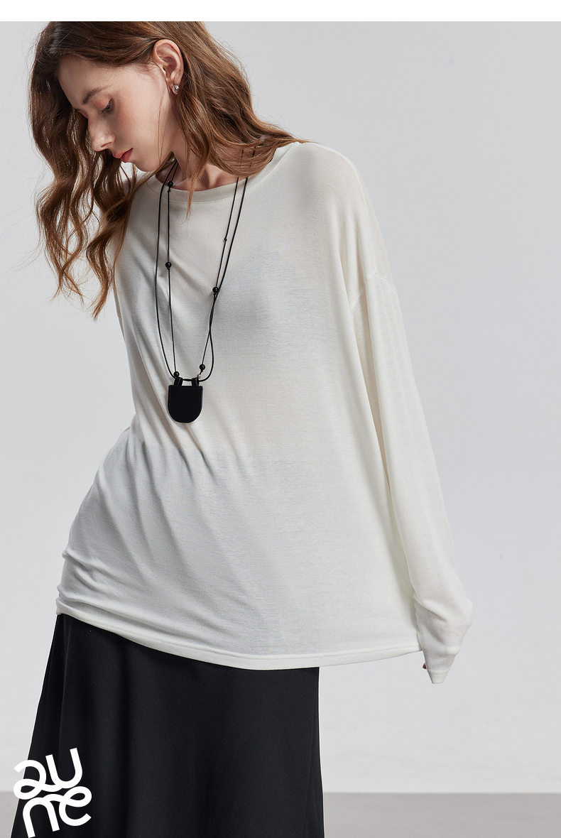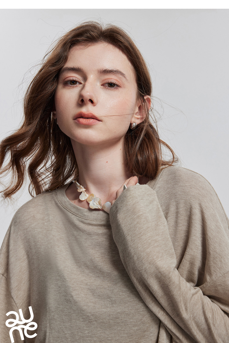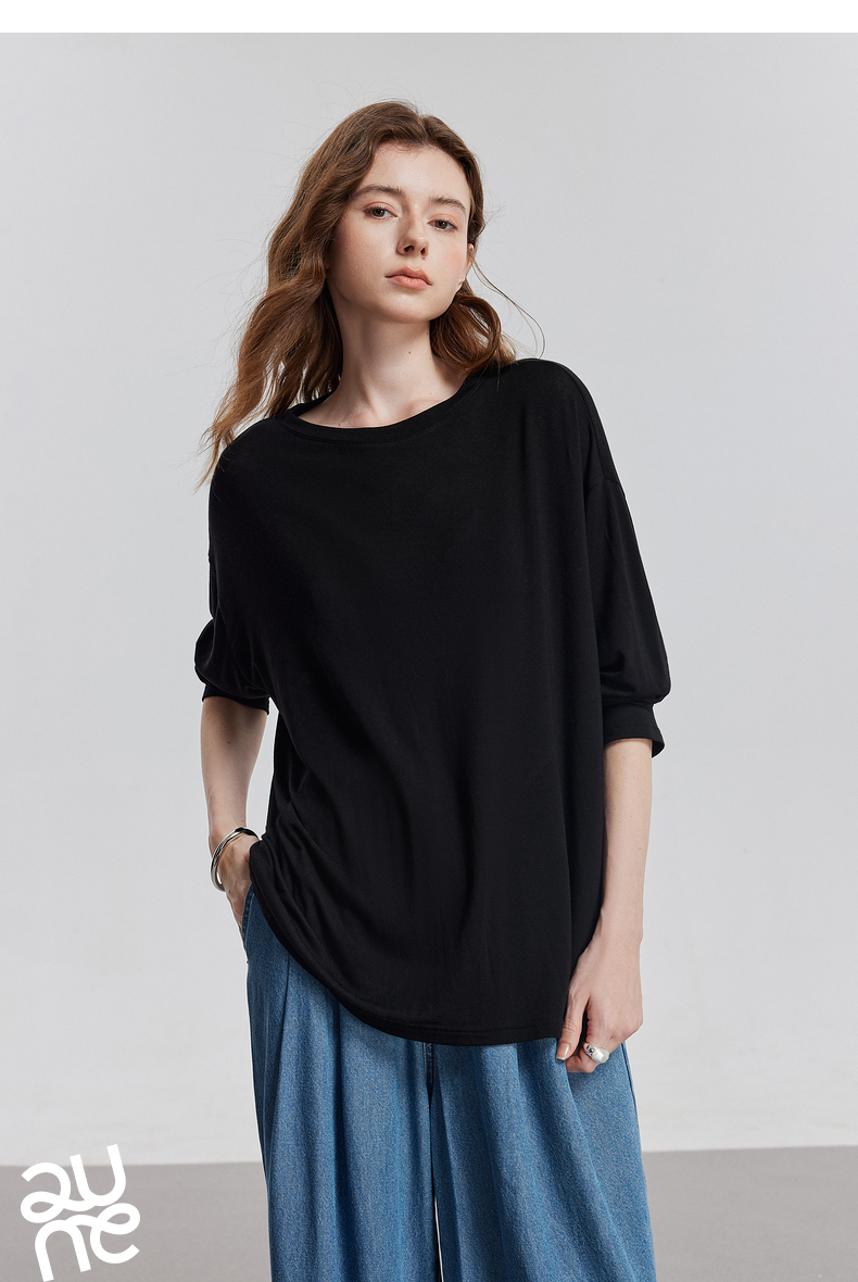 初语天丝羊毛面膜T恤女2025年基础百搭纯色套头肤感上衣