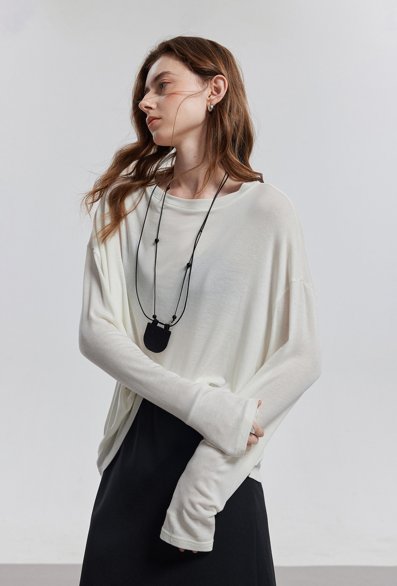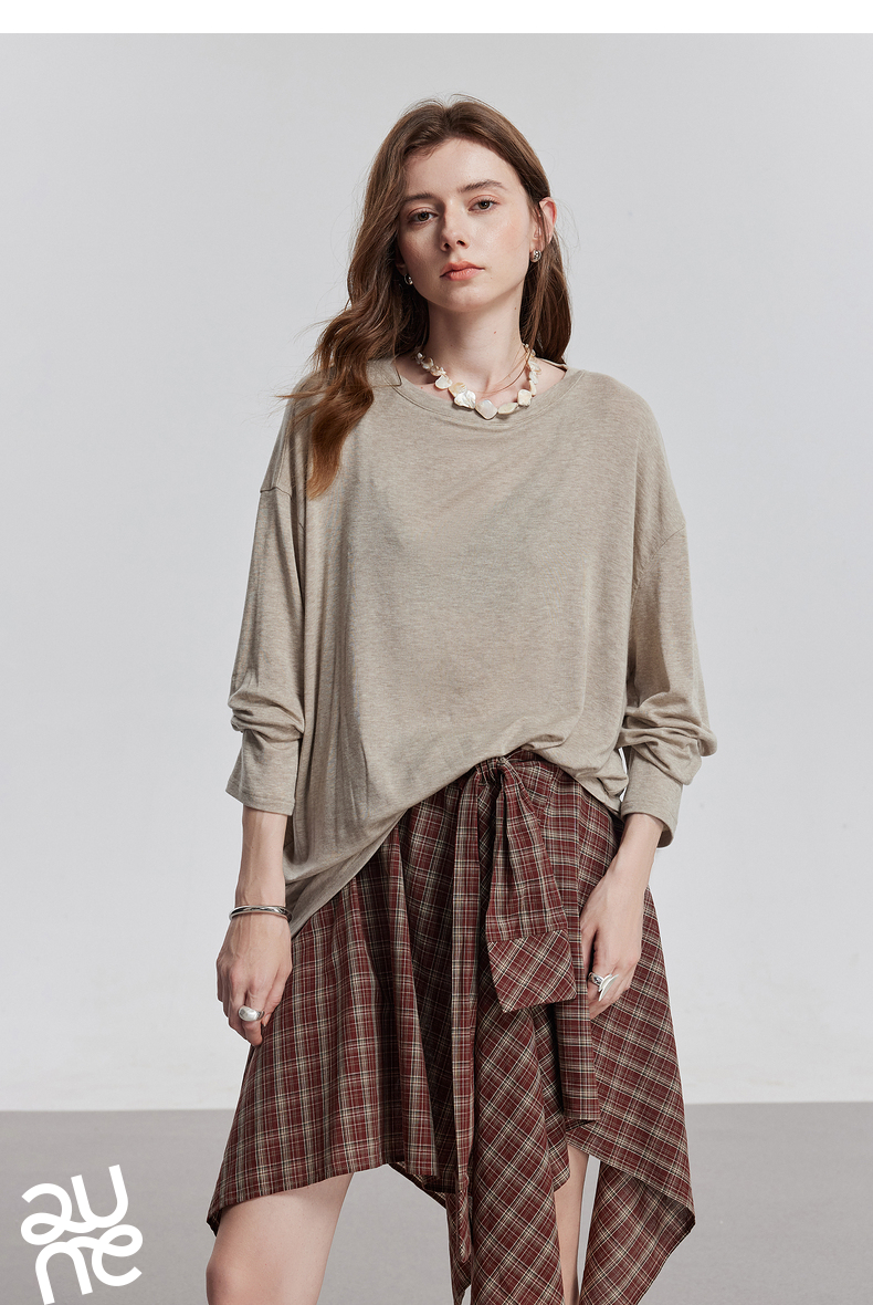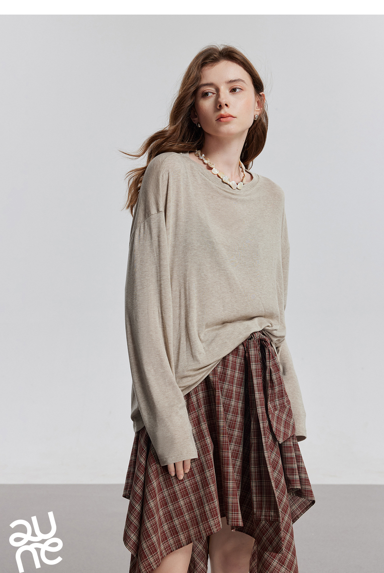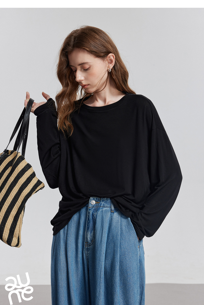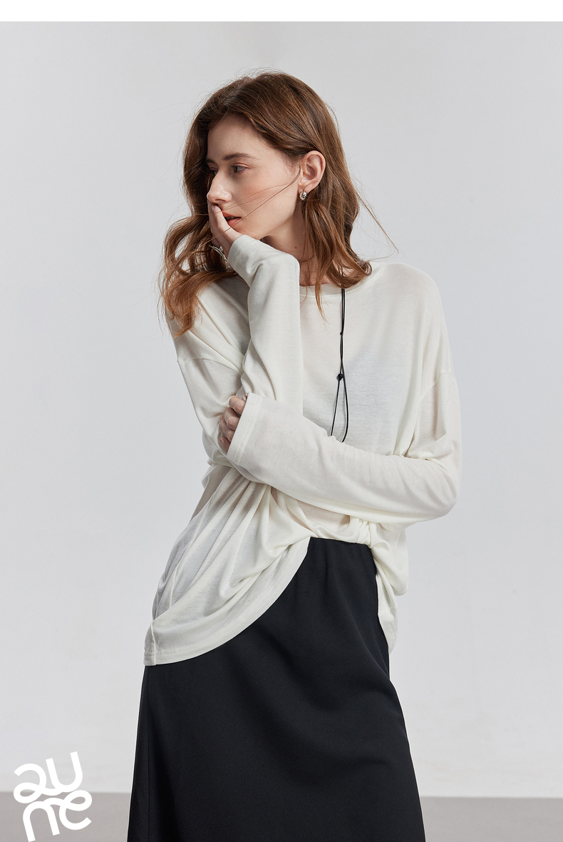 初语天丝羊毛面膜T恤女2025年基础百搭纯色套头肤感上衣