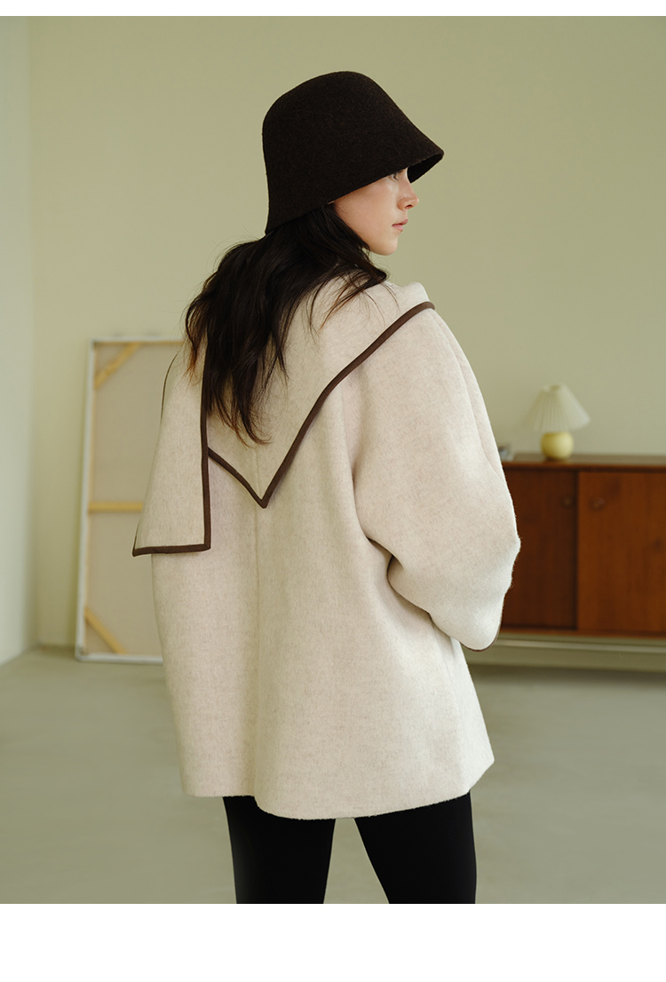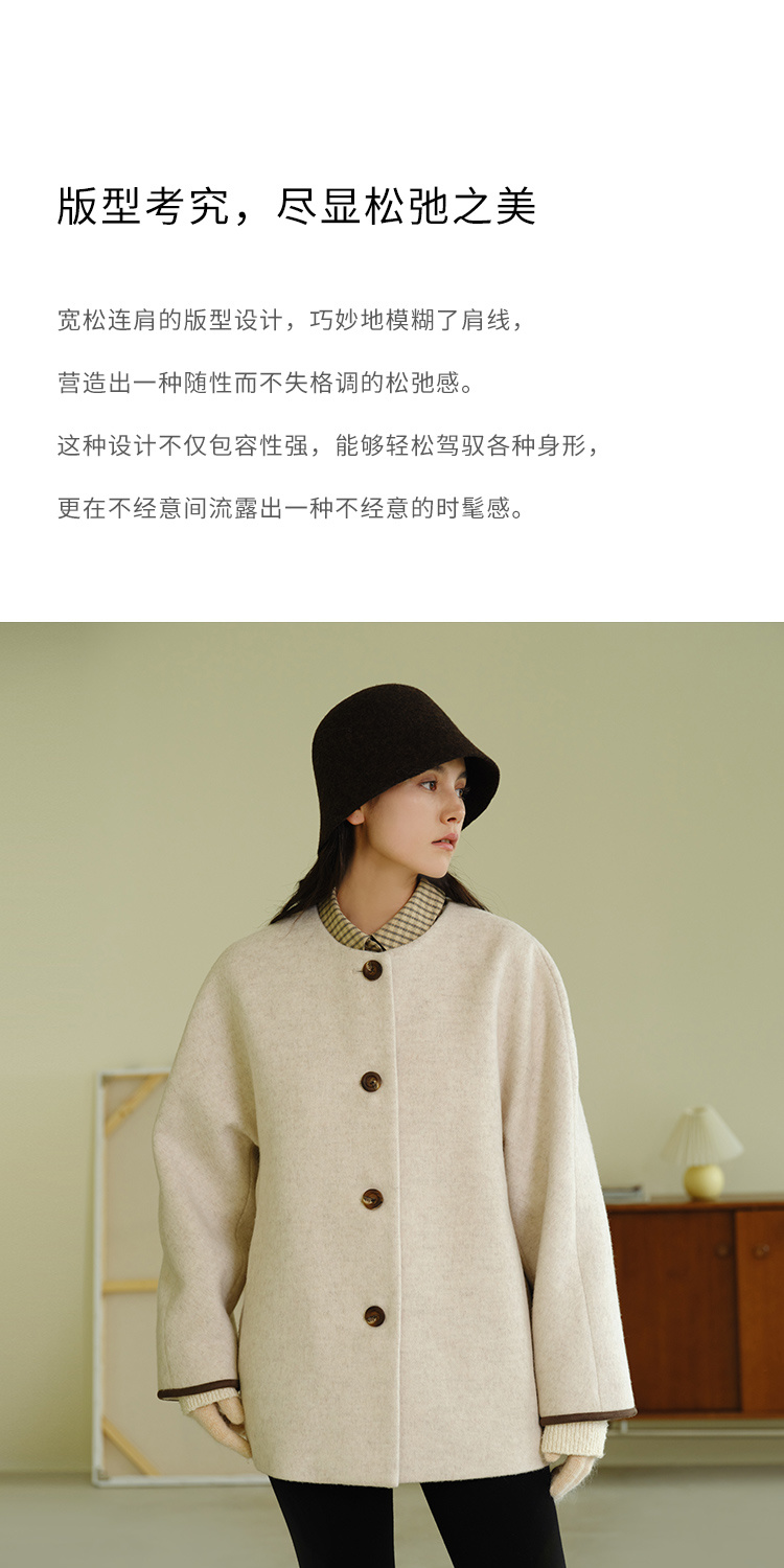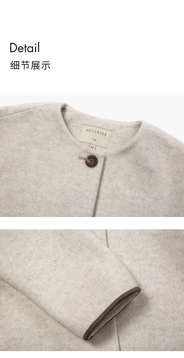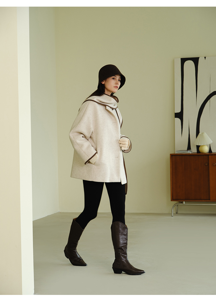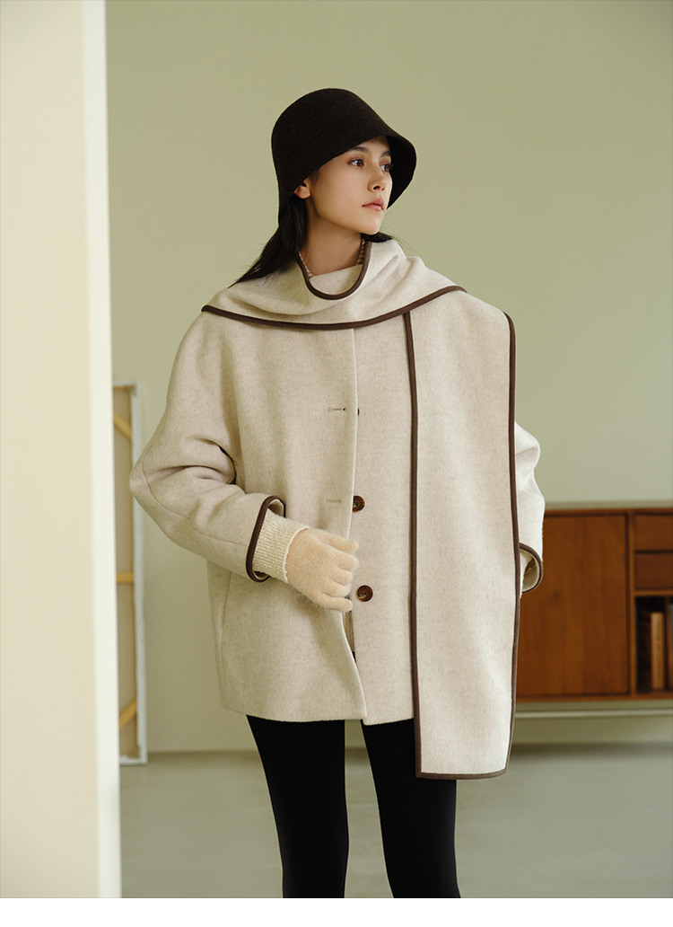 HeyDress围脖领毛呢大衣女秋冬法式羊毛宽松保暖气质短款呢子外套