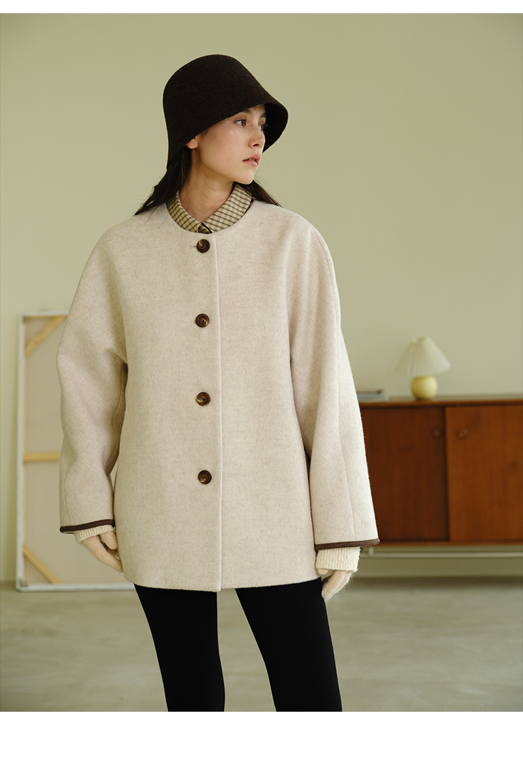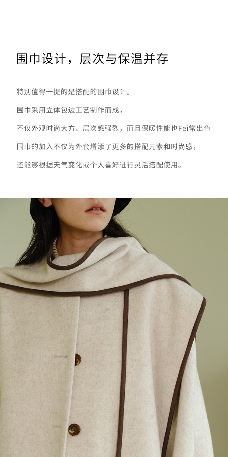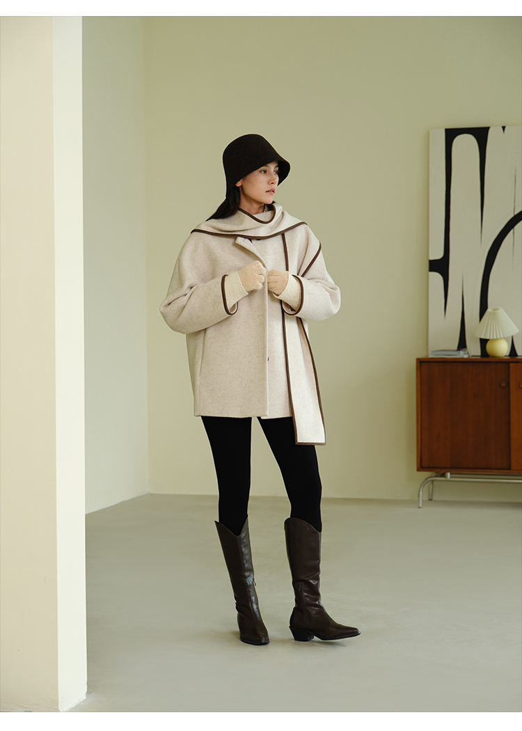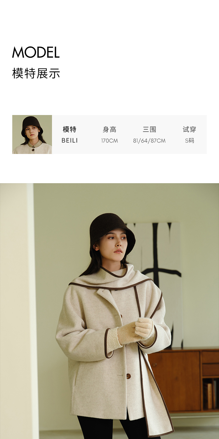 HeyDress围脖领毛呢大衣女秋冬法式羊毛宽松保暖气质短款呢子外套