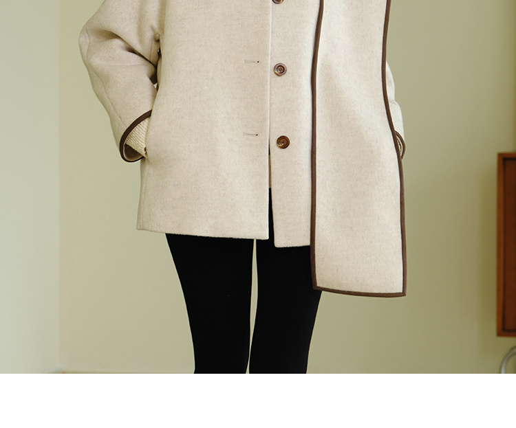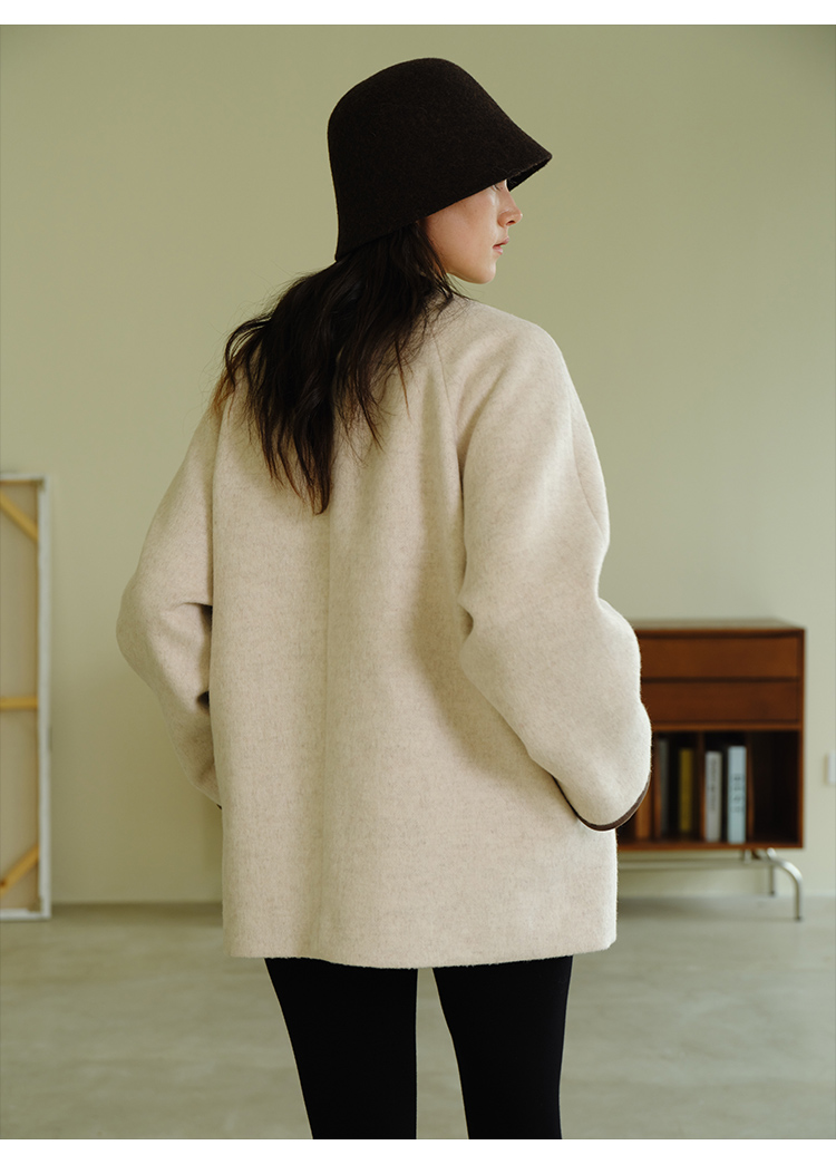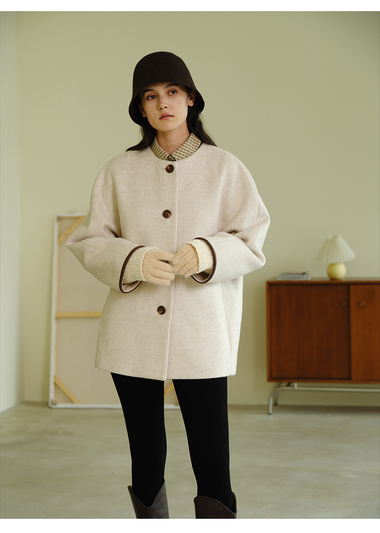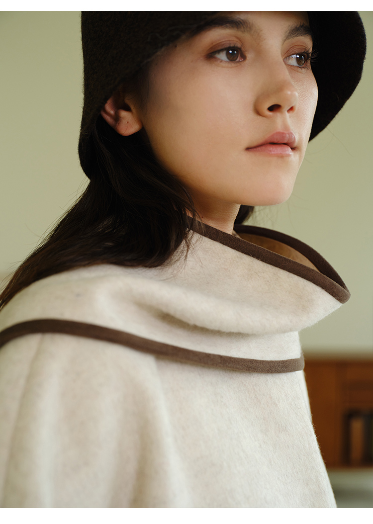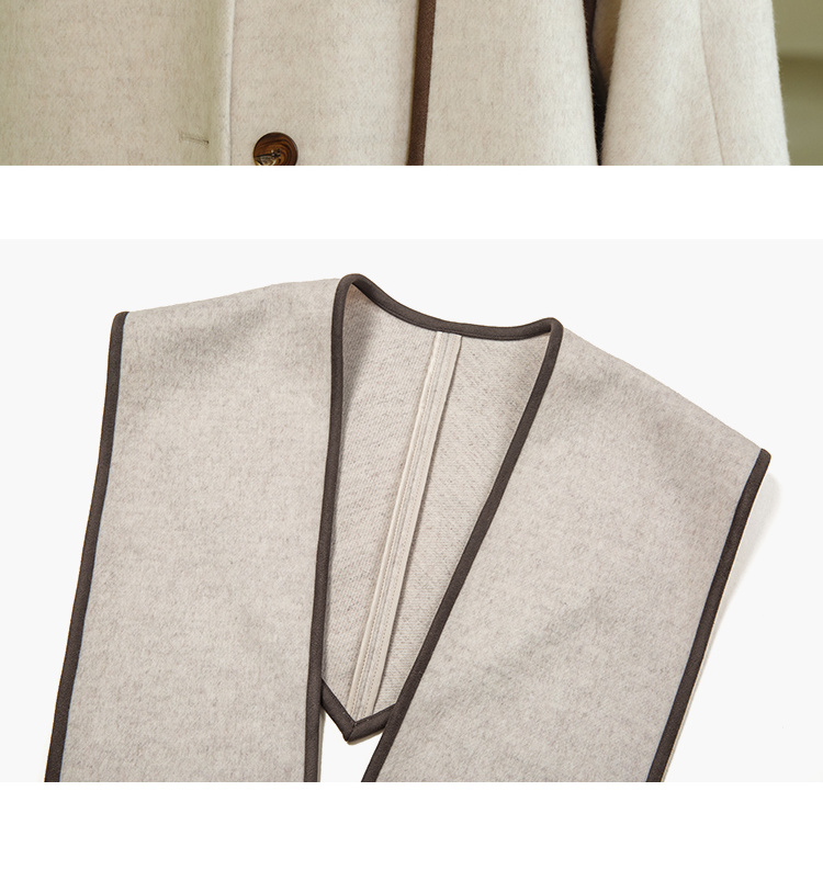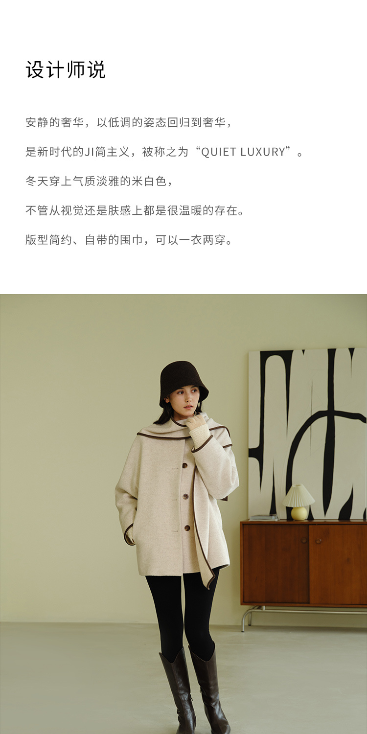 HeyDress围脖领毛呢大衣女秋冬法式羊毛宽松保暖气质短款呢子外套