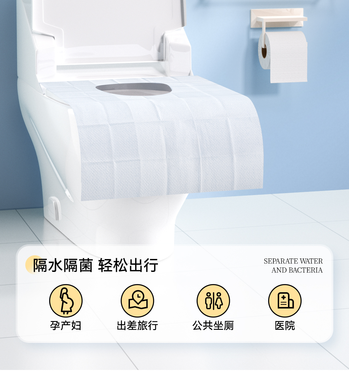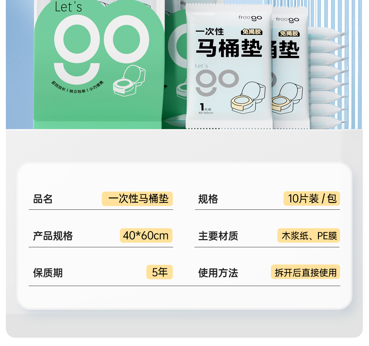 Freego「云感亲肤」一次性免揭胶防水全覆盖马桶垫 10片/包(1/2/5包)