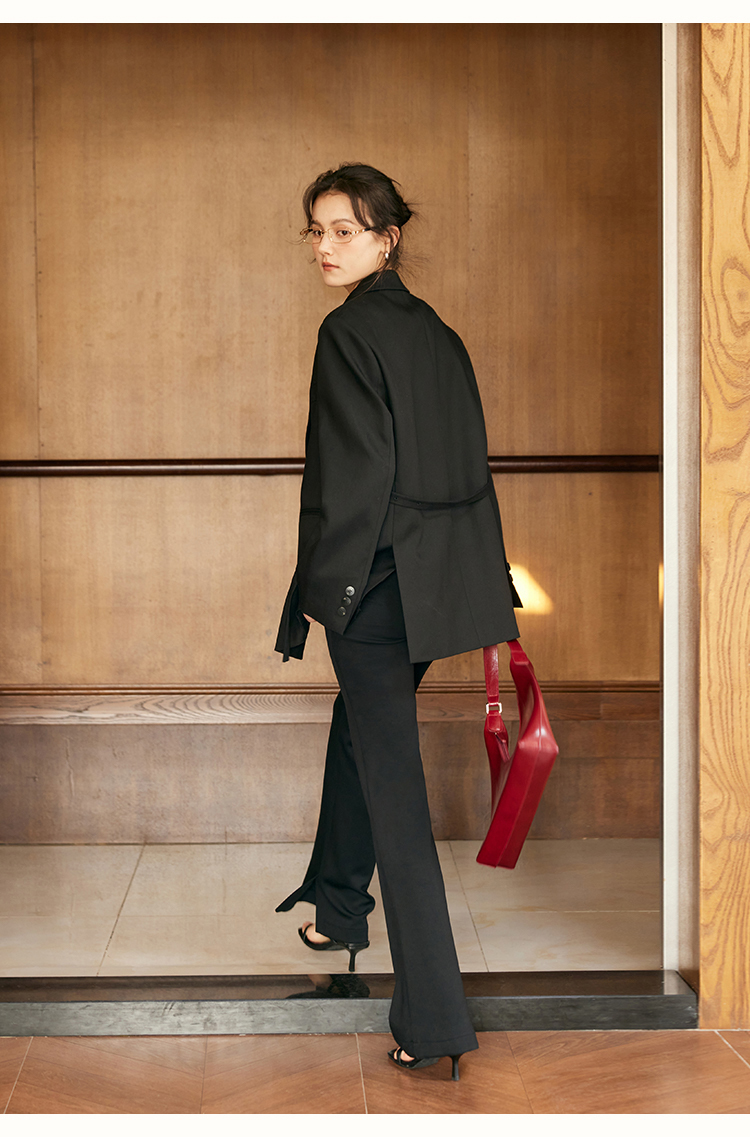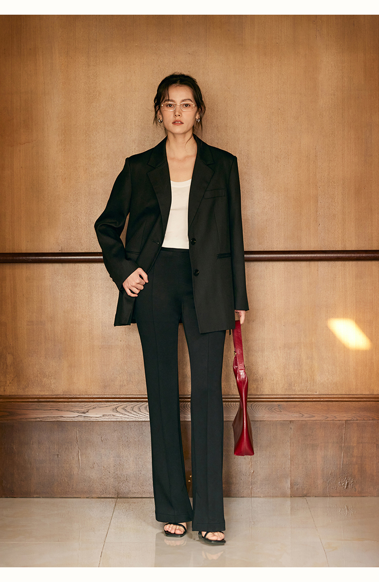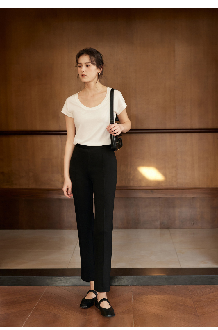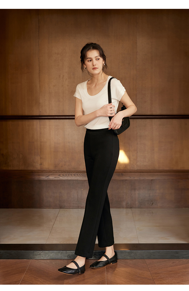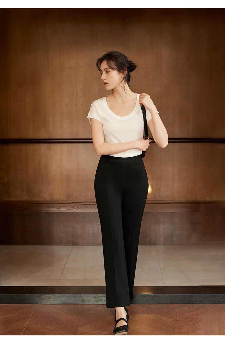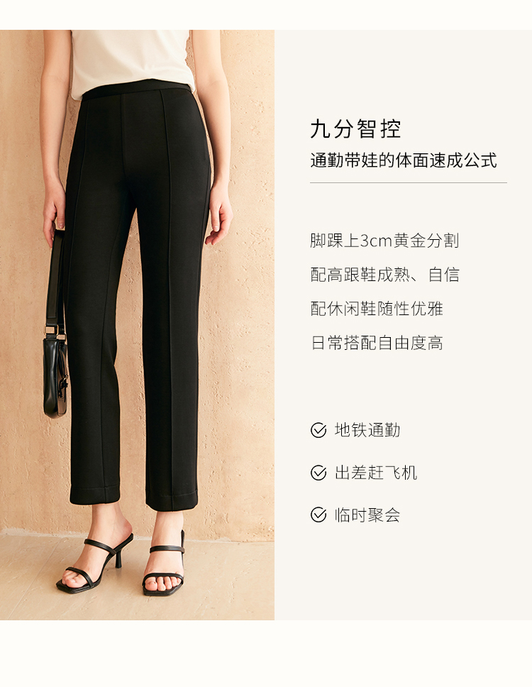 HeyDress24h柔塑小黑裤女春季高腰修身显瘦弹力休闲裤微喇裤子