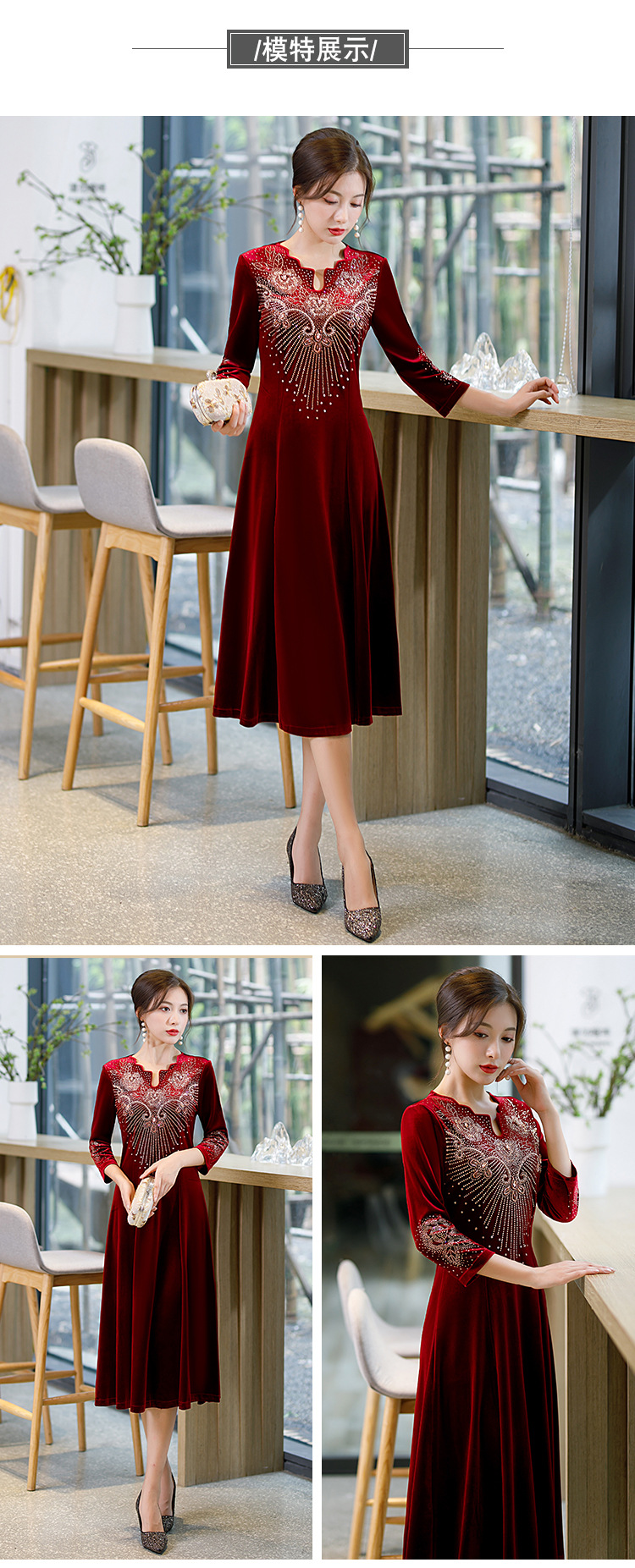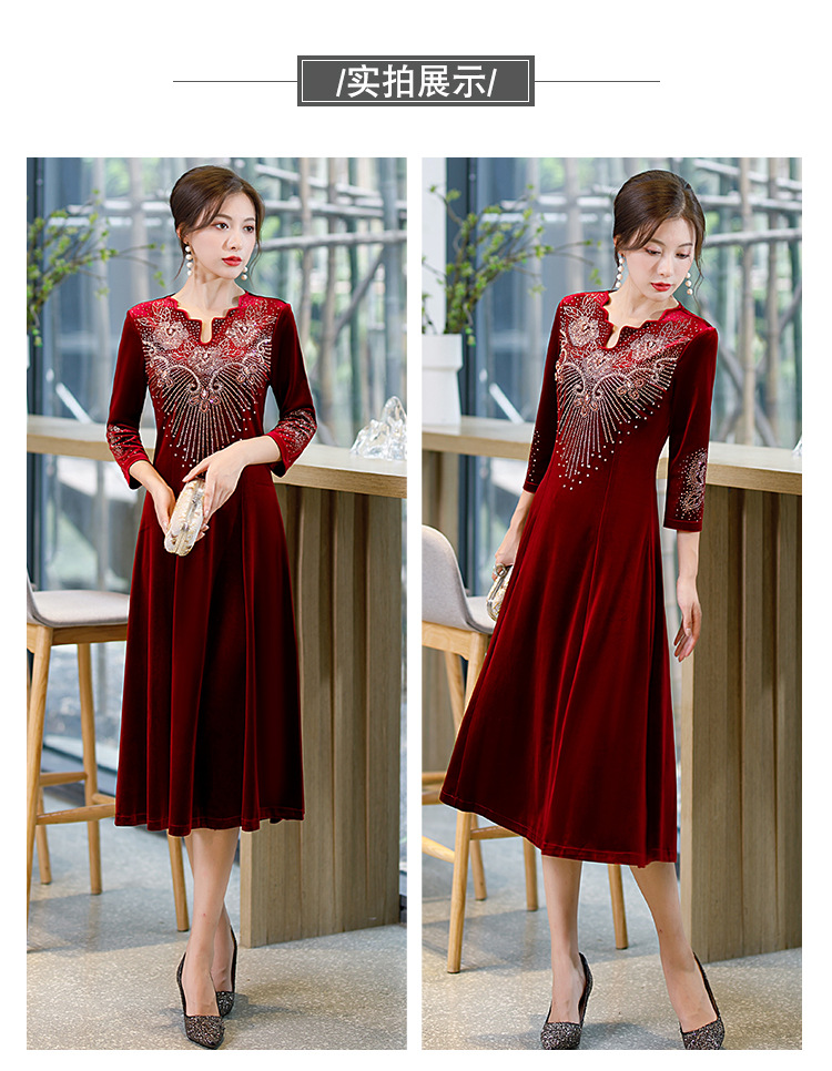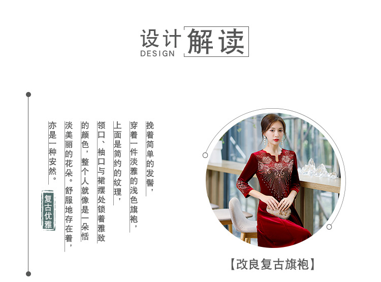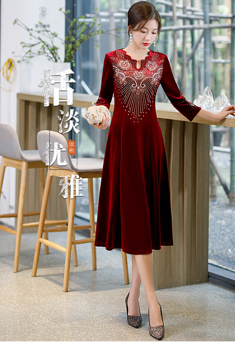 上海旗袍厂BJ-9013秋冬新款韩国绒长款大摆旗袍 复古改良妈妈装旗袍连衣裙