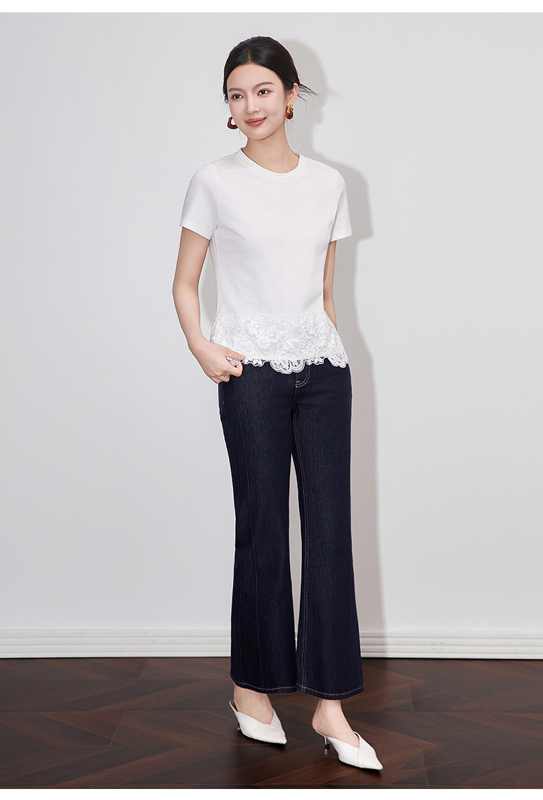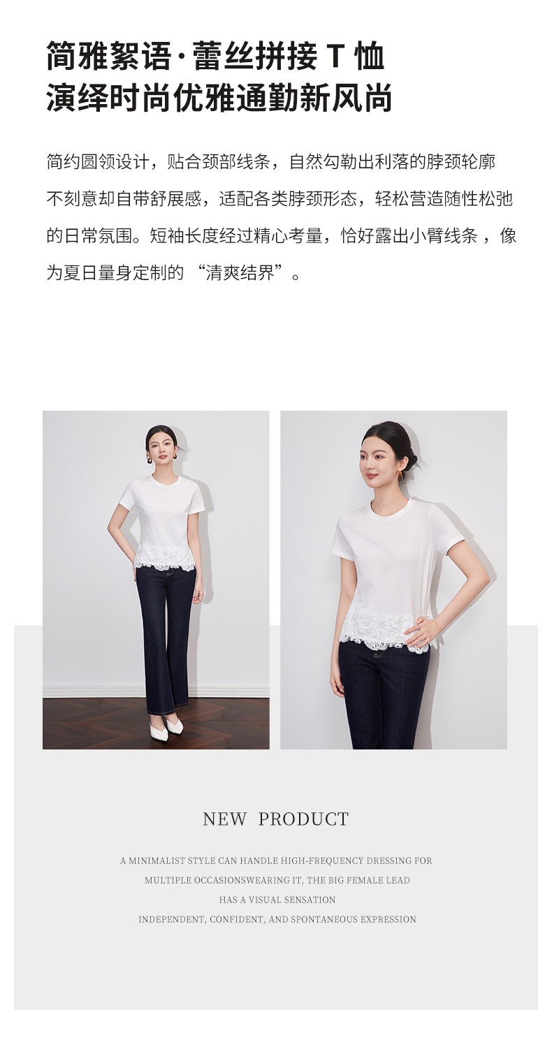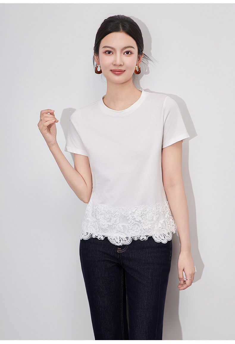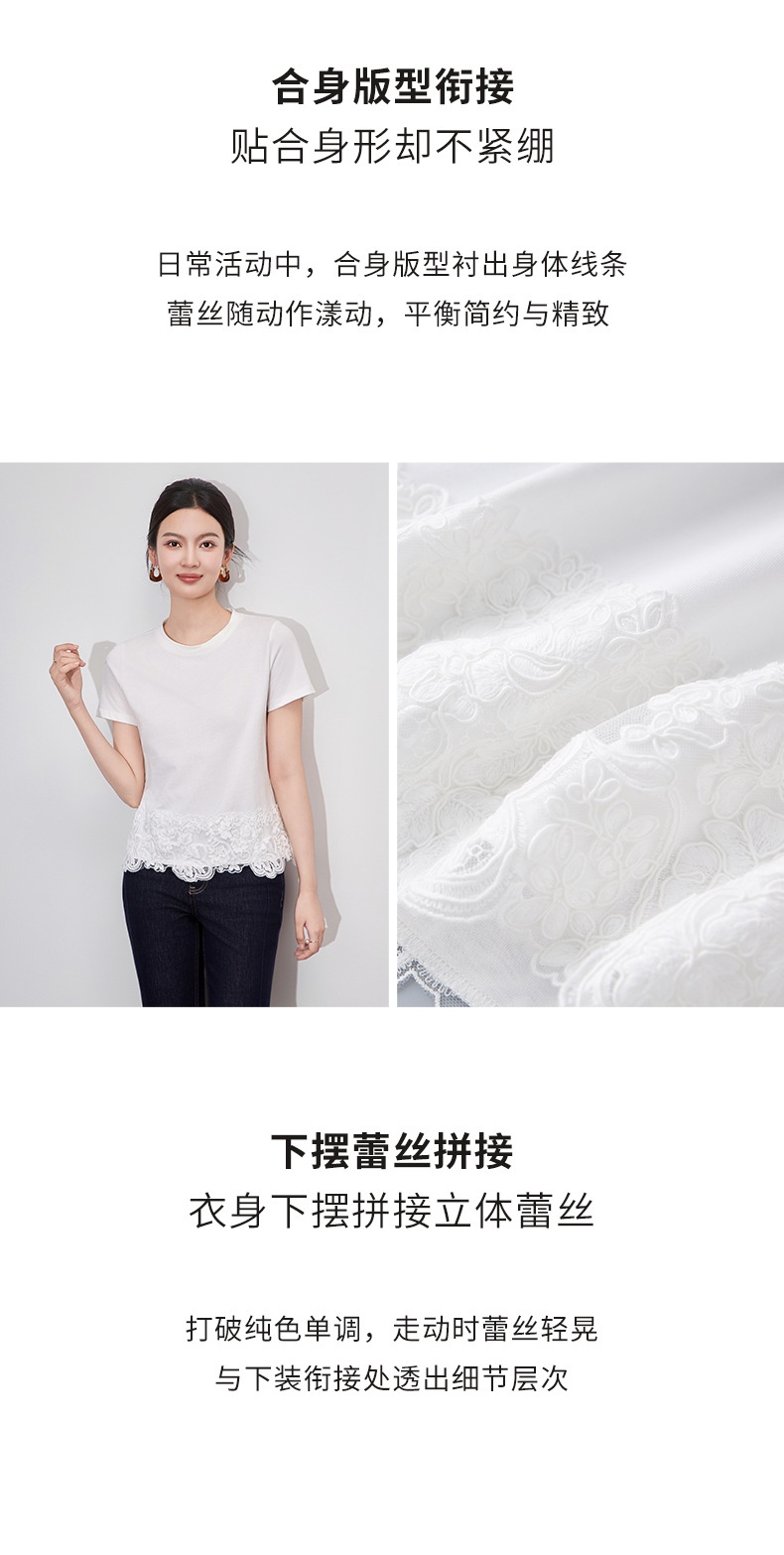 「高货wl」全新升级【铂金会员146/天猫199/差价53】(40651)洛诗琳不规则蕾丝拼接T恤2025夏季新款纯棉正肩短袖上衣女