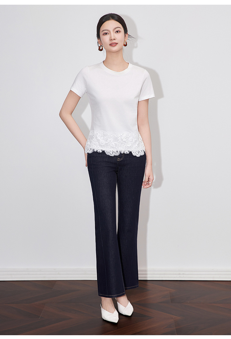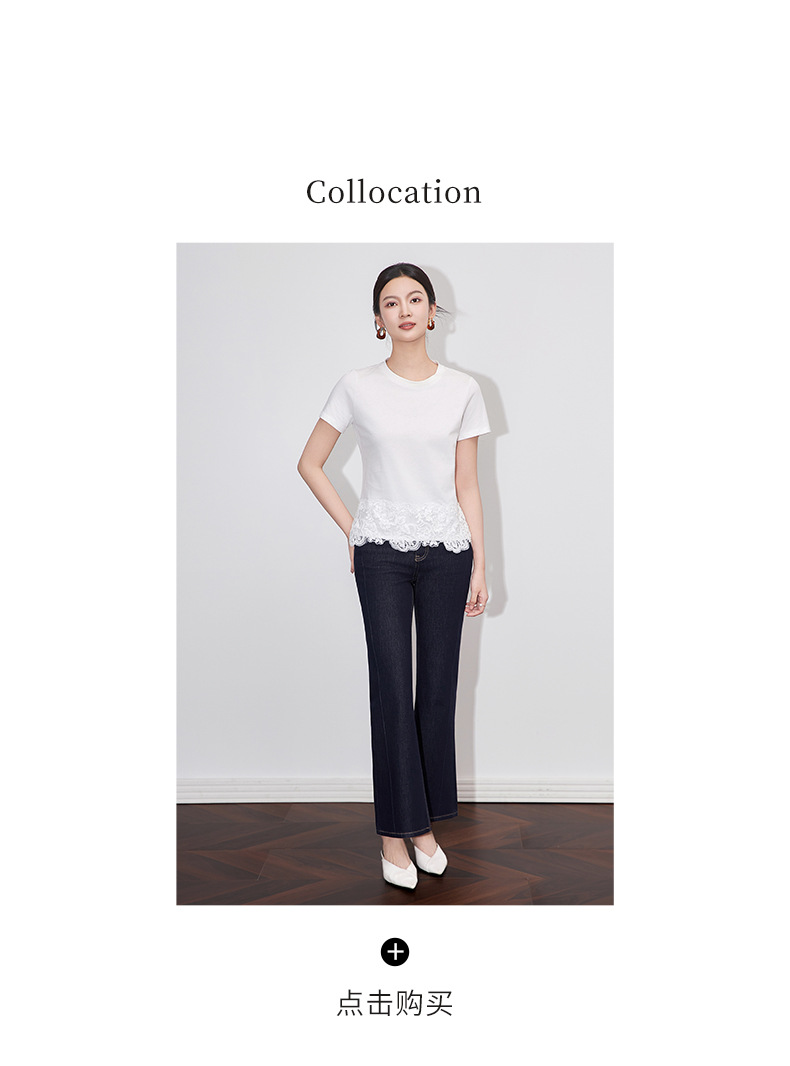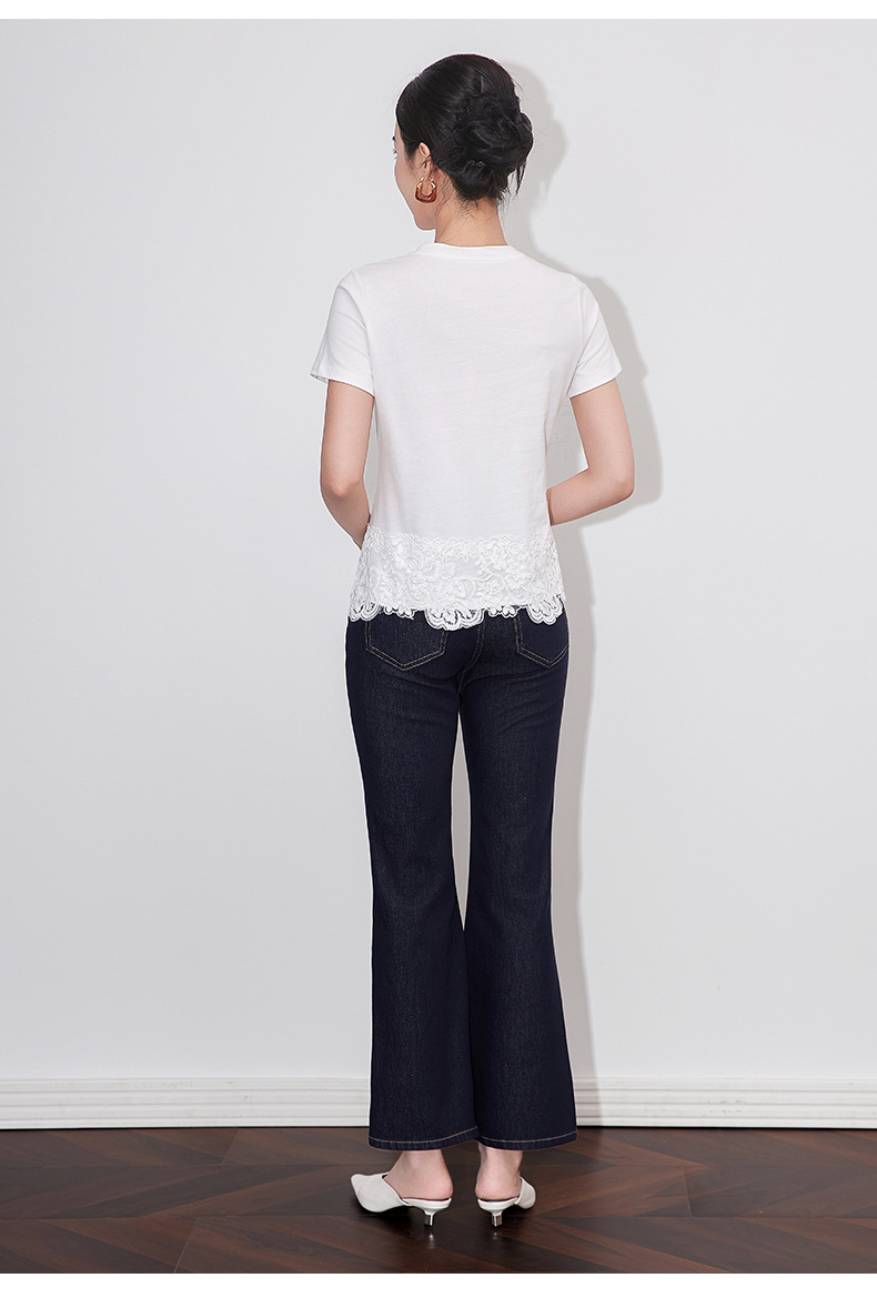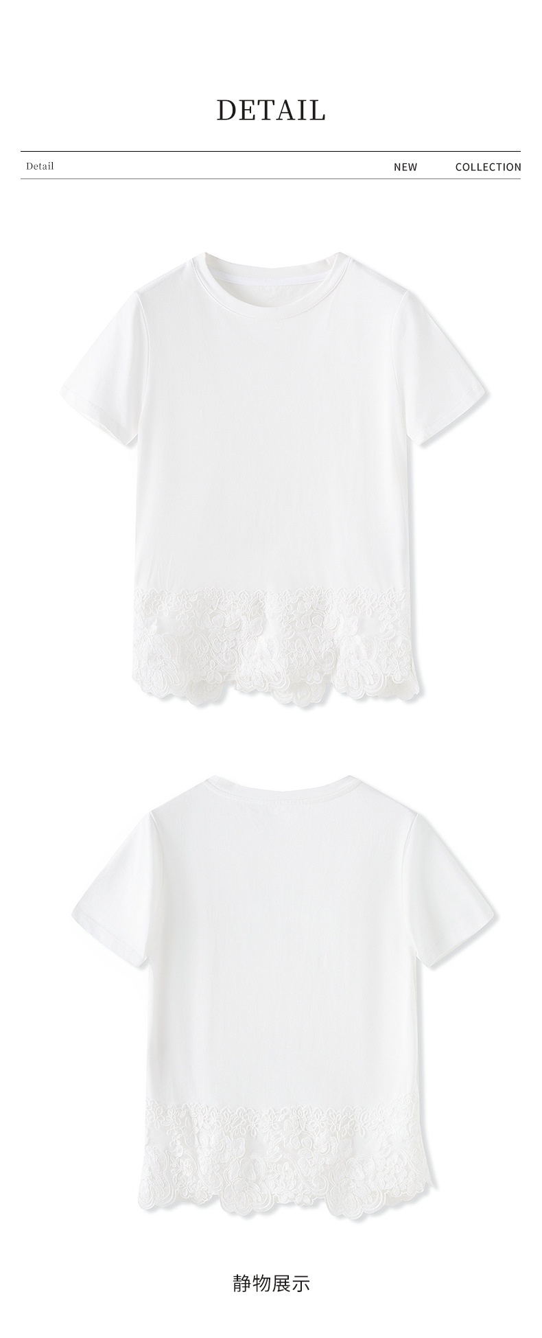 「高货wl」全新升级【铂金会员146/天猫199/差价53】(40651)洛诗琳不规则蕾丝拼接T恤2025夏季新款纯棉正肩短袖上衣女