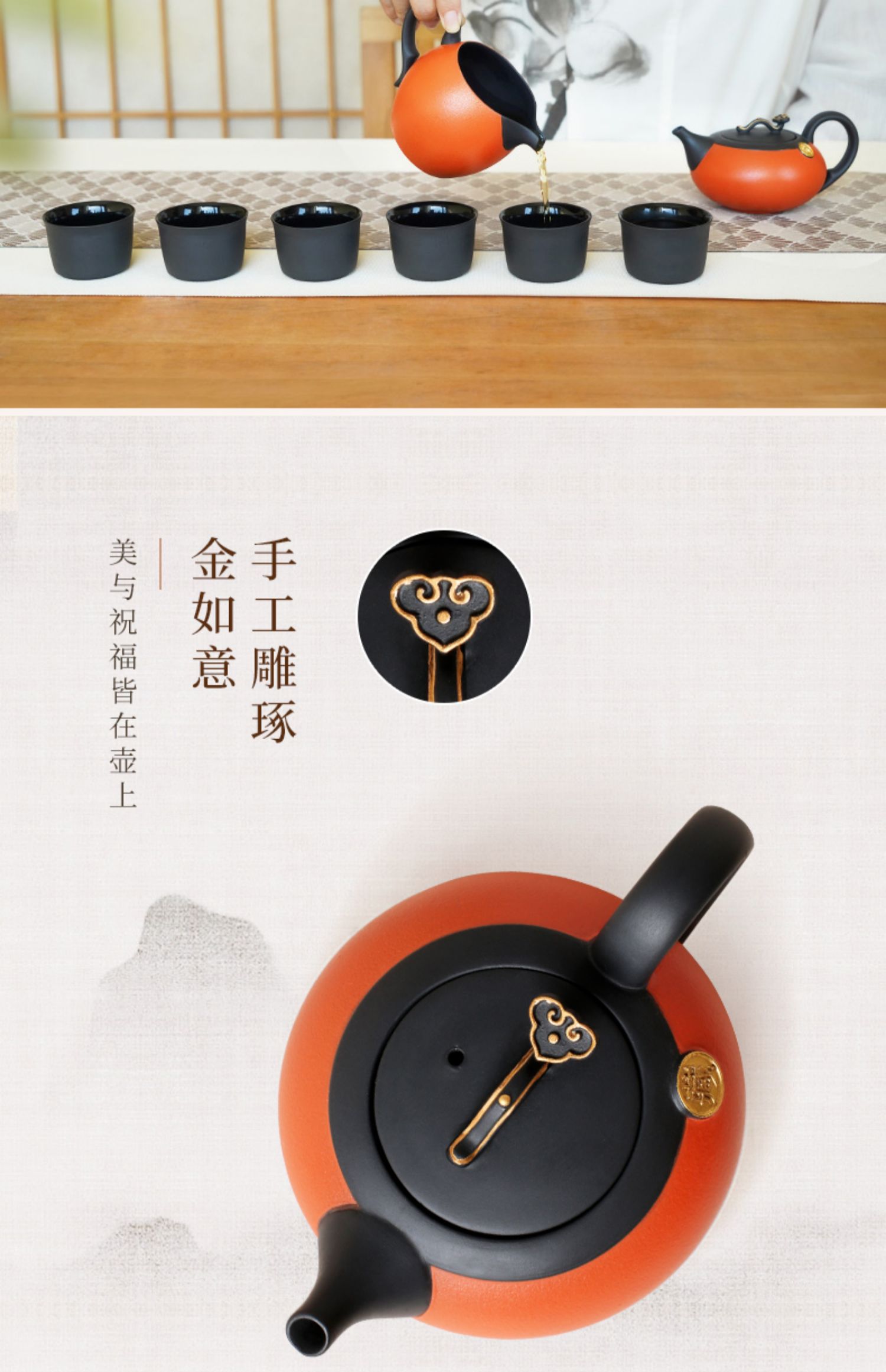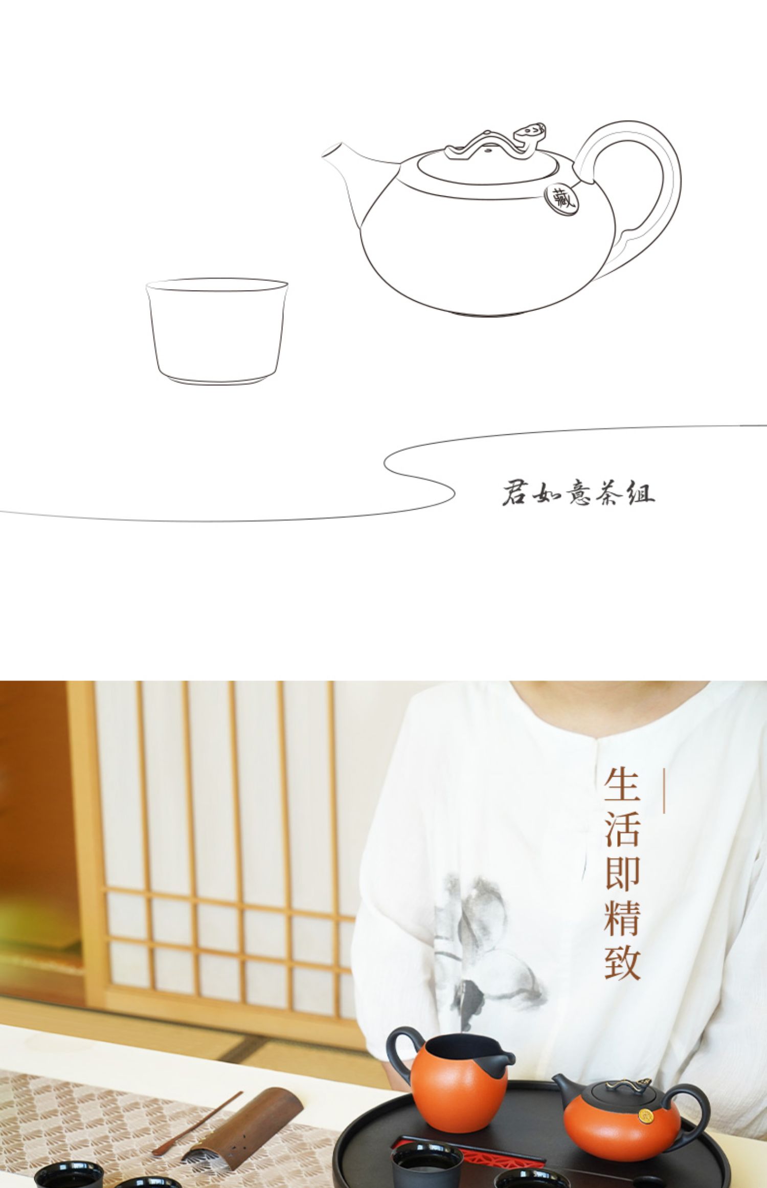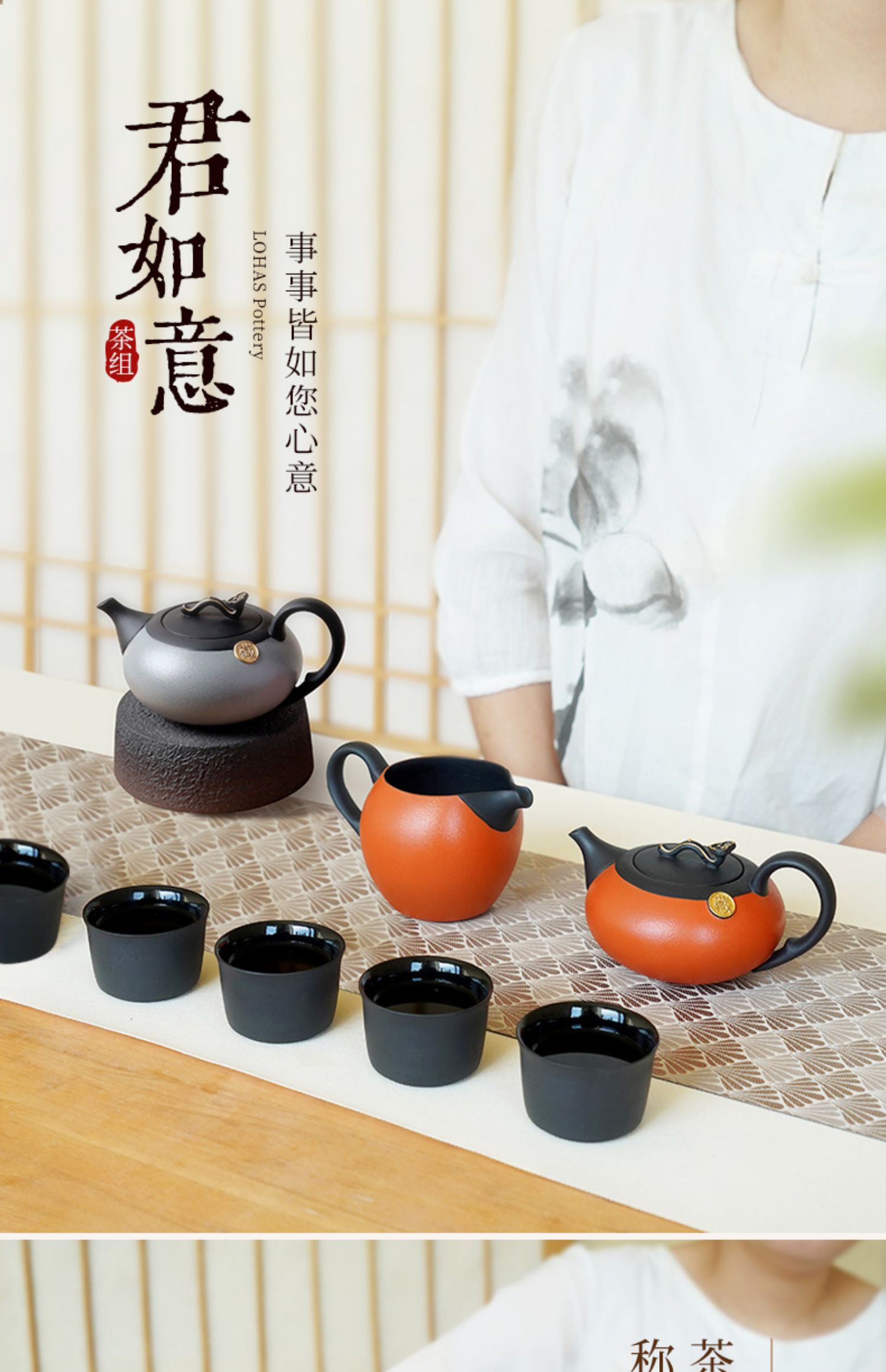 【彼达思】陆宝陶瓷 君如意功夫茶具套装 家用客厅现代简约1壶1海6杯茶具礼盒