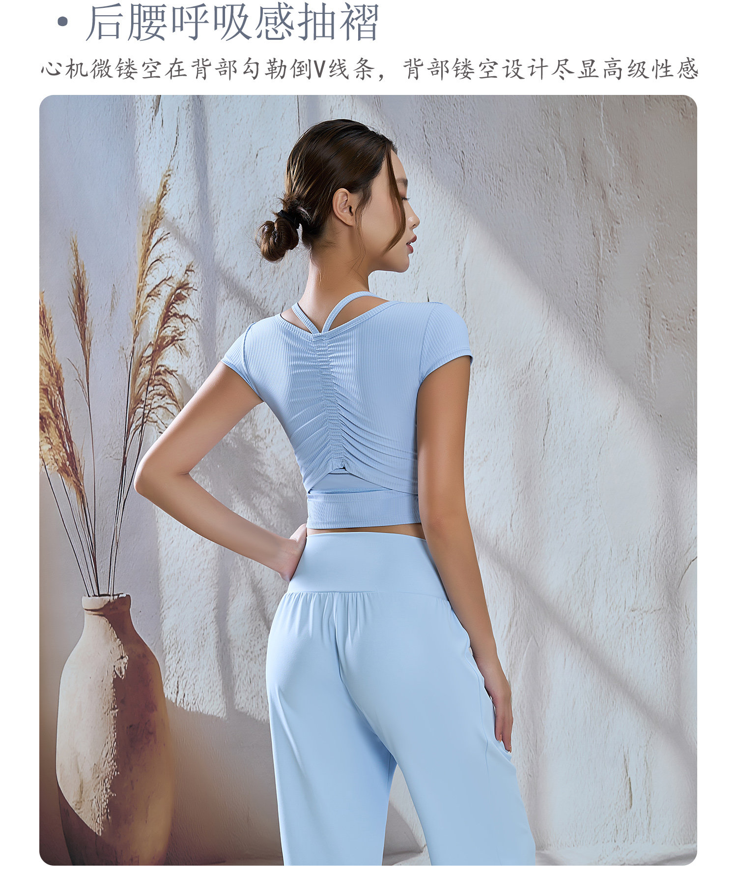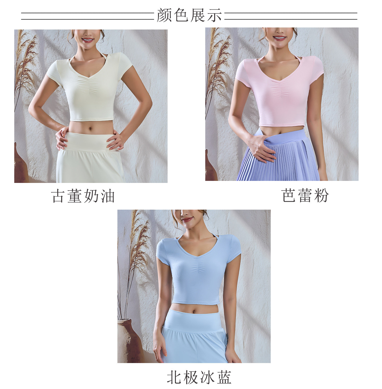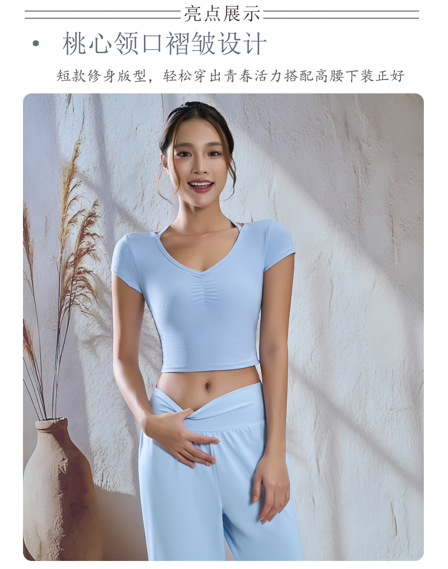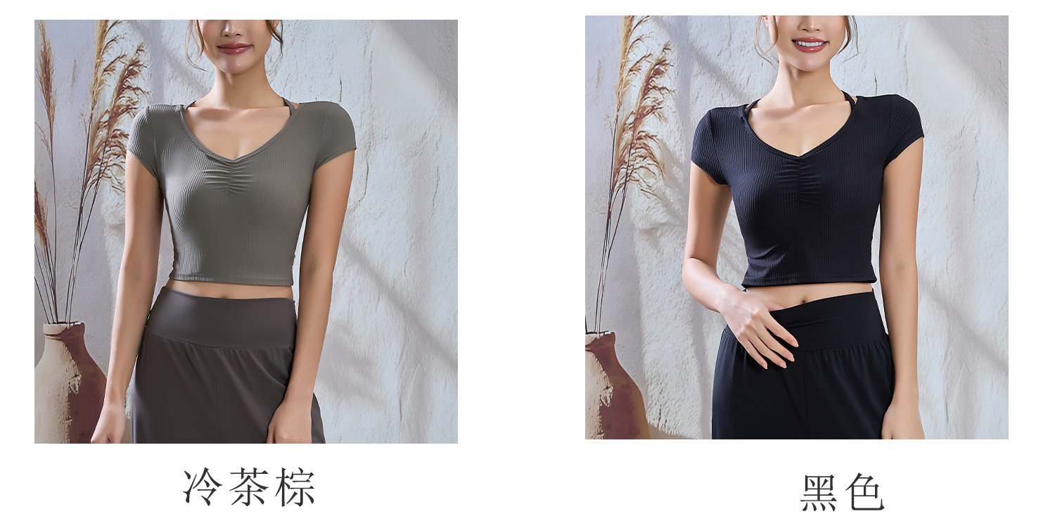 【限时秒】YOGACODE【火树银花系列】瑜伽服短袖女带胸垫免穿内衣运动t恤透气短款上衣DWY116034